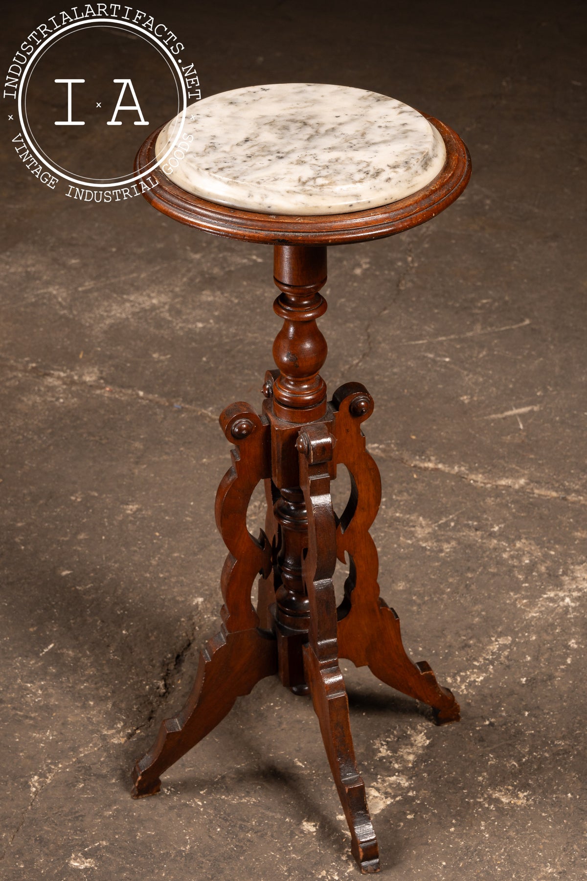 19th Century Eastlake Walnut Plant Stand with Marble-Top