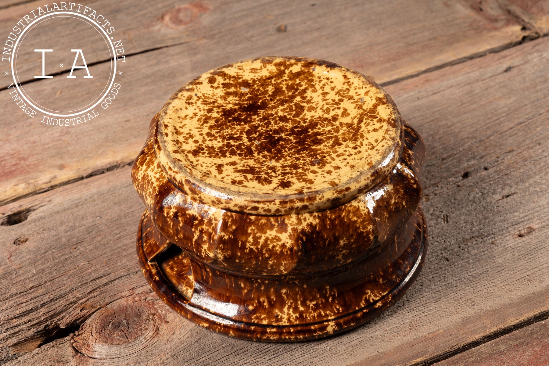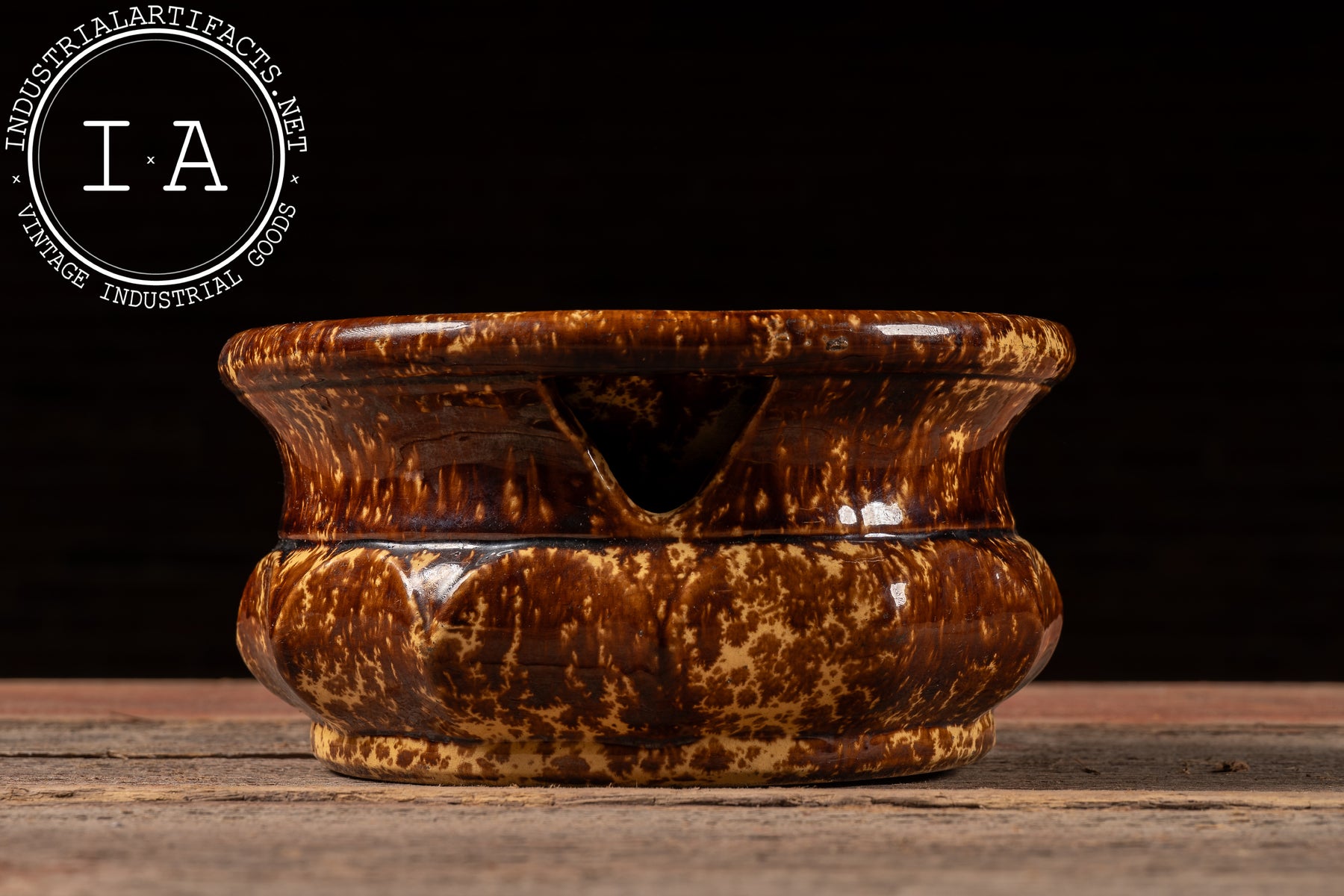Spittoons of this type were common fixtures in public and semi-public interiors-such as saloons, barber shops, hotels, and railroad offices-during the late 19th and early 20th centuries, when chewing tobacco was widespread. Rockingham ware was especially favored for these utilitarian objects due to its durability, ease of manufacture, and ability to disguise wear and staining through its dark, variegated glaze. Surviving examples remain popular as decorative objects, valued for their bold form and unmistakable historical context.