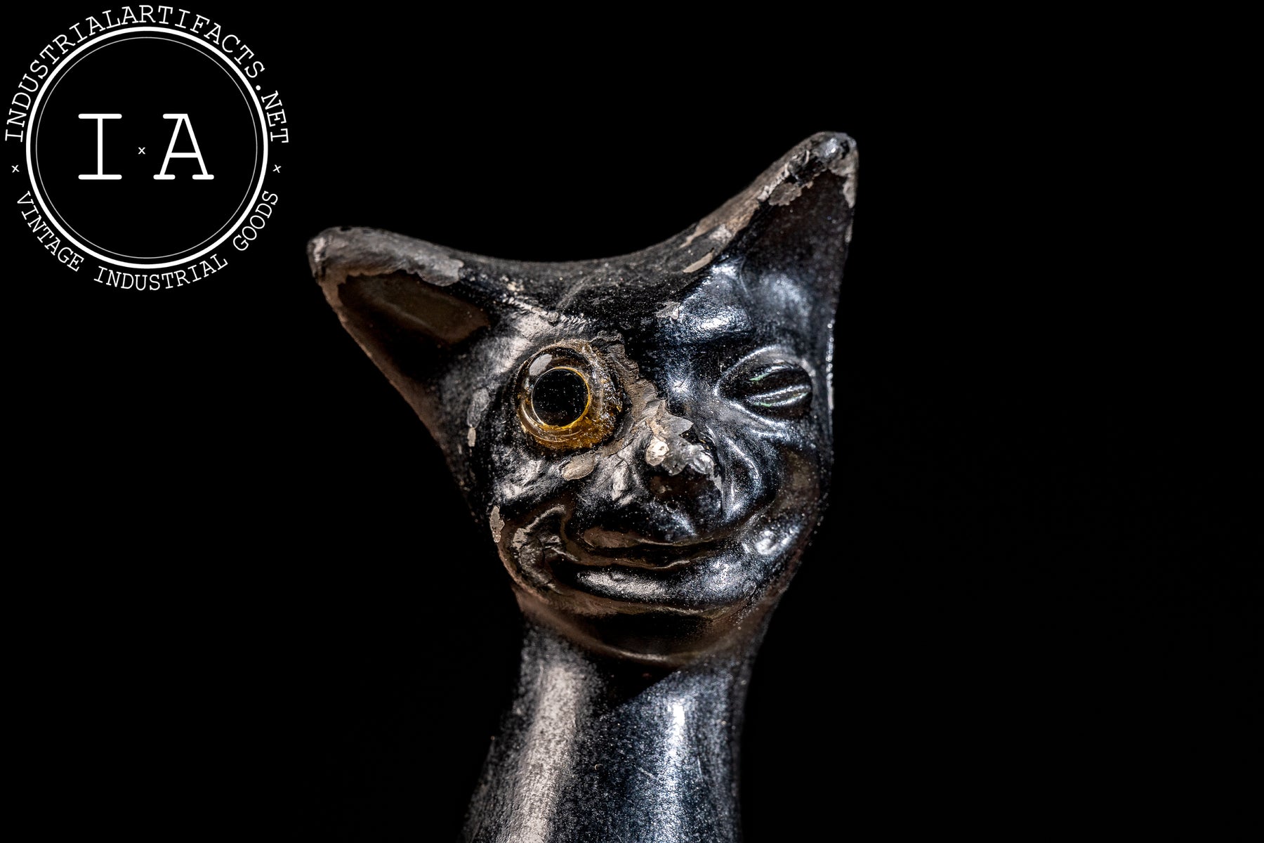 Black cat imagery held particular cultural traction in the early 20th century, straddling superstition, good-luck symbolism, and popular décor trends tied to Halloween, nightlife, and domestic leisure. Smoking stands of this type were often marketed as conversation pieces, blending utility with visual personality and tapping into a broader fascination with character-driven tabletop objects. The combination of sculptural form, mixed materials, and lighthearted presentation places this squarely within that tradition.