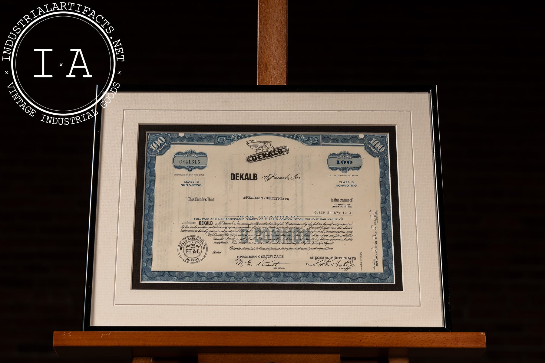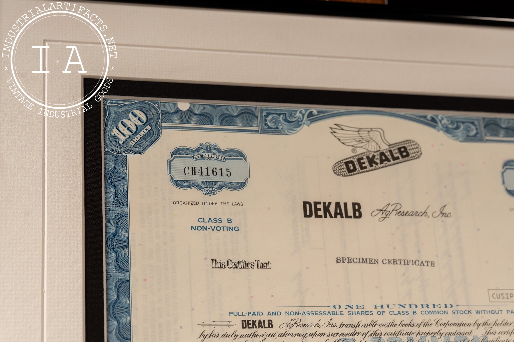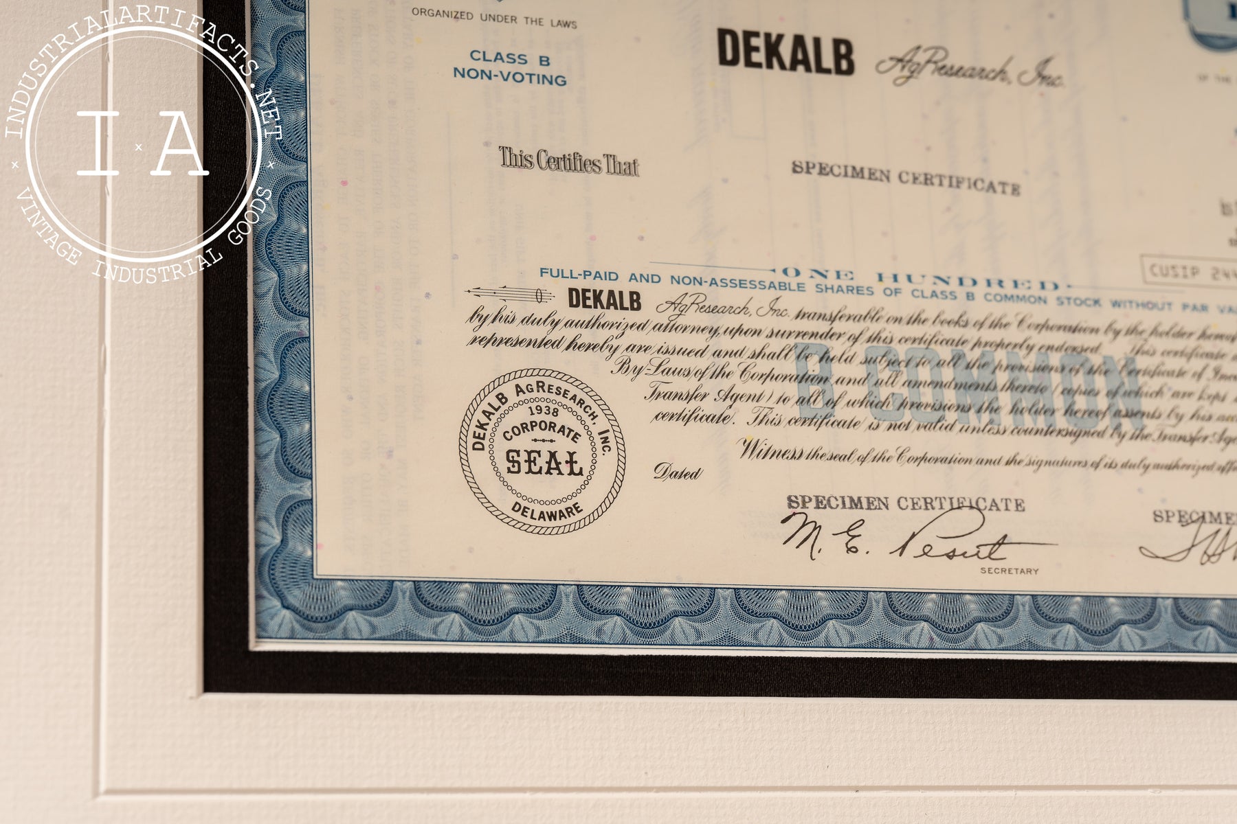 c.1930s Framed Dekalb AgResearch Inc. Specimen Stock Certificate - Class B