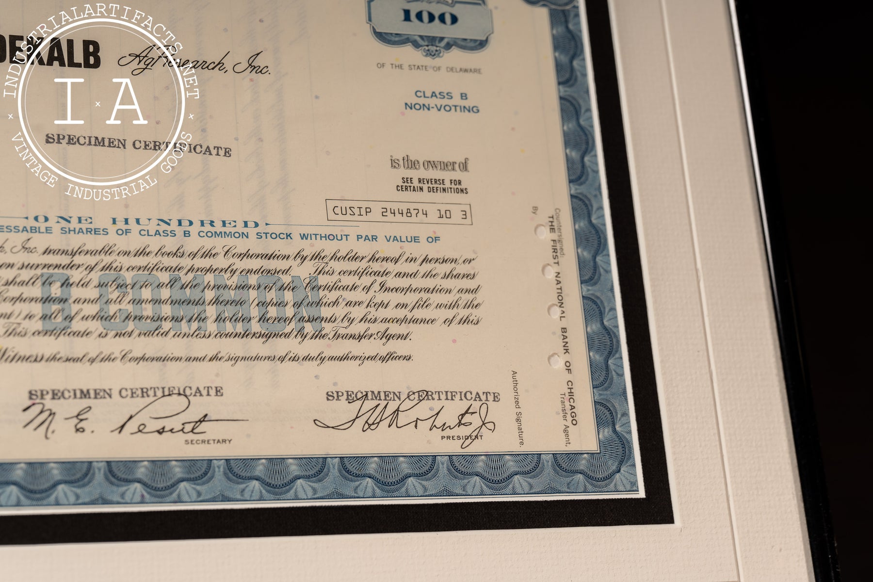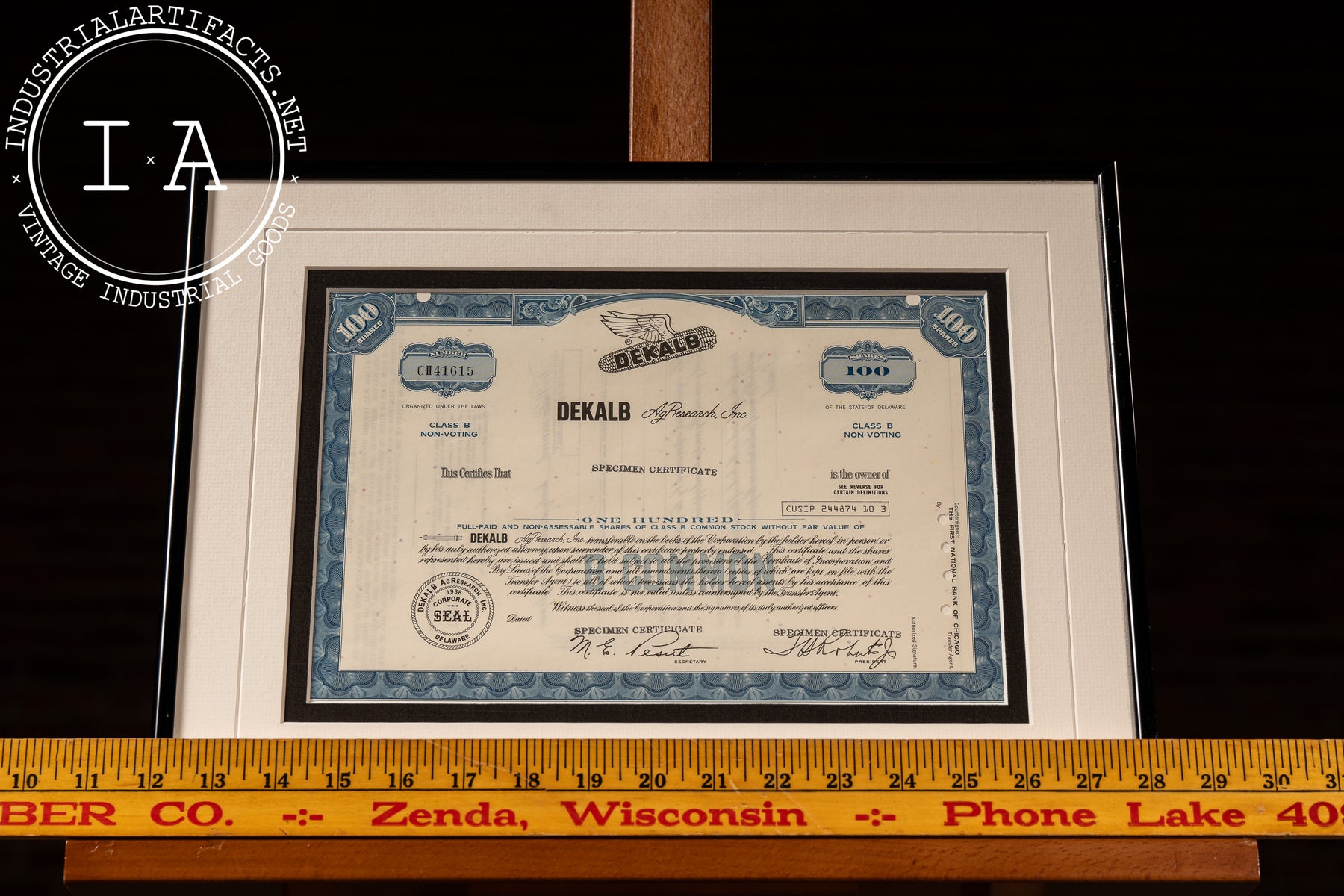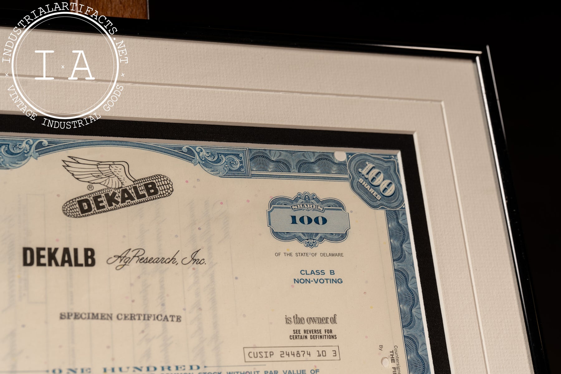 c.1930s Framed Dekalb AgResearch Inc. Specimen Stock Certificate - Class B