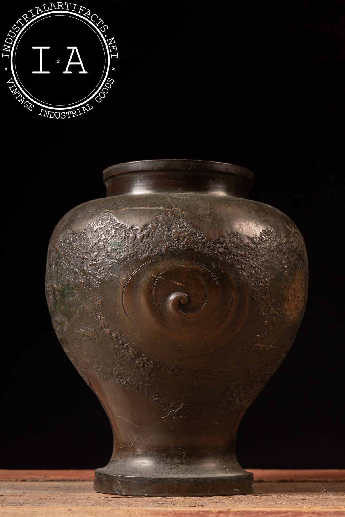 Surface shows extensive, attractive patination throughout, with areas of verdigris, oxidation, and wear consistent with age. No cracks, breaks, or repairs observed. Interior appears clean and structurally sound.