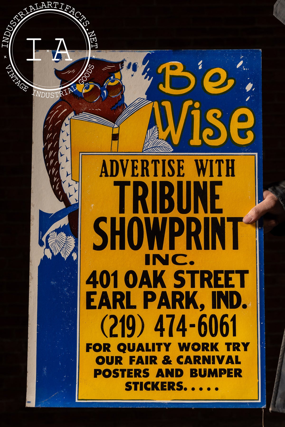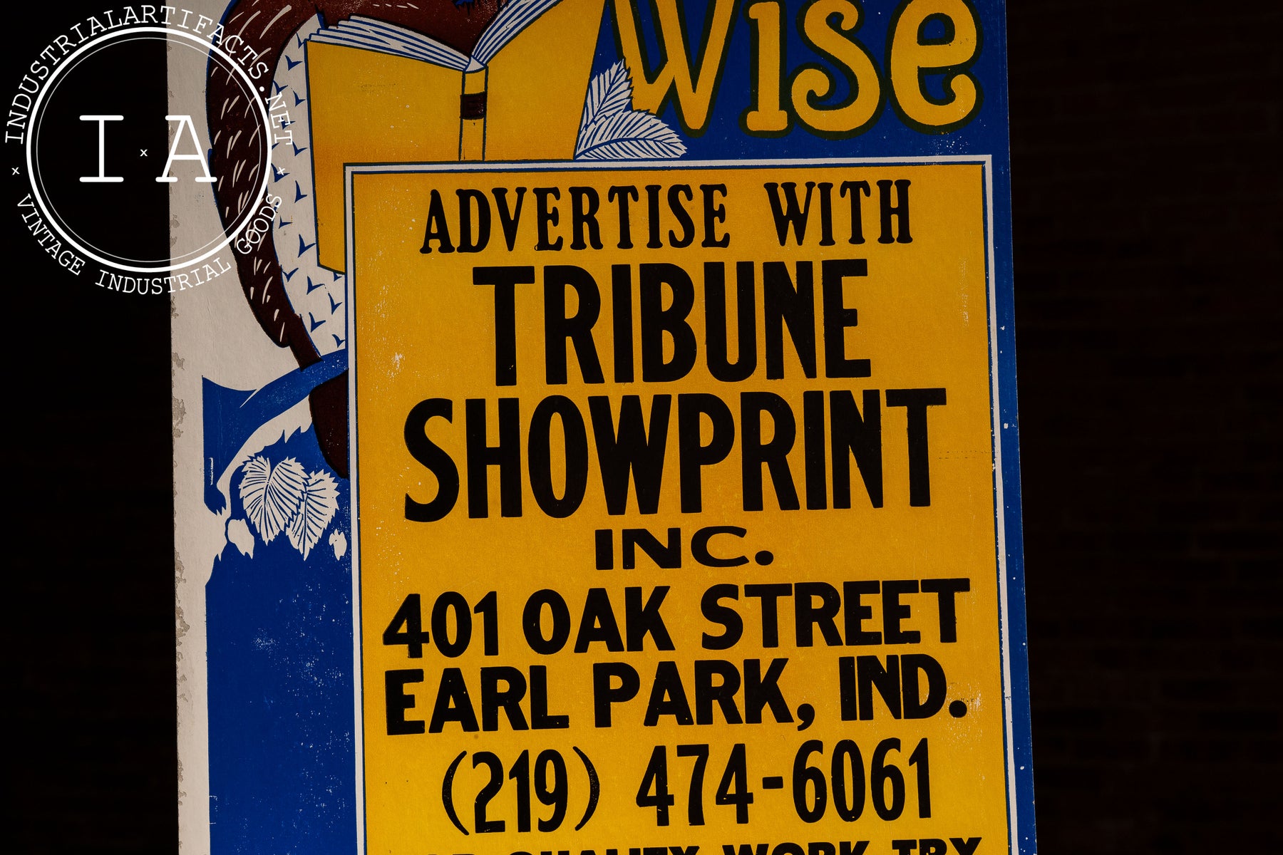 Vintage “Be Wise” Owl Advertising Broadside by Tribune Showprint