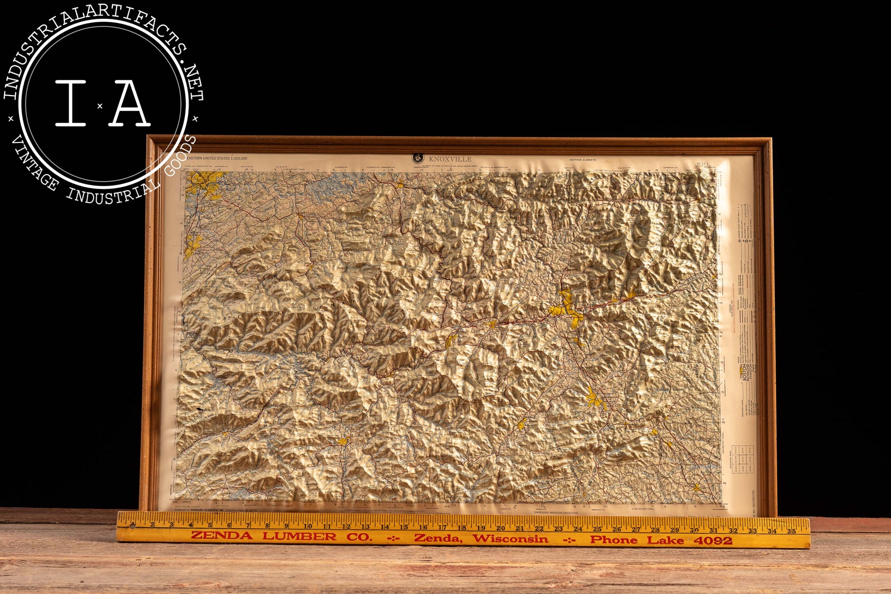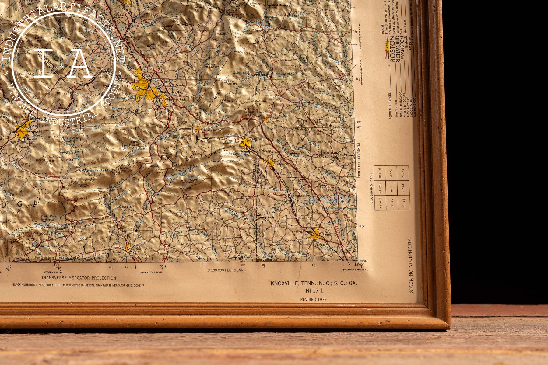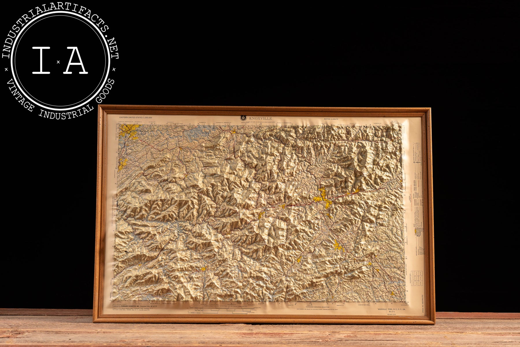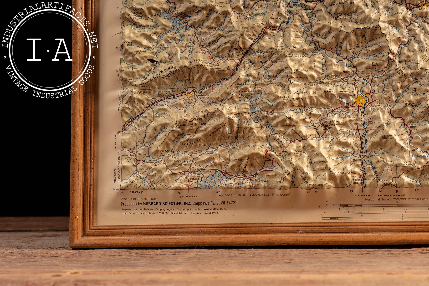 This example was produced by Hubbard Scientific Inc. for the U.S. Defense Mapping Agency during the Cold War era, when raised relief maps were widely used for education, planning, and military reference. The edition is marked NI 17-1, Revised 1972, aligning with a period of updated cartographic standards and expanded regional infrastructure. Housed in a simple wood frame, the piece reads as both a functional geographic document and a sculptural object, bridging scientific utility and mid-20th-century graphic presentation.
