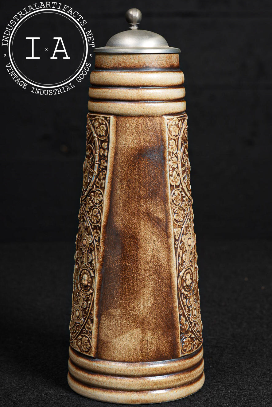 The Gerz pottery company, founded in 1862 in Höhr-Grenzhausen, was one of Germany's most prolific producers of steins and stoneware vessels. Their work combined traditional salt-glazed and relief-molded designs with modernized production techniques, earning a reputation for consistent quality throughout the 20th century.