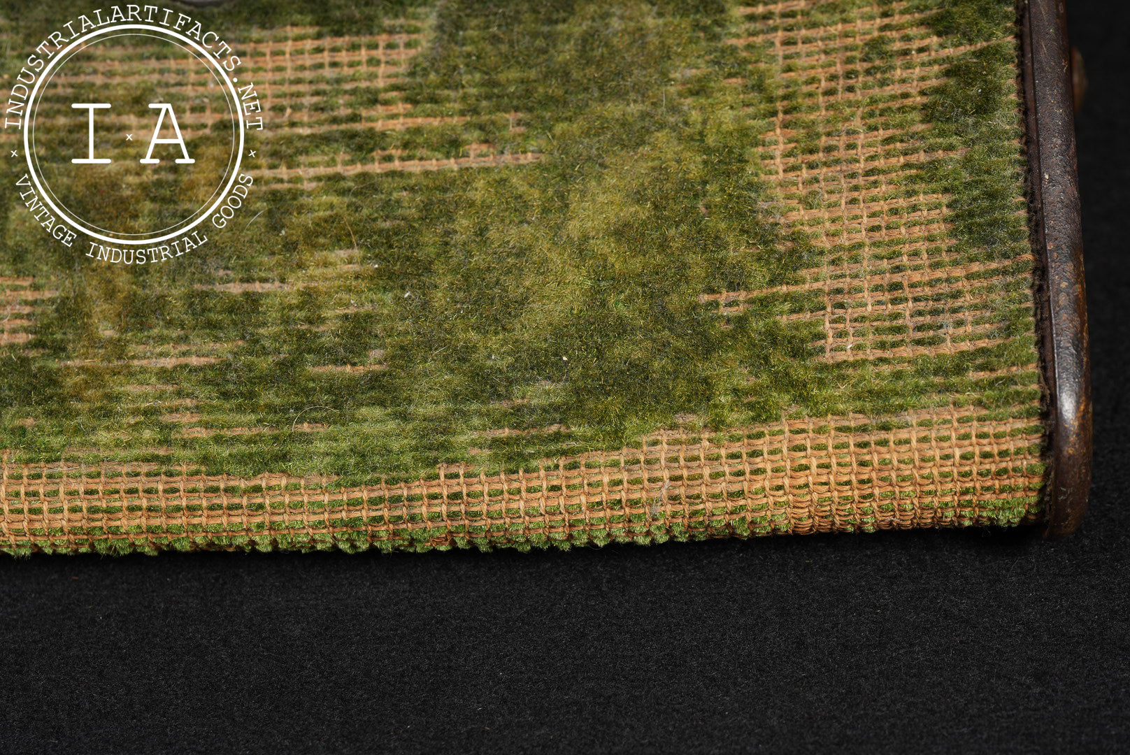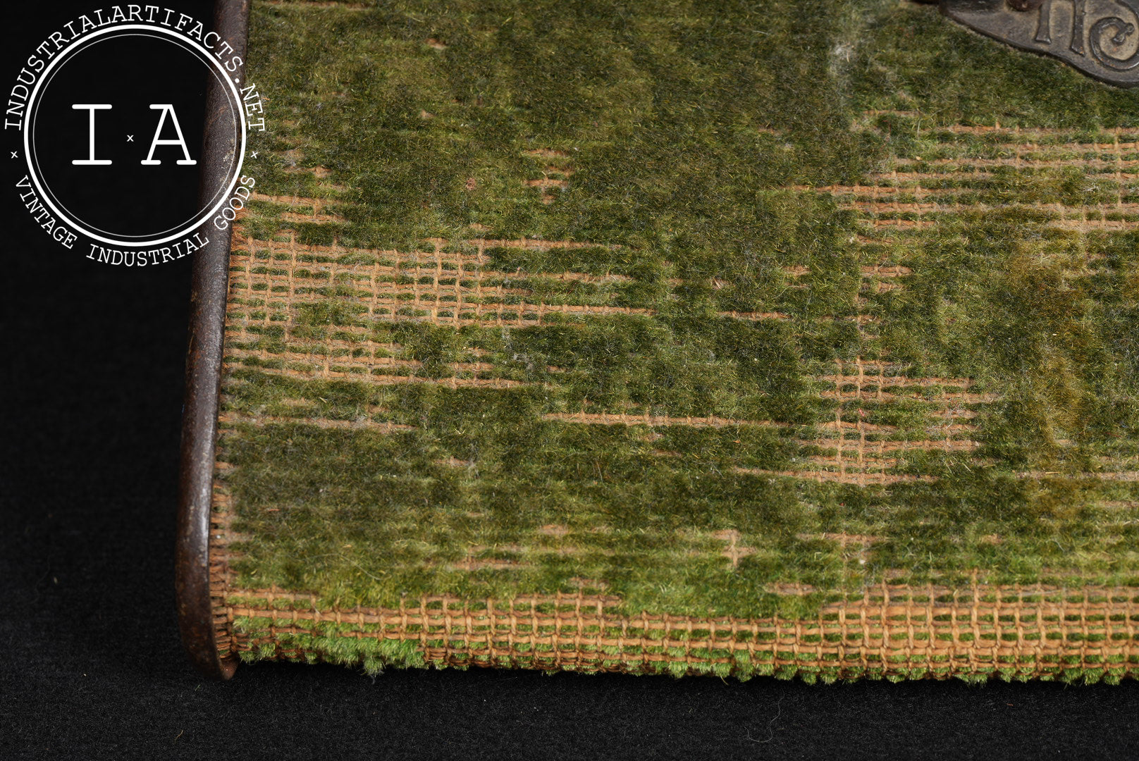 Shows heavy surface wear and loss to carpet fabric, oxidation to metal components, and patina consistent with prolonged use and age.