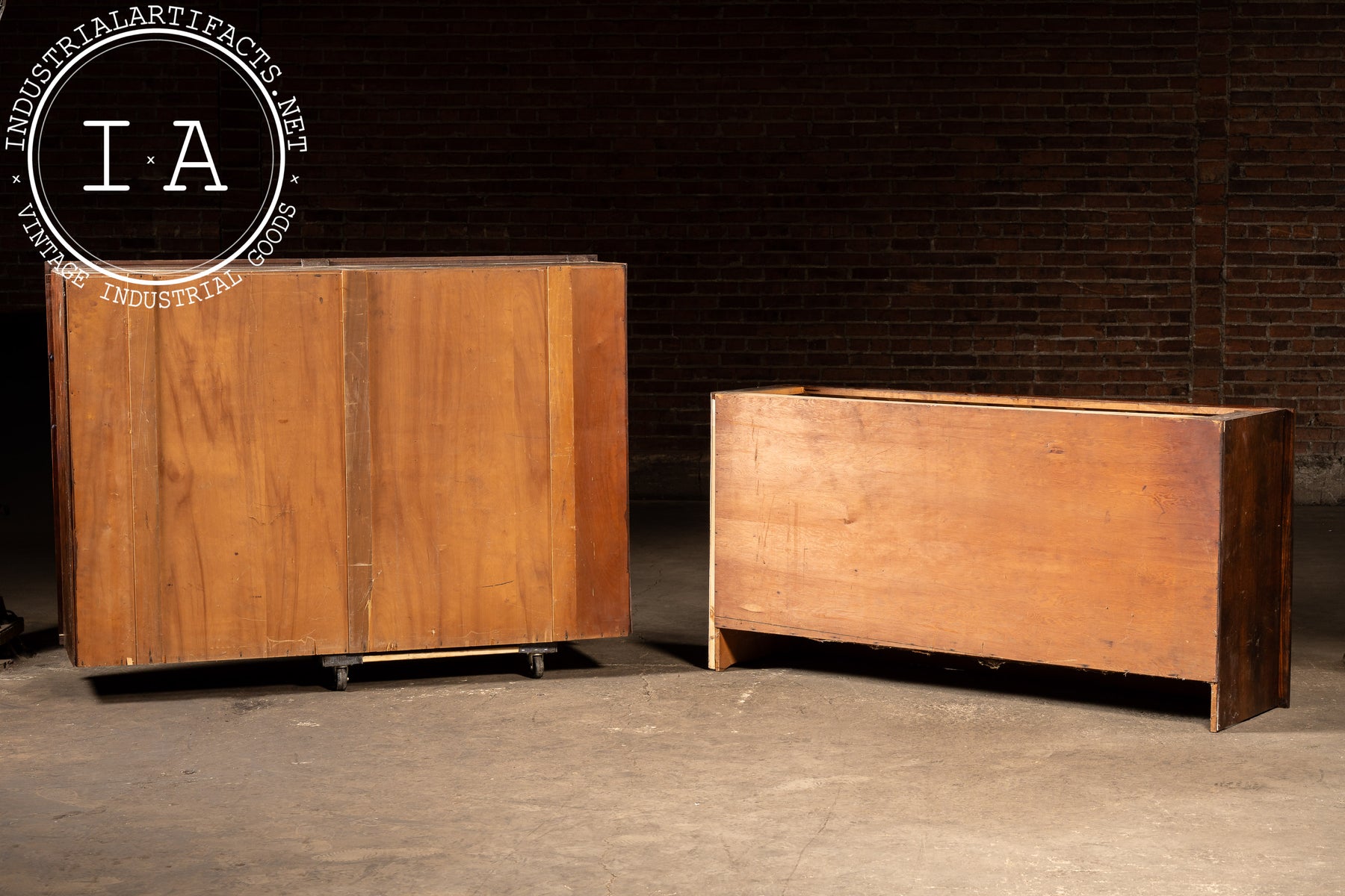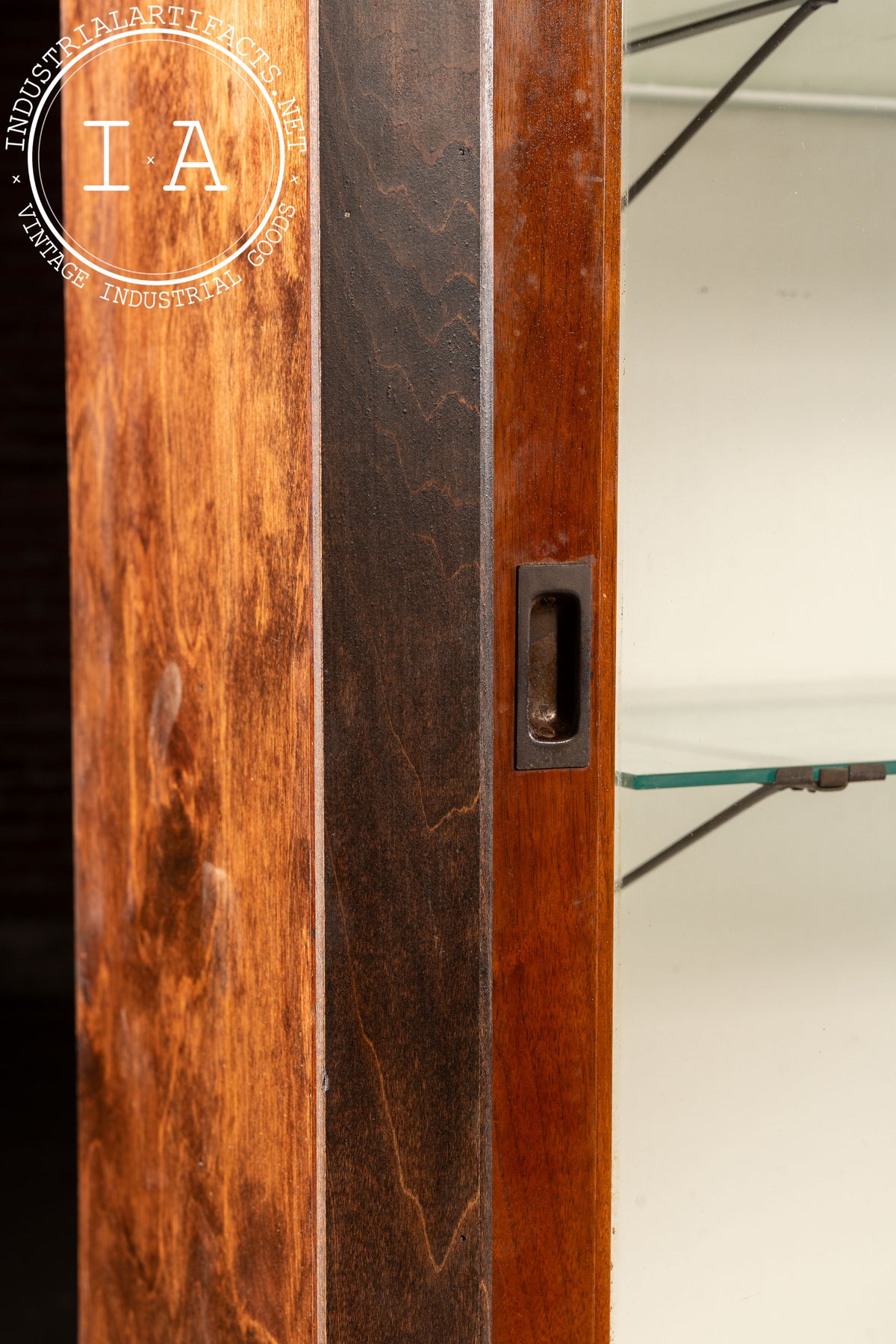 Crafted from solid oak with simple framing and recessed door pulls, this cabinet reflects the utilitarian craftsmanship of early 20th-century display design.