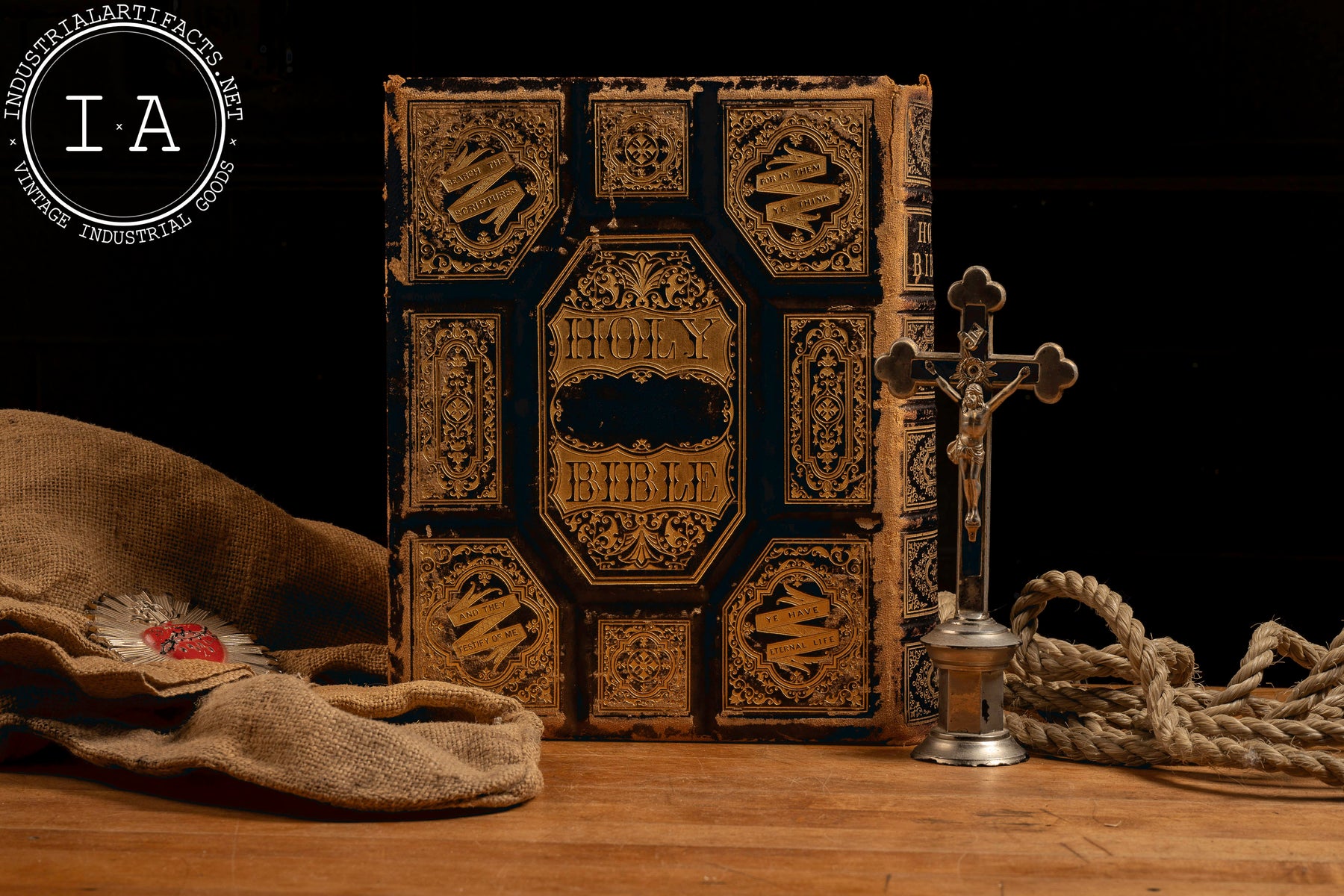 This piece exhibits some wear along the spine and the Bible title page has come loose, but overall it is in very good condition given its age.