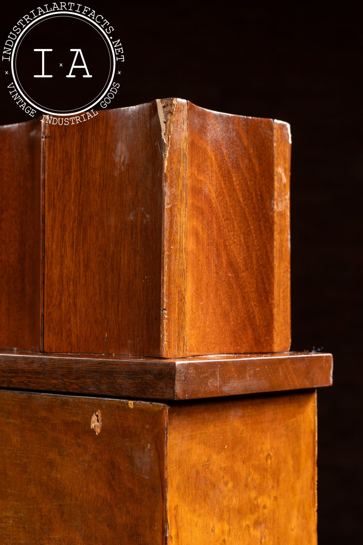 Likely produced for a commercial or hospitality interior, this divider would have provided both privacy and visual warmth in a period setting such as a hotel lobby or office suite. The craftsmanship reflects a transition between Art Deco opulence and postwar simplicity, emphasizing veneer artistry over ornamentation.
