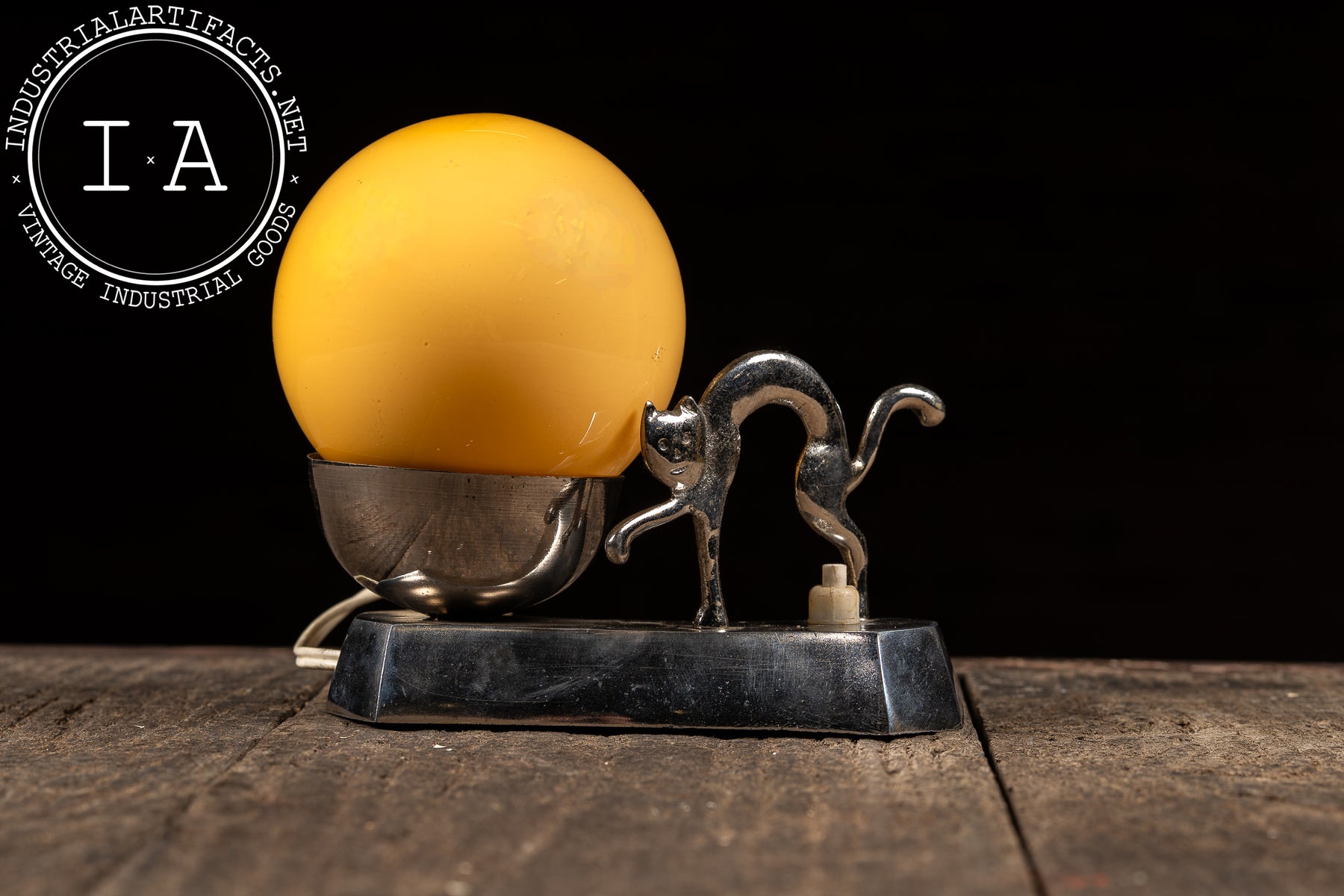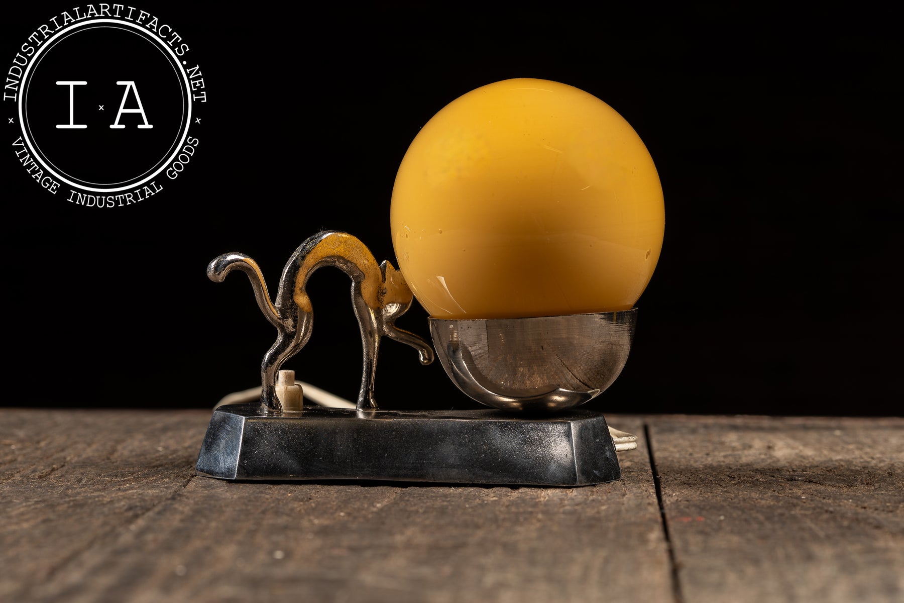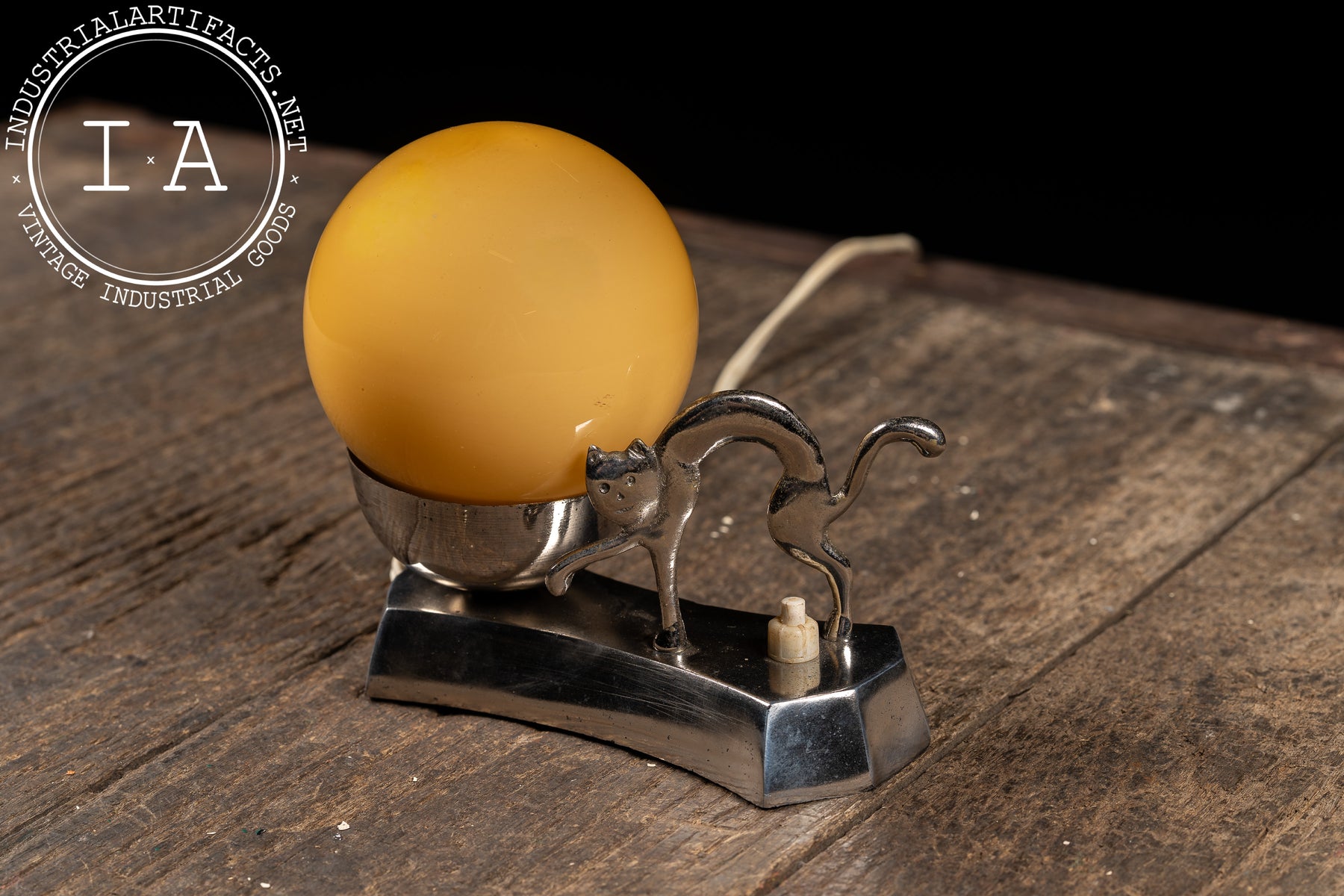 Vintage Art Deco Chrome Cat Lamp with Amber Glass Globe