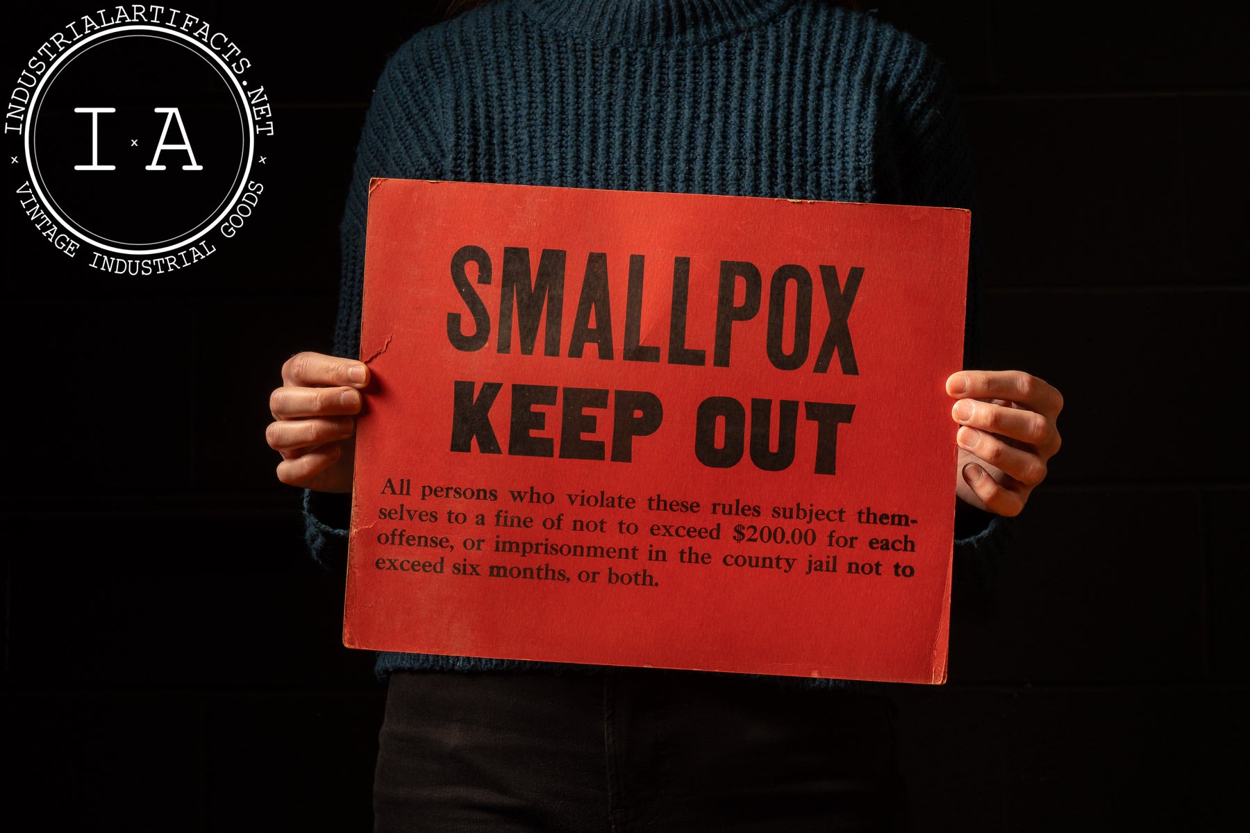 Smallpox was one of the first diseases to prompt systematic quarantine signage in America, with these bright red warnings serving as both legal documentation and visual deterrents to entry. By mid-century, aggressive vaccination programs led by the World Health Organization eventually eradicated the disease globally by 1980, making early quarantine signage like this a stark reminder of pre-modern epidemic control practices.
