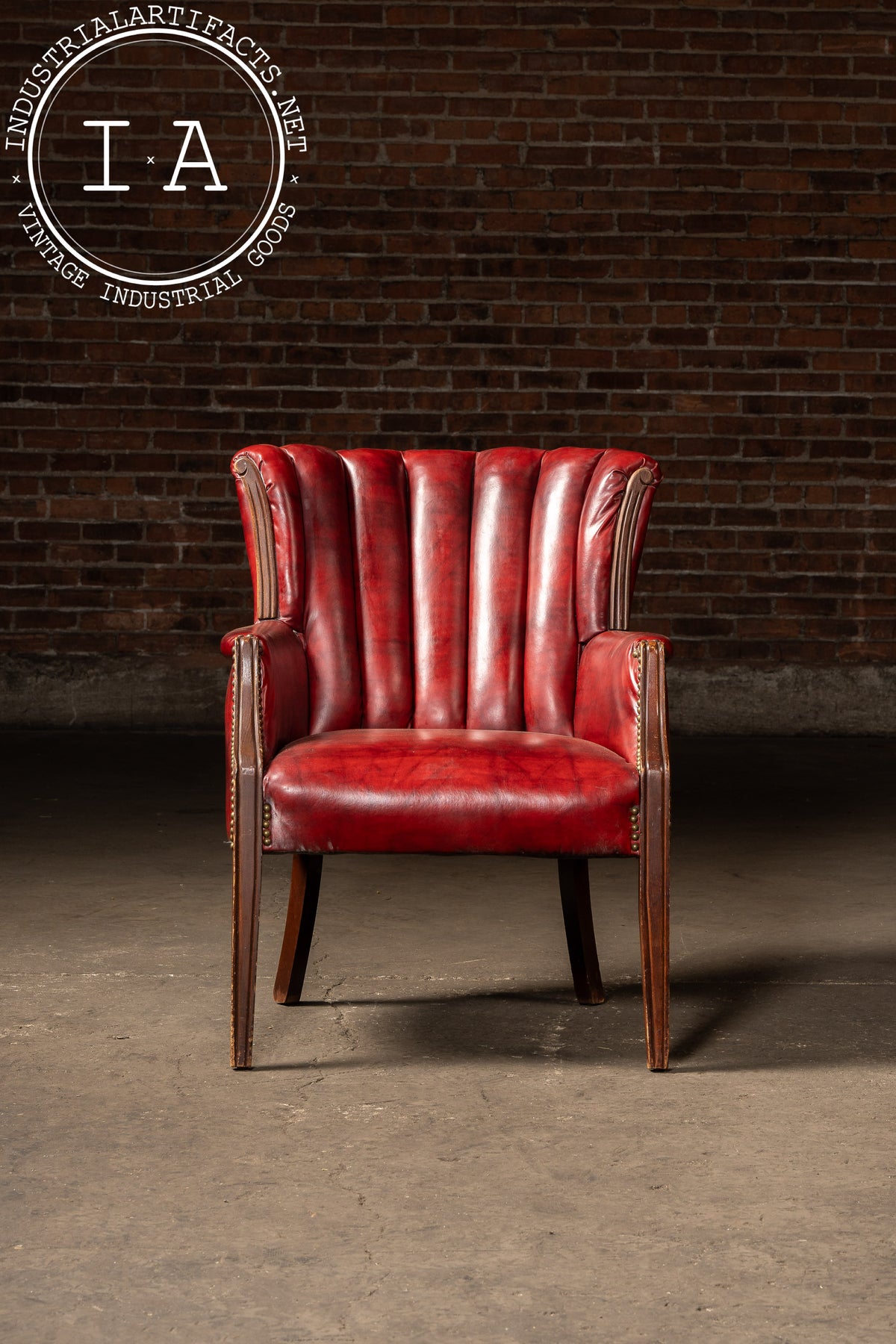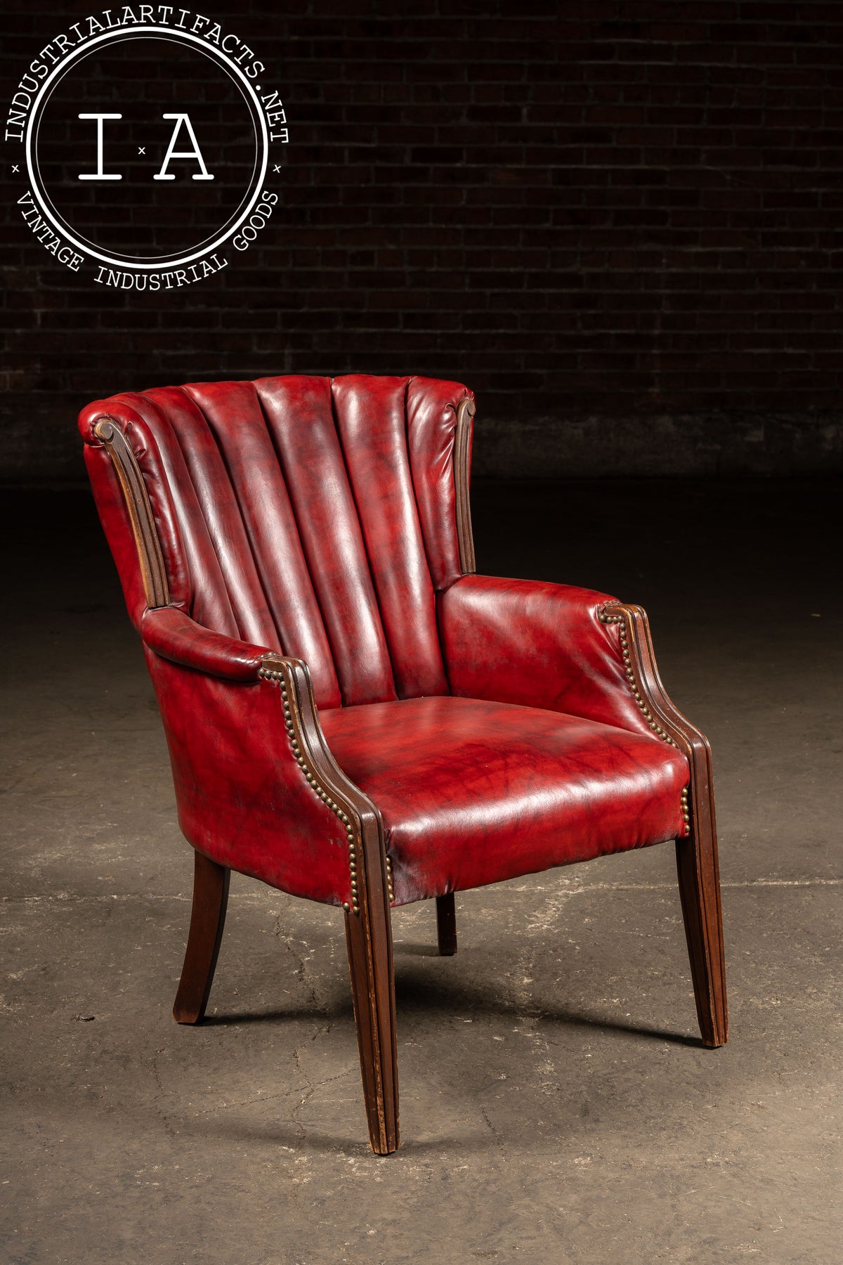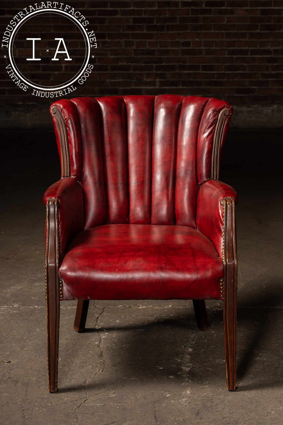 Vintage Leather Channel-Back Armchair with Nailhead Trim in Red