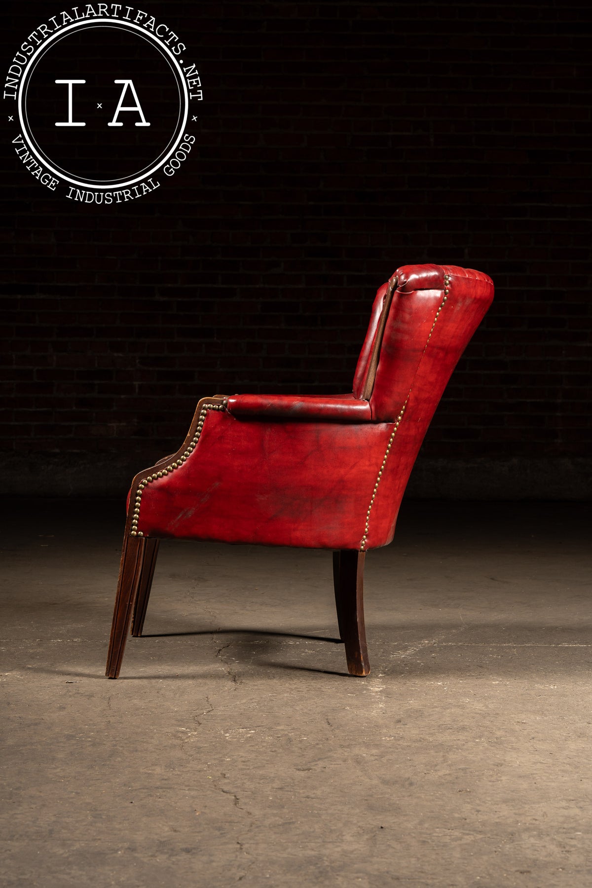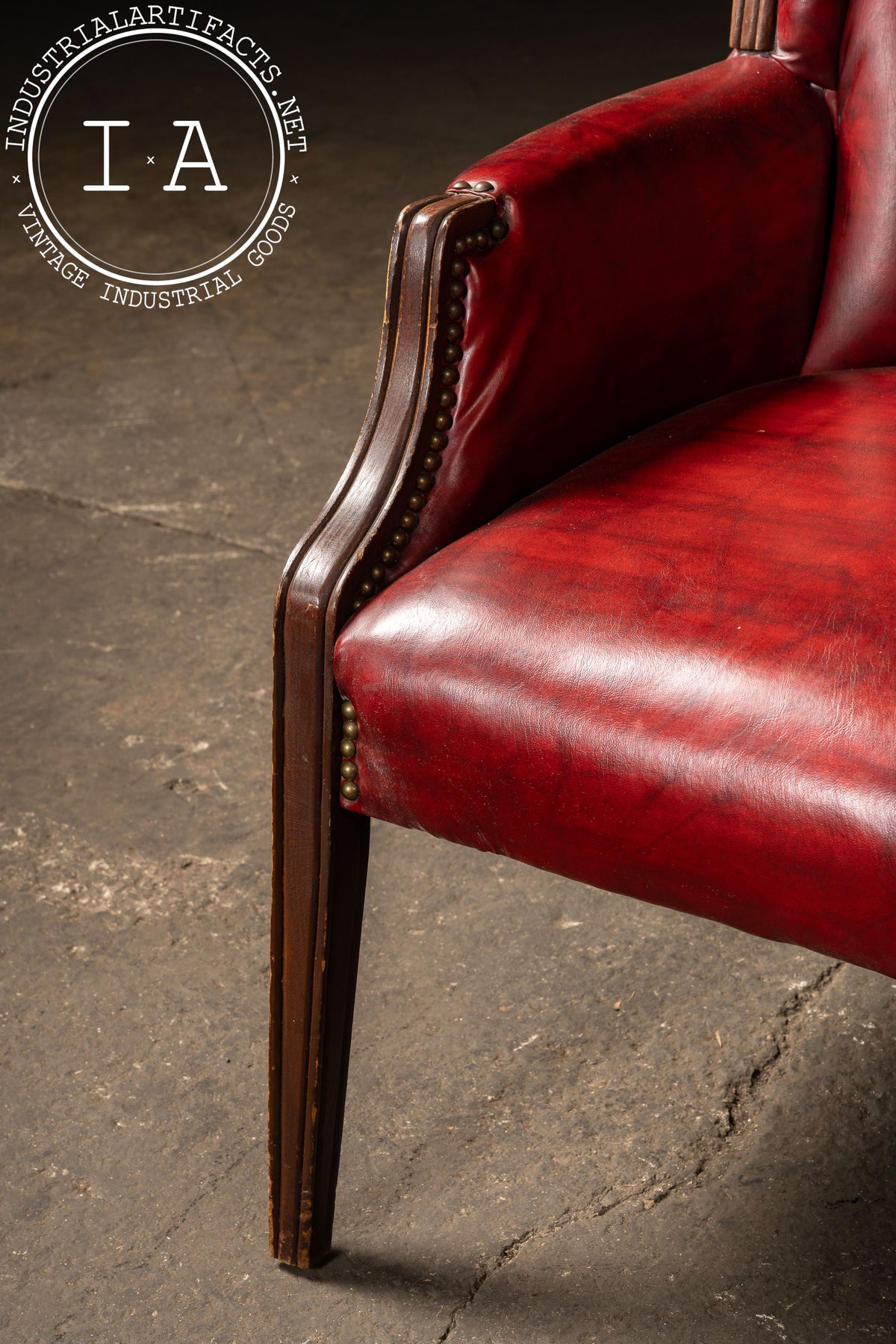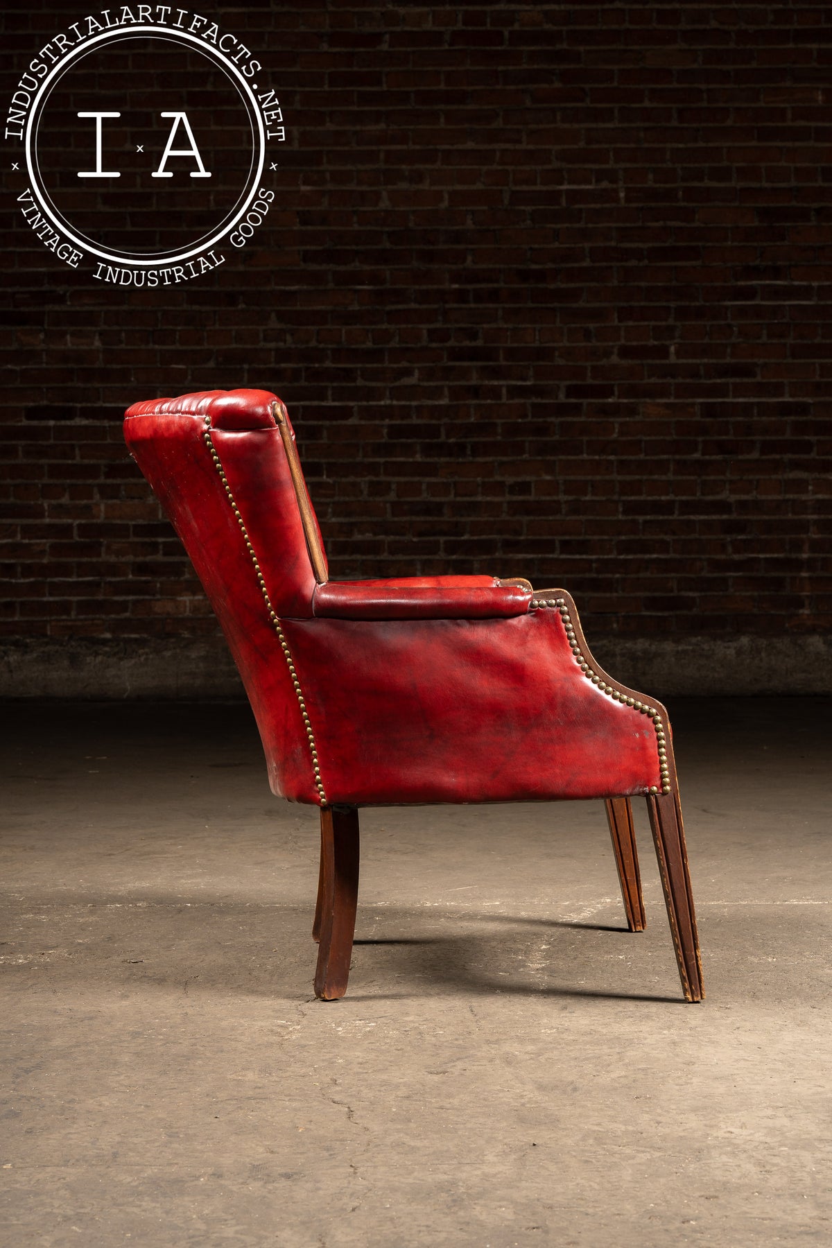 Vintage Leather Channel-Back Armchair with Nailhead Trim in Red