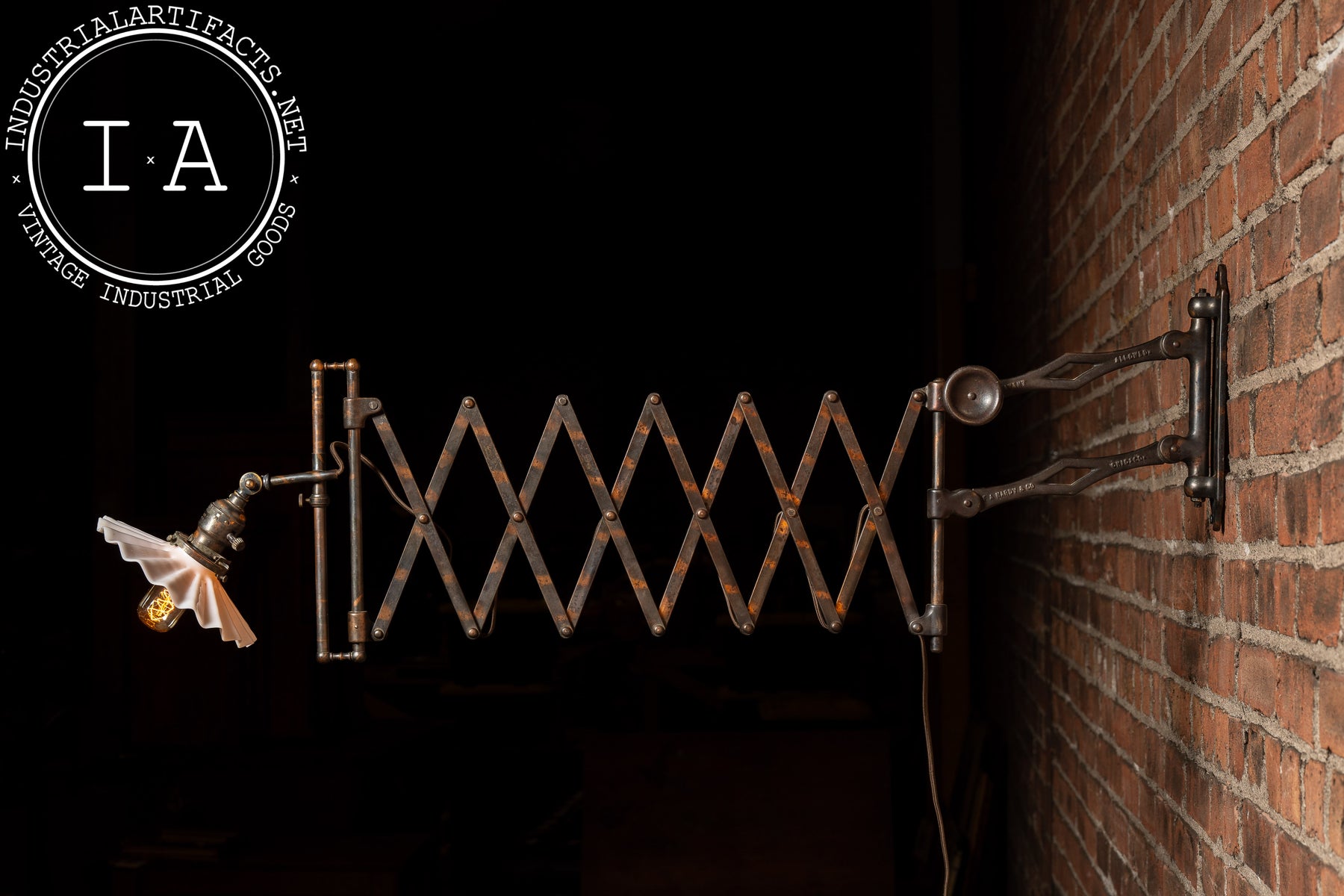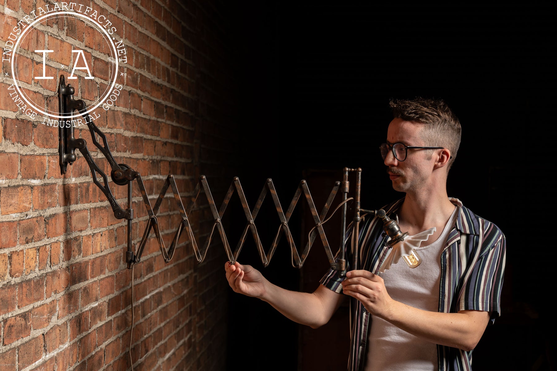 Antique Japanned Copper Scissor Arm Wall Lamp by F. W. Hardy