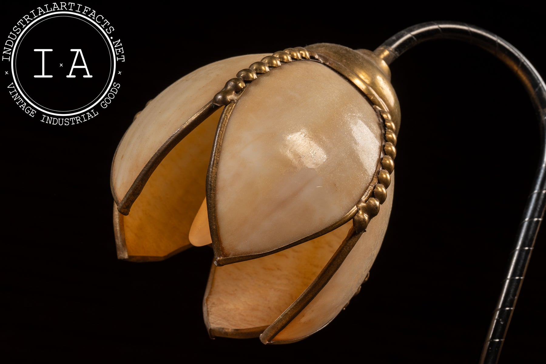 Art Nouveau Double Tulip Slag Glass Table Lamp
