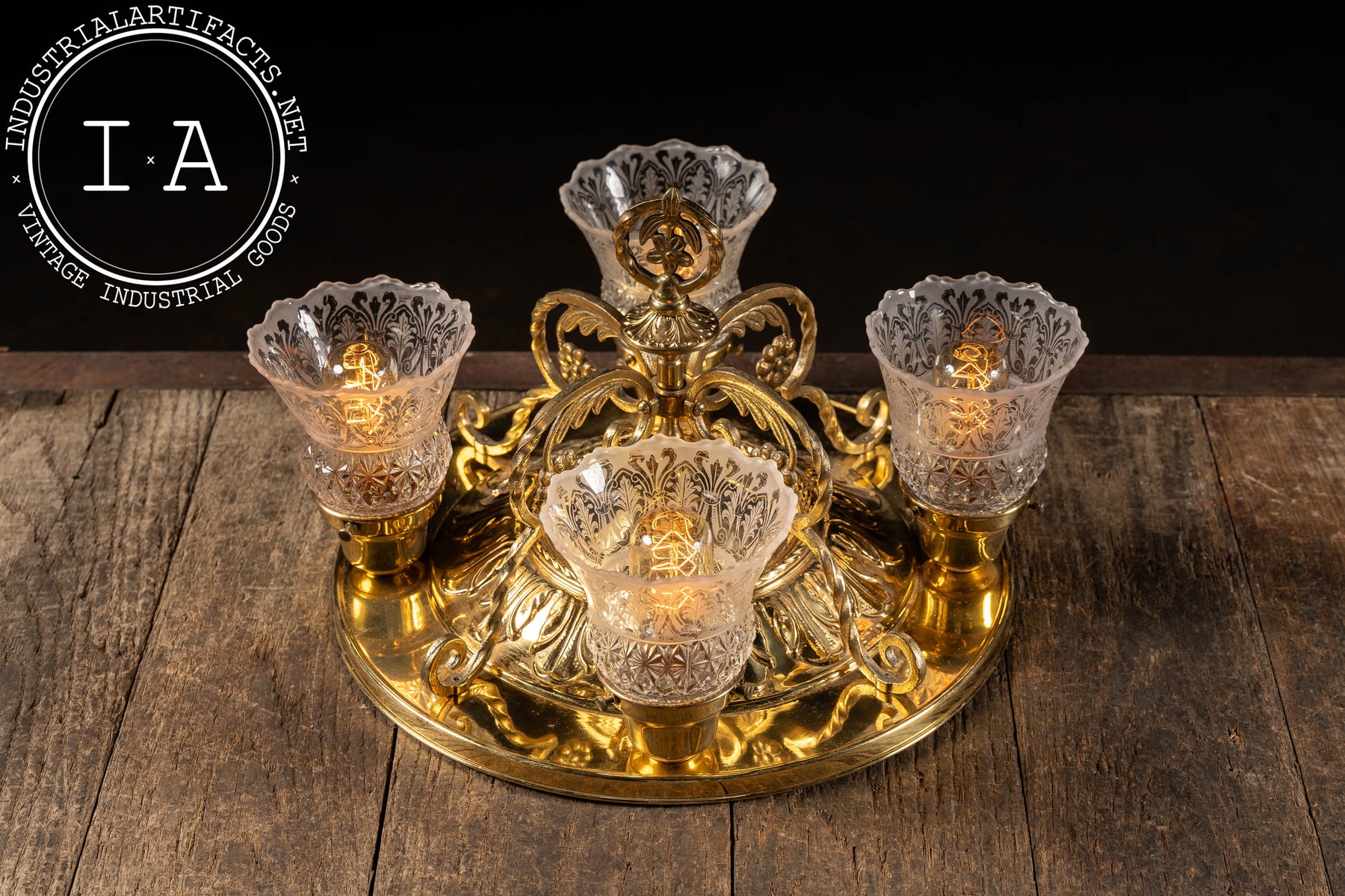 Originally crafted in the early 1900s when brass lighting became widely popular in American households, this type of fixture balanced utility with ornamental flourish, often featured in parlors, dining rooms, and entryways.