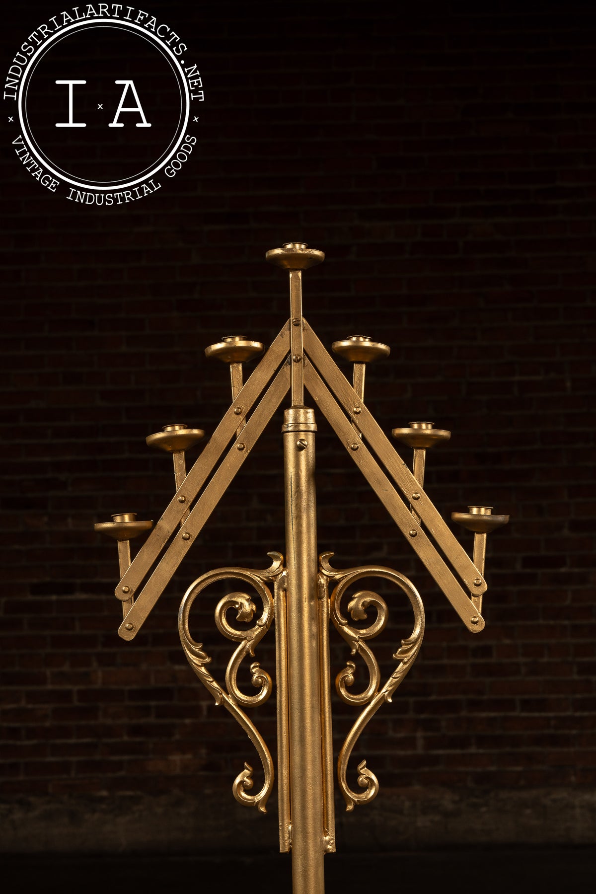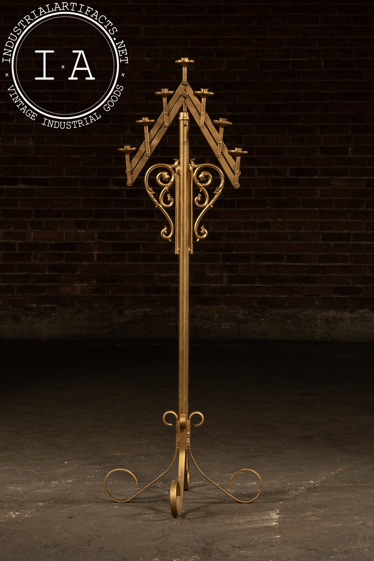 Vintage Gold-Painted Adjustable Floor Candelabra