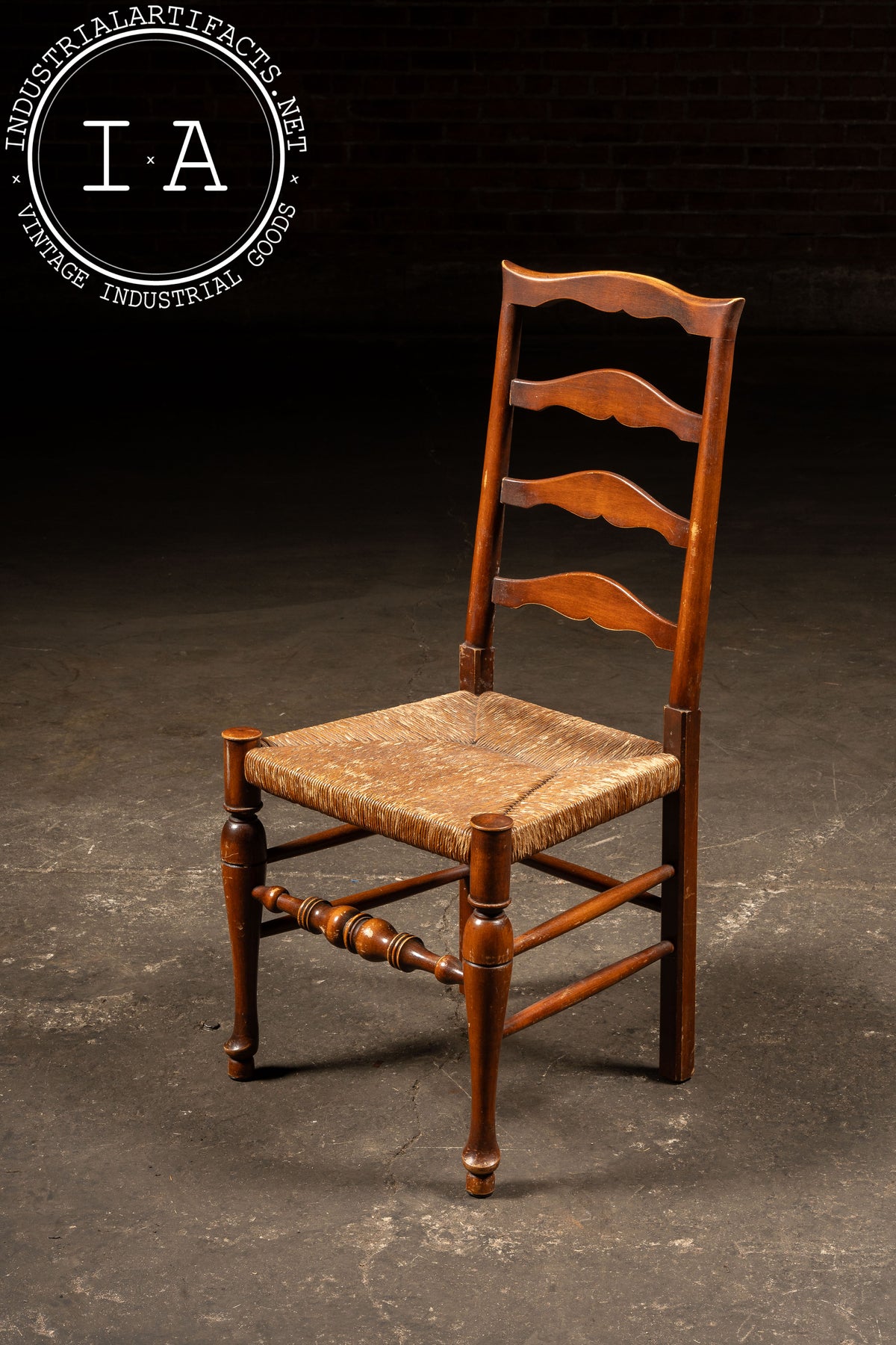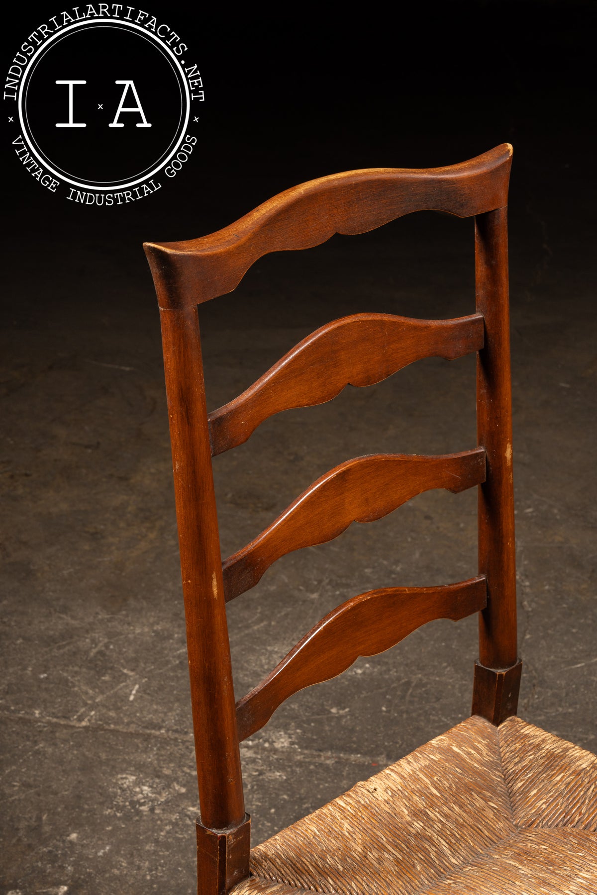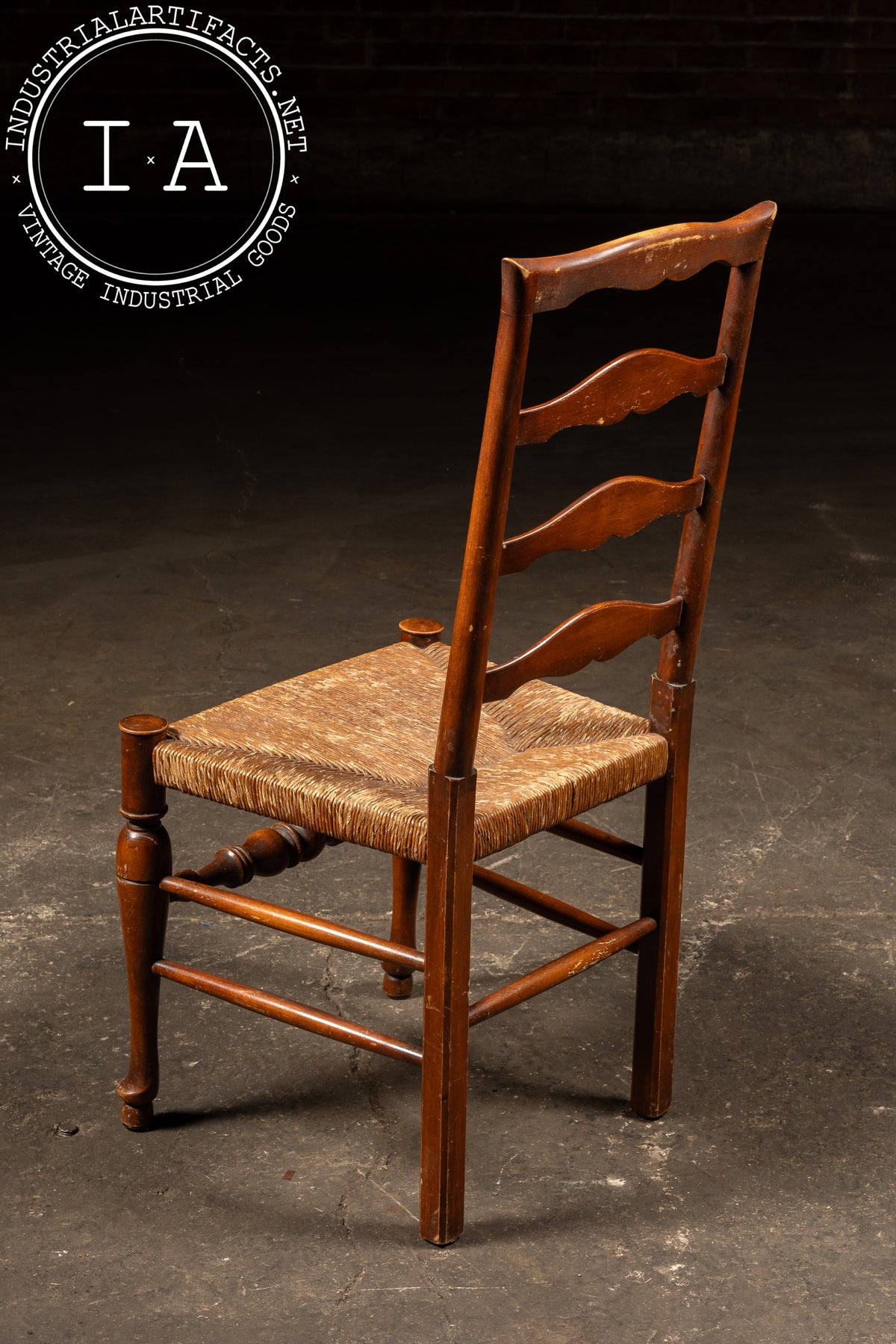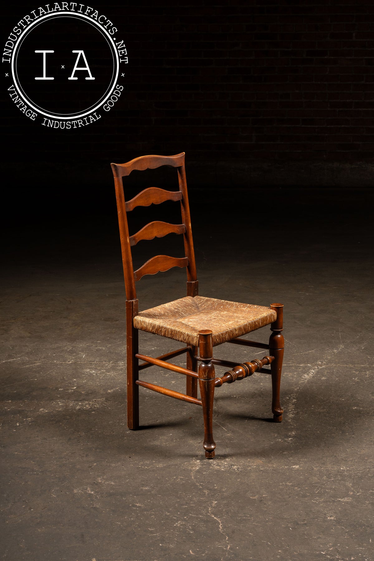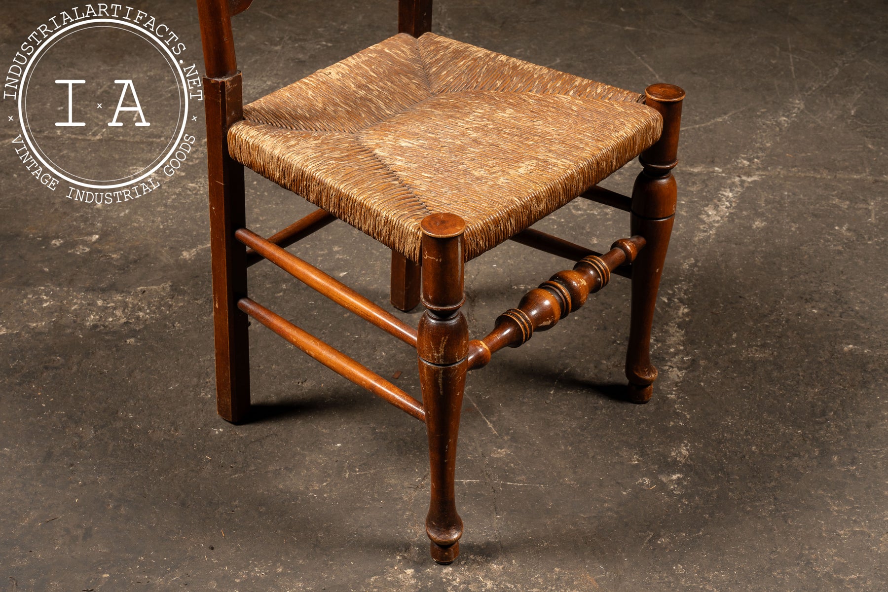 Antique Ladderback Farmhouse Dining Chair with Hand-Woven Rush Seat