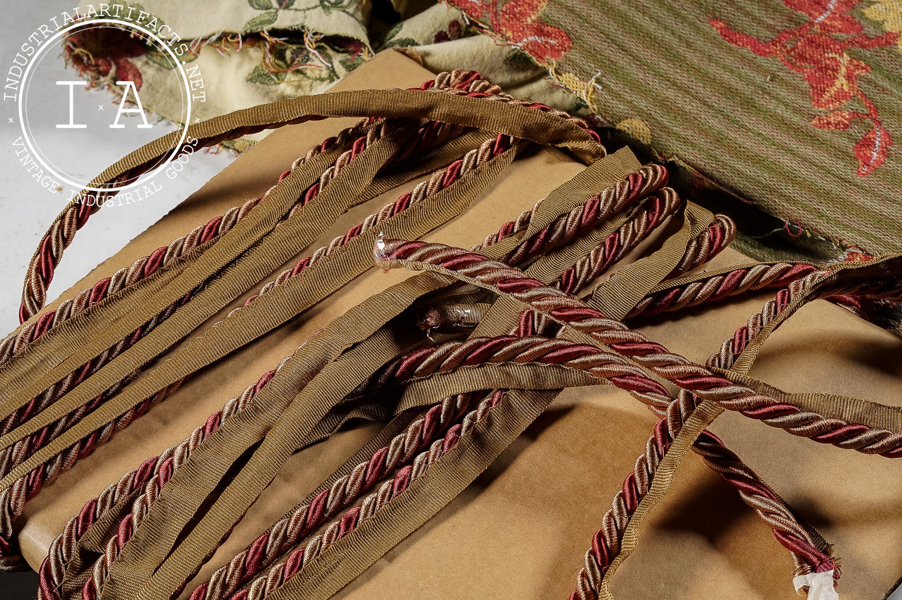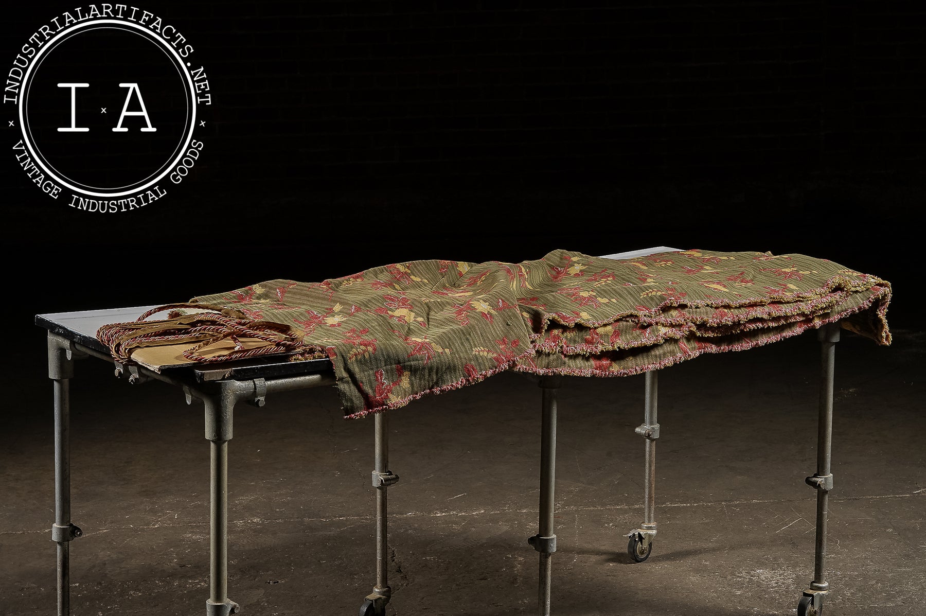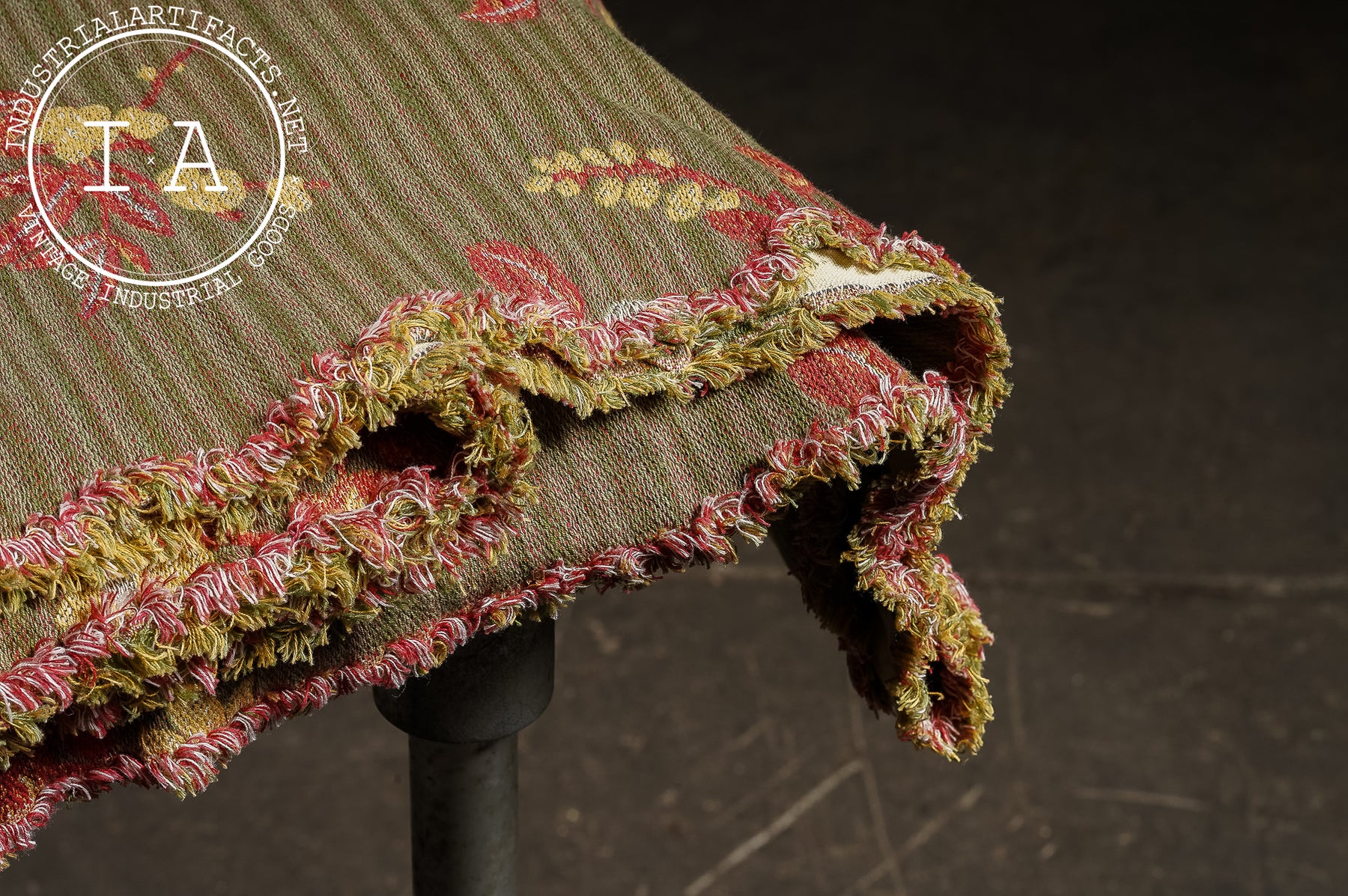 Included with the loveseat is a substantial quantity of matching fabric believed to be an original or early furniture cover, likely intended to protect the upholstery when not in use. The fabric shows similar age, wear, and patterning, reinforcing its association with the sofa. Together, the loveseat and fabric form a rare surviving textile grouping that illustrates early upholstery practices and domestic preservation habits.