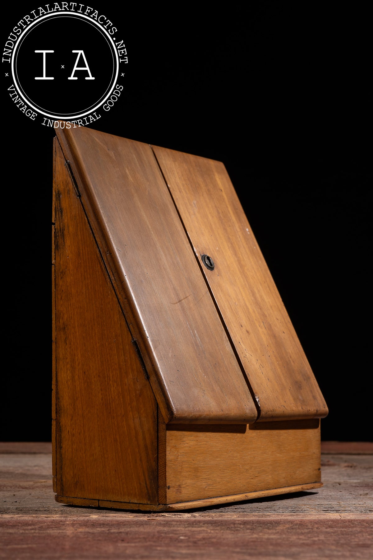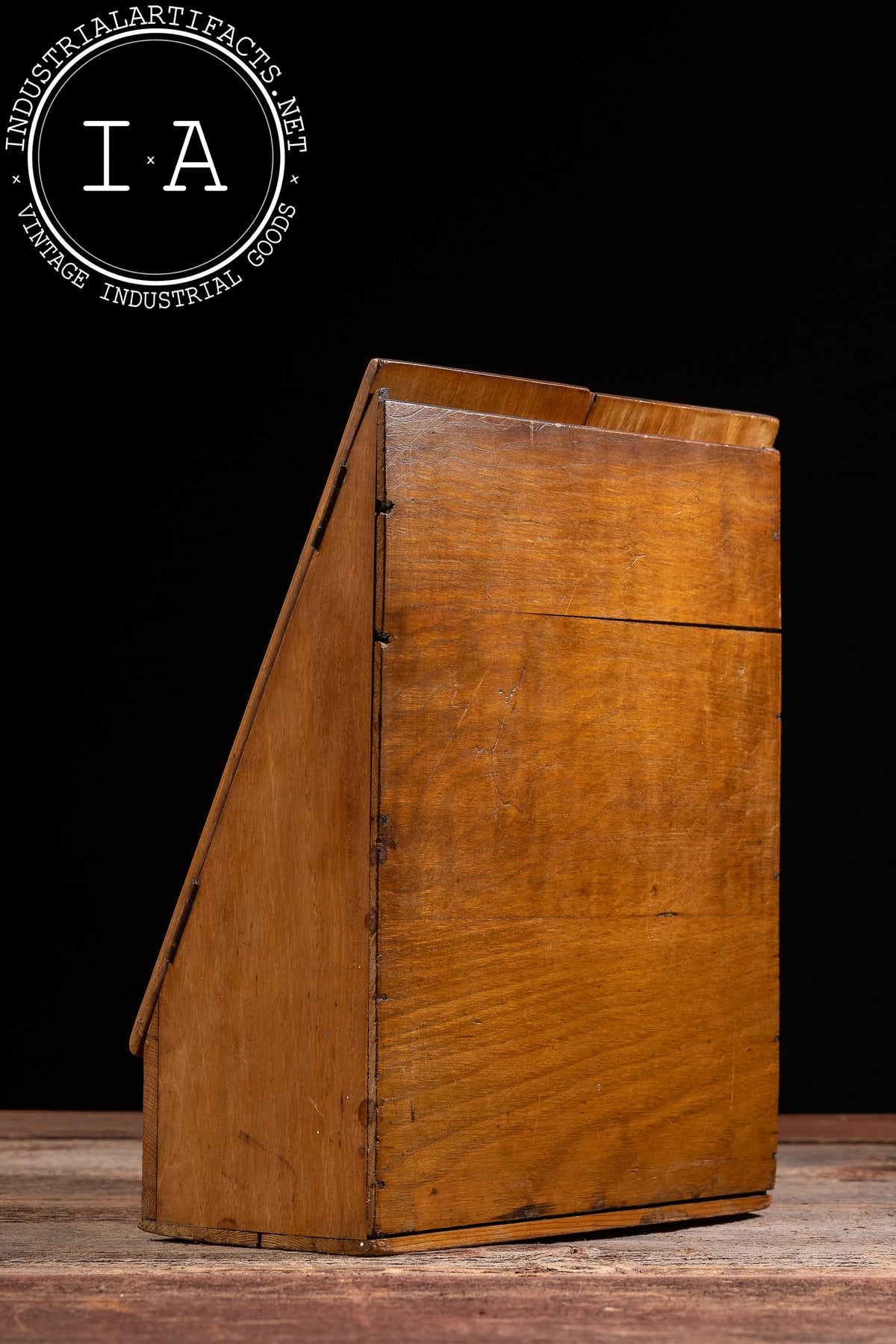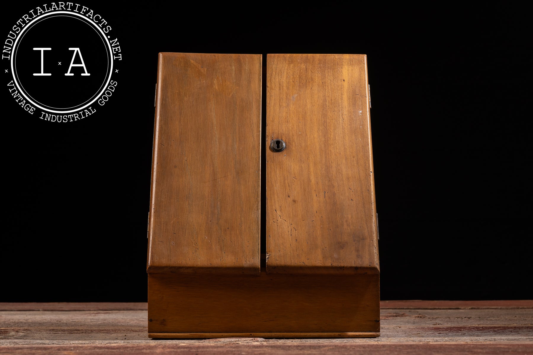 Desktop cabinets of this type were commonly used in offices, libraries, and home studies to organize letters, bills, and documents before the widespread adoption of metal filing systems. The form emphasizes practicality and efficient use of space, with modest craftsmanship focused on daily function rather than ornament. This example remains visually cohesive, with consistent surface wear that reinforces its working history.