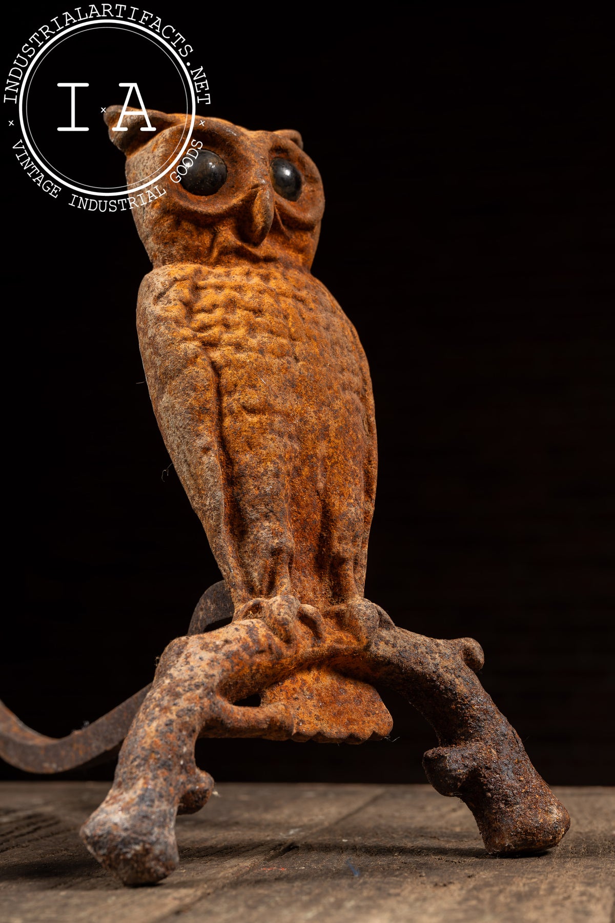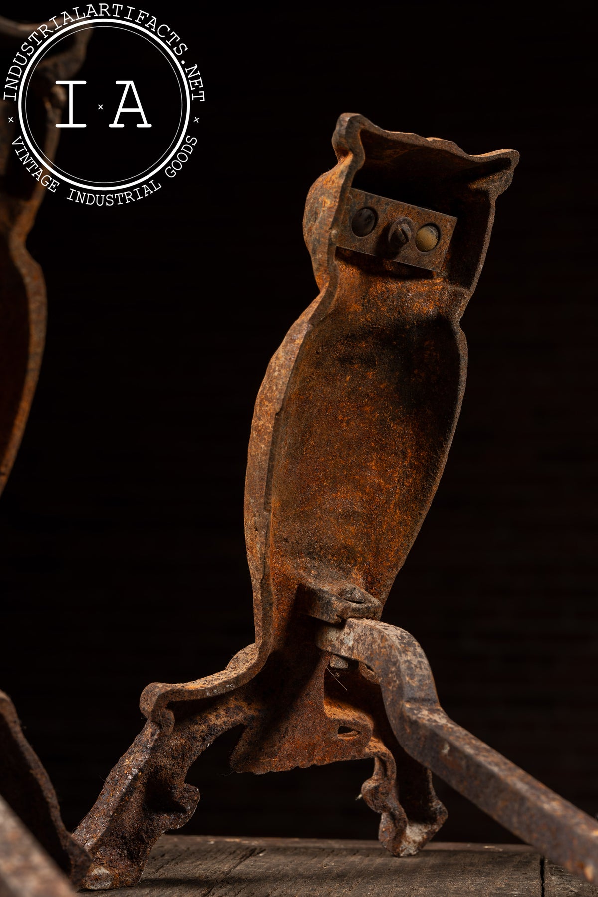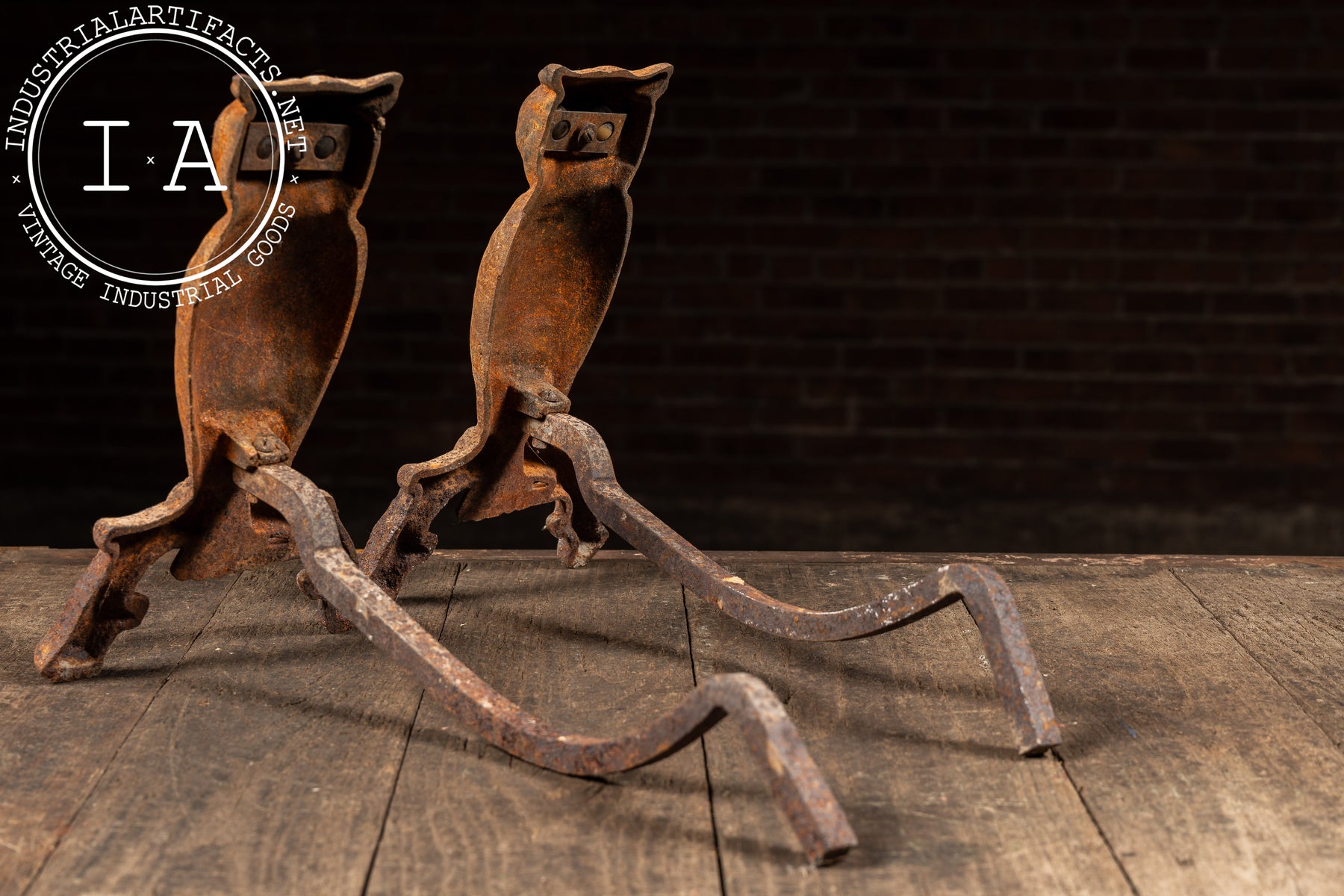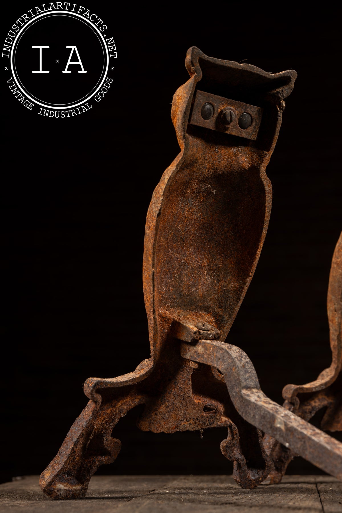 Set Of Antique Cast Iron Owl Fireplace Andirons