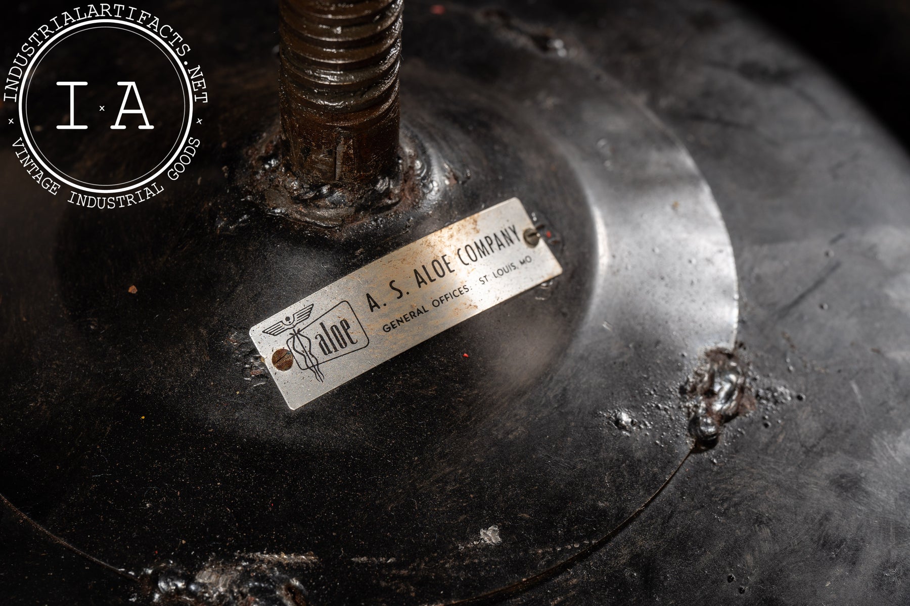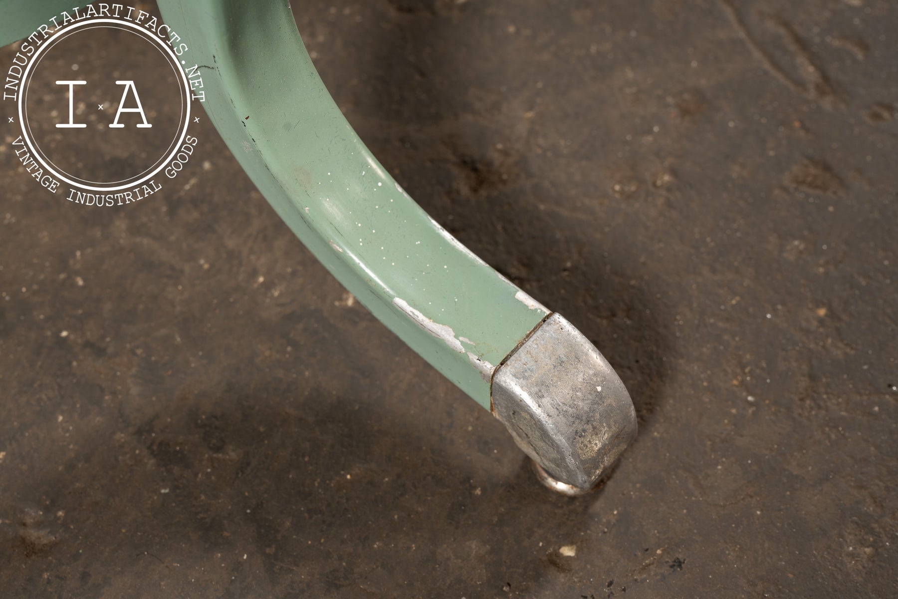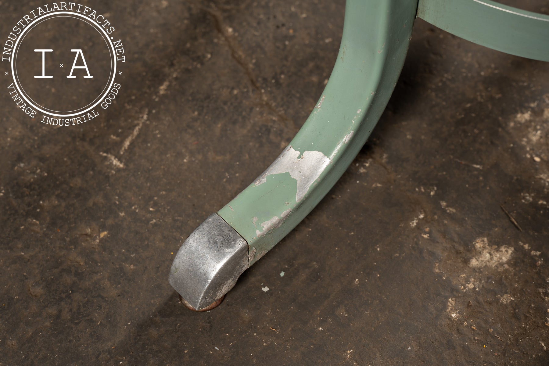 A swivel top stool developed by the Albert Sidney Aloe Company, sometime around the 1920s. This example is finished in a lovely green. This stool is sturdy and ready for daily use.