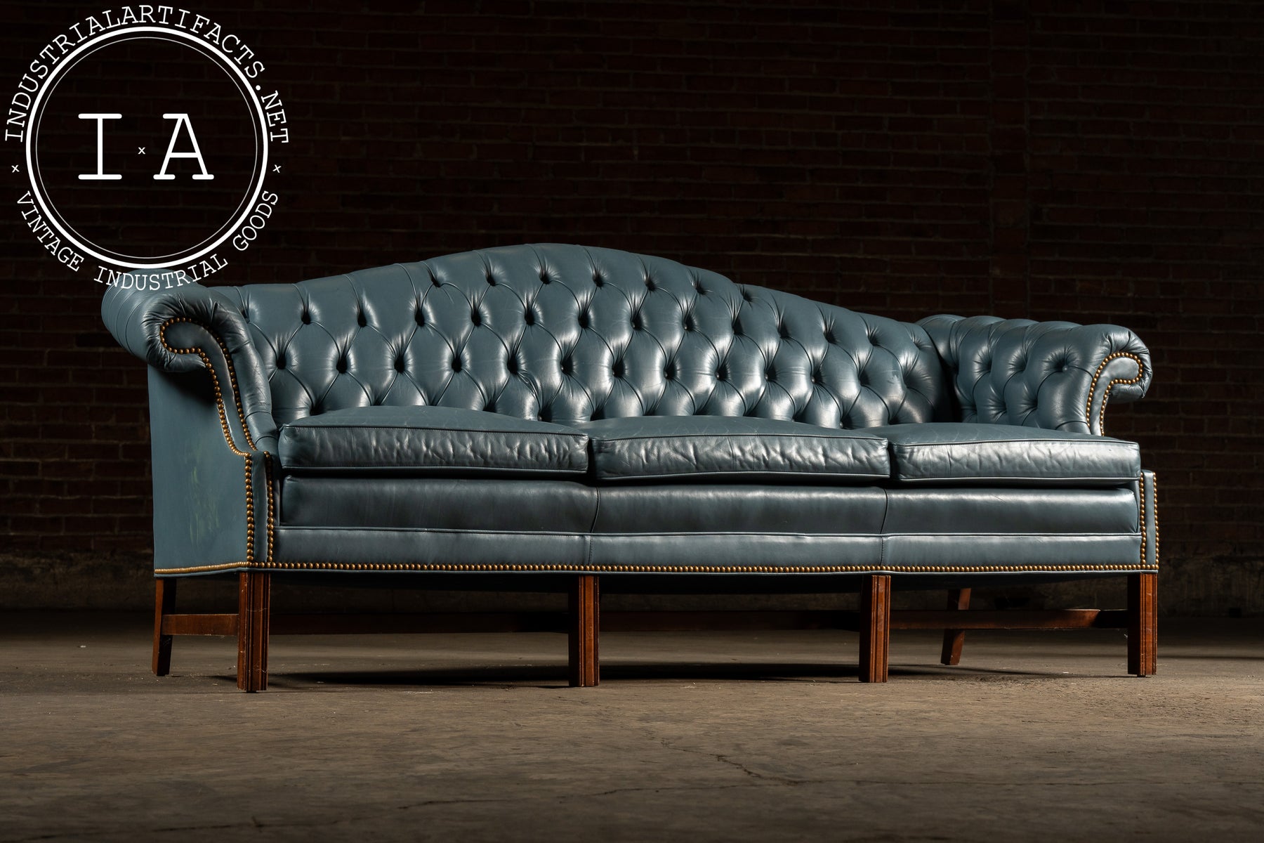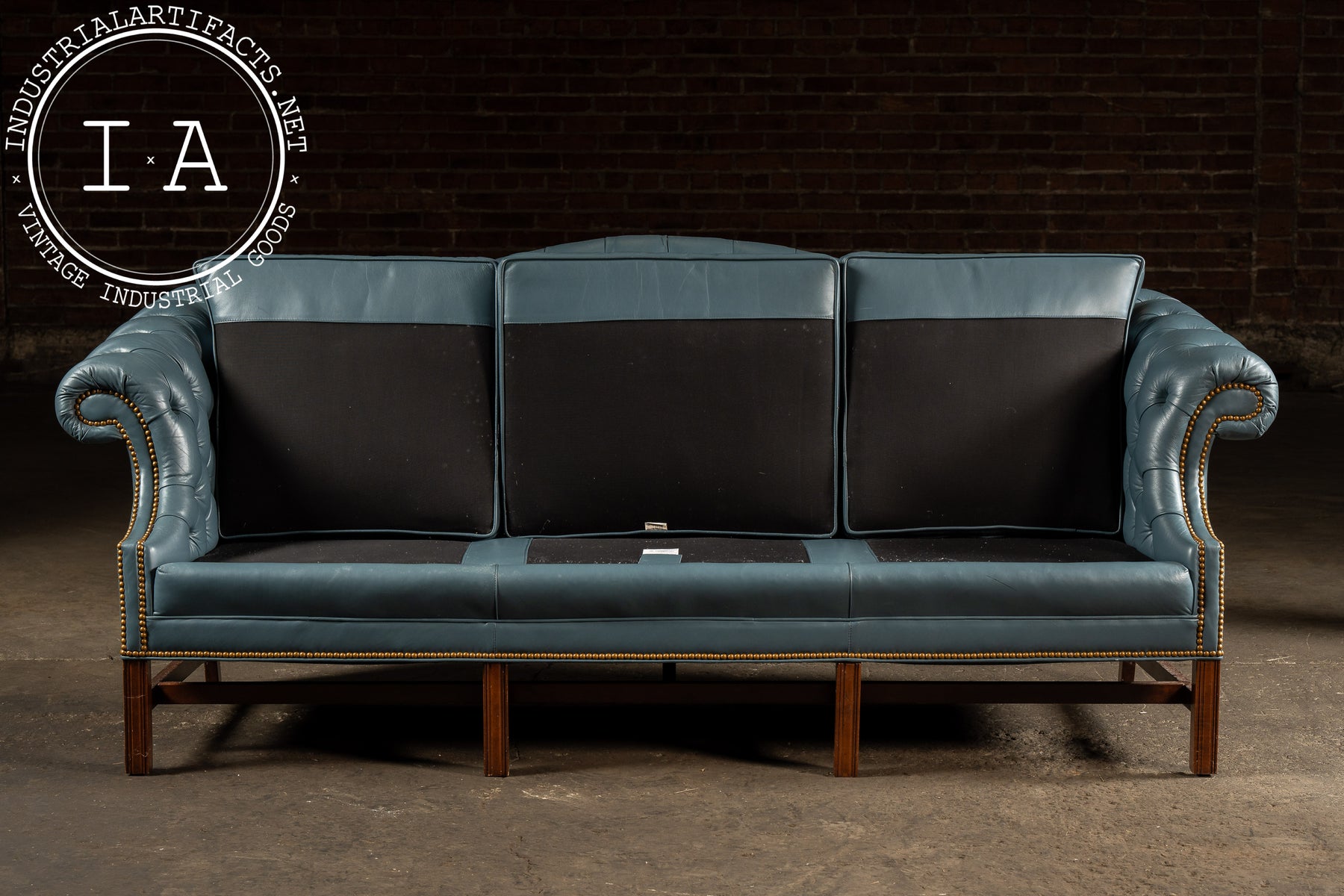 Vintage Tufted Leather Chesterfield Sofa in Blue
