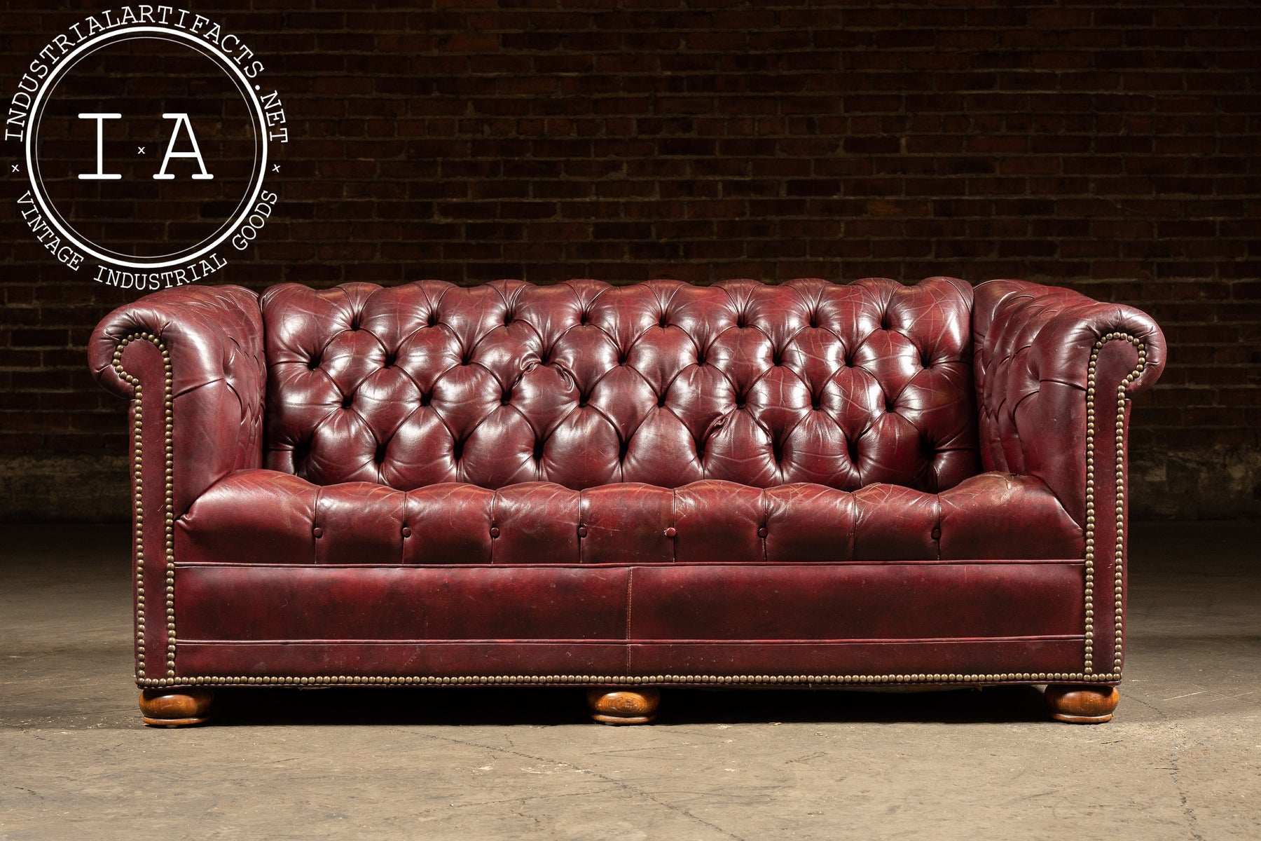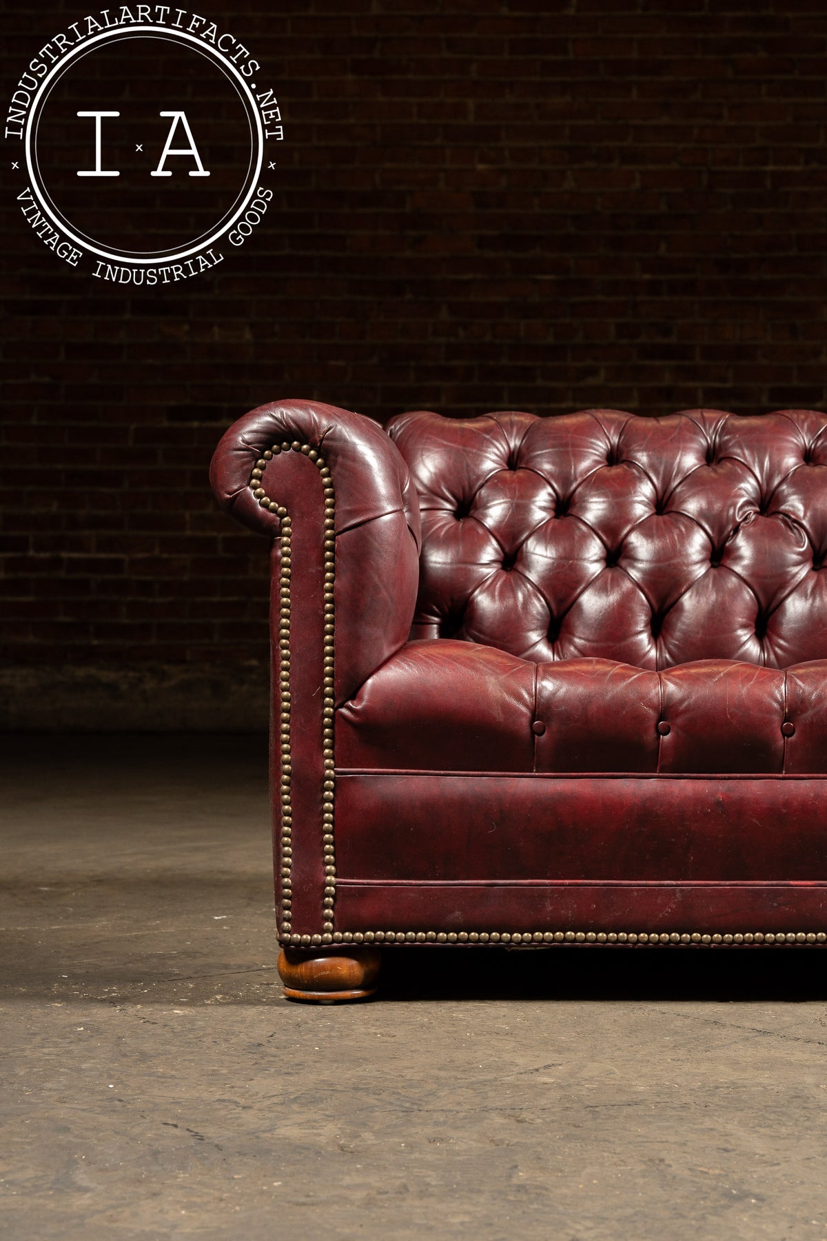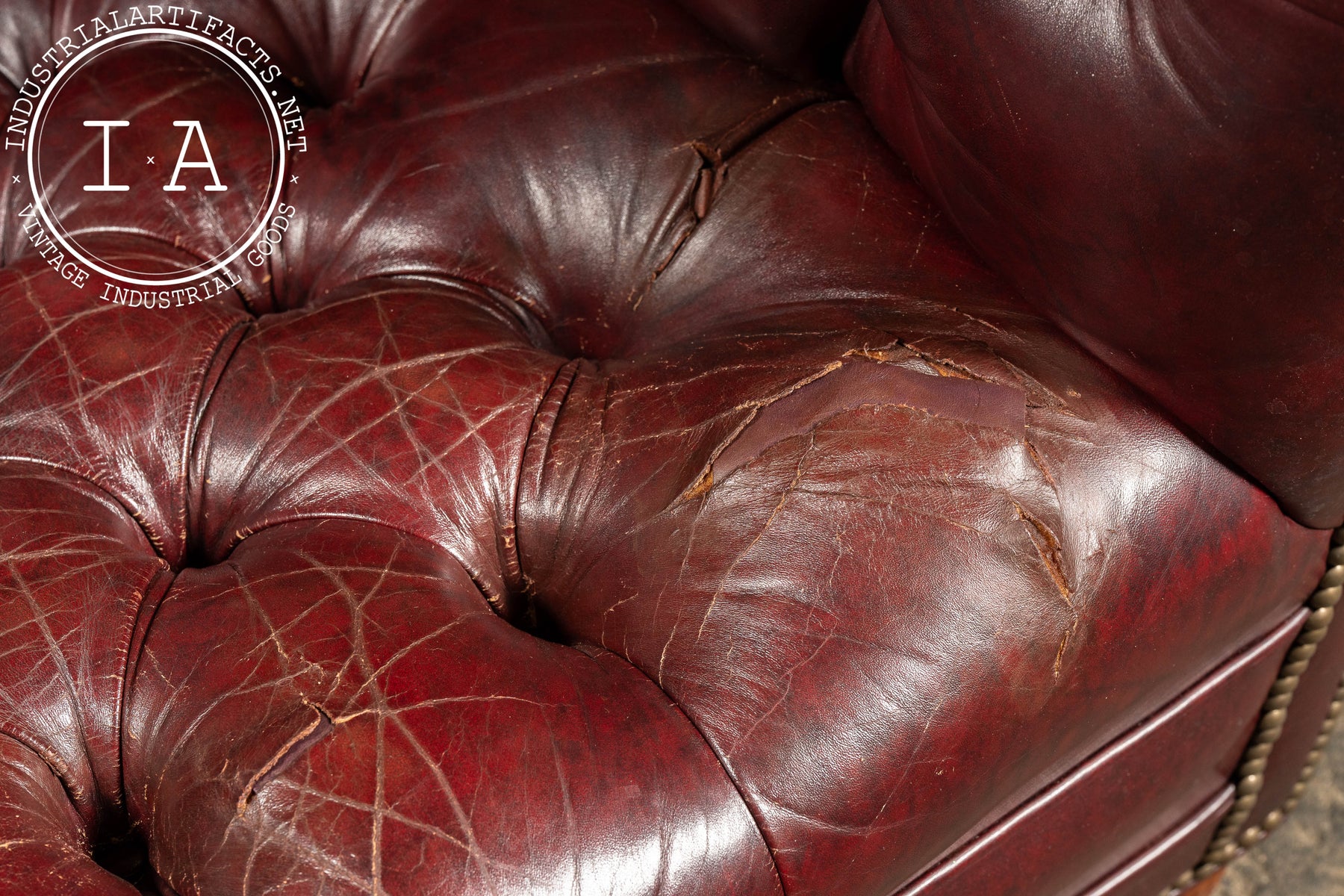 Vintage Tufted Leather Chesterfield Sofa in Burgundy