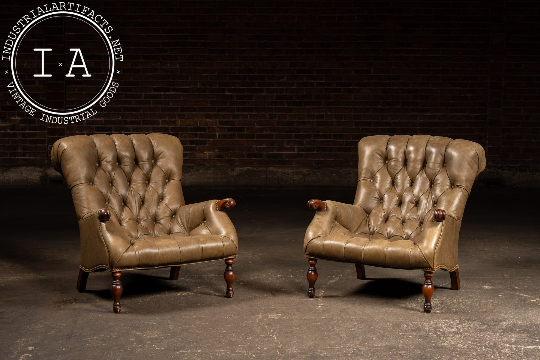 Sleepy Hollow chairs emerged in the early 20th century as an evolution of the club chair, prioritizing a laid-back posture and extended comfort. Popular in American homes and gentleman's clubs between the wars, they were typically produced by regional upholstery shops rather than branded manufacturers, favoring heavy frames, full leather hides, and durable construction meant to soften and patinate over decades of use.