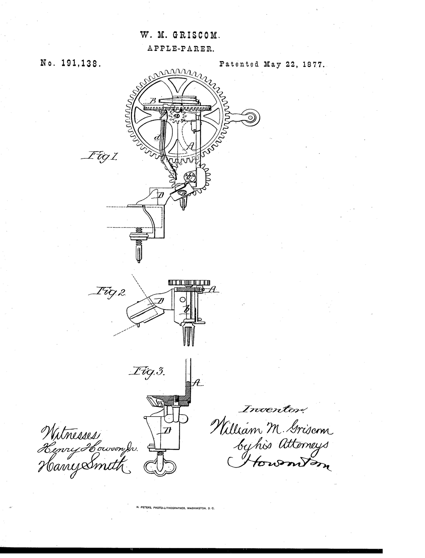 This form corresponds to William M. Griscom's May 22, 1877 patent (No. 191,138), an improvement in apple-paring machines manufactured in Reading, Pennsylvania. Griscom's innovation repositioned the clamping frame for greater stability and cleaner paring discharge away from the gearing, improving both safety and efficiency. The Reading Hardware Company-founded in 1886 and growing from earlier regional ironworks-became one of America's major producers of hardware, tools, and domestic iron goods, distributing nationally during the height of Victorian industrial expansion.