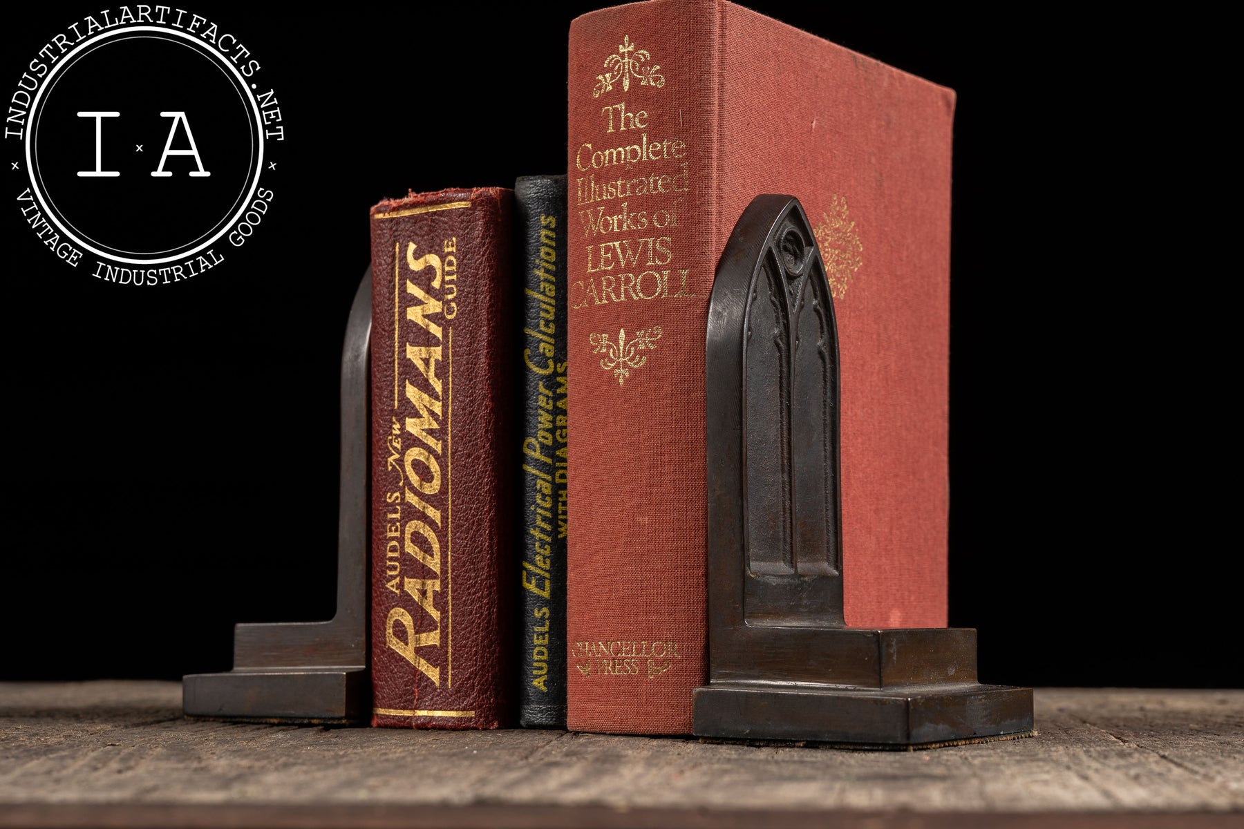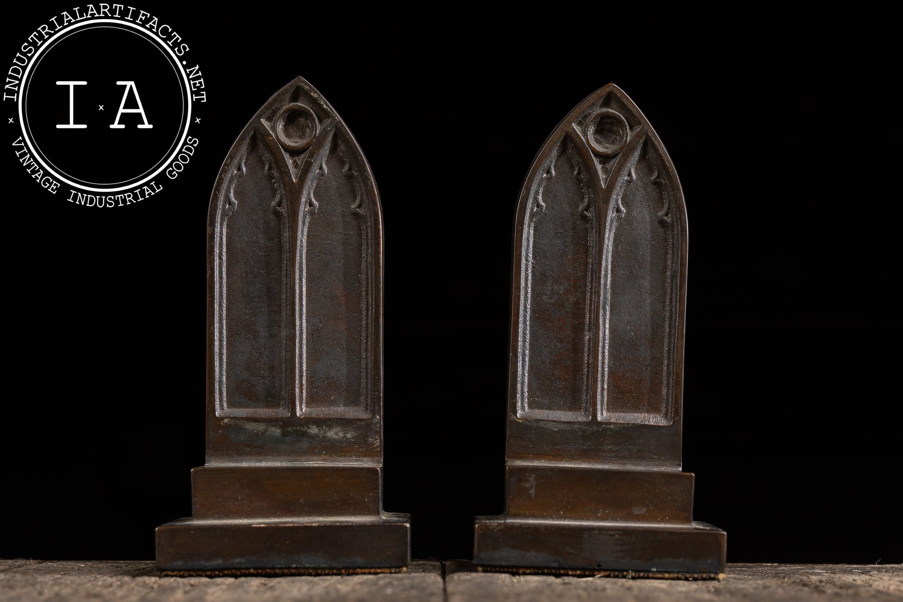 Antique Gothic-Inspired Cathedral Window Bookend Pair