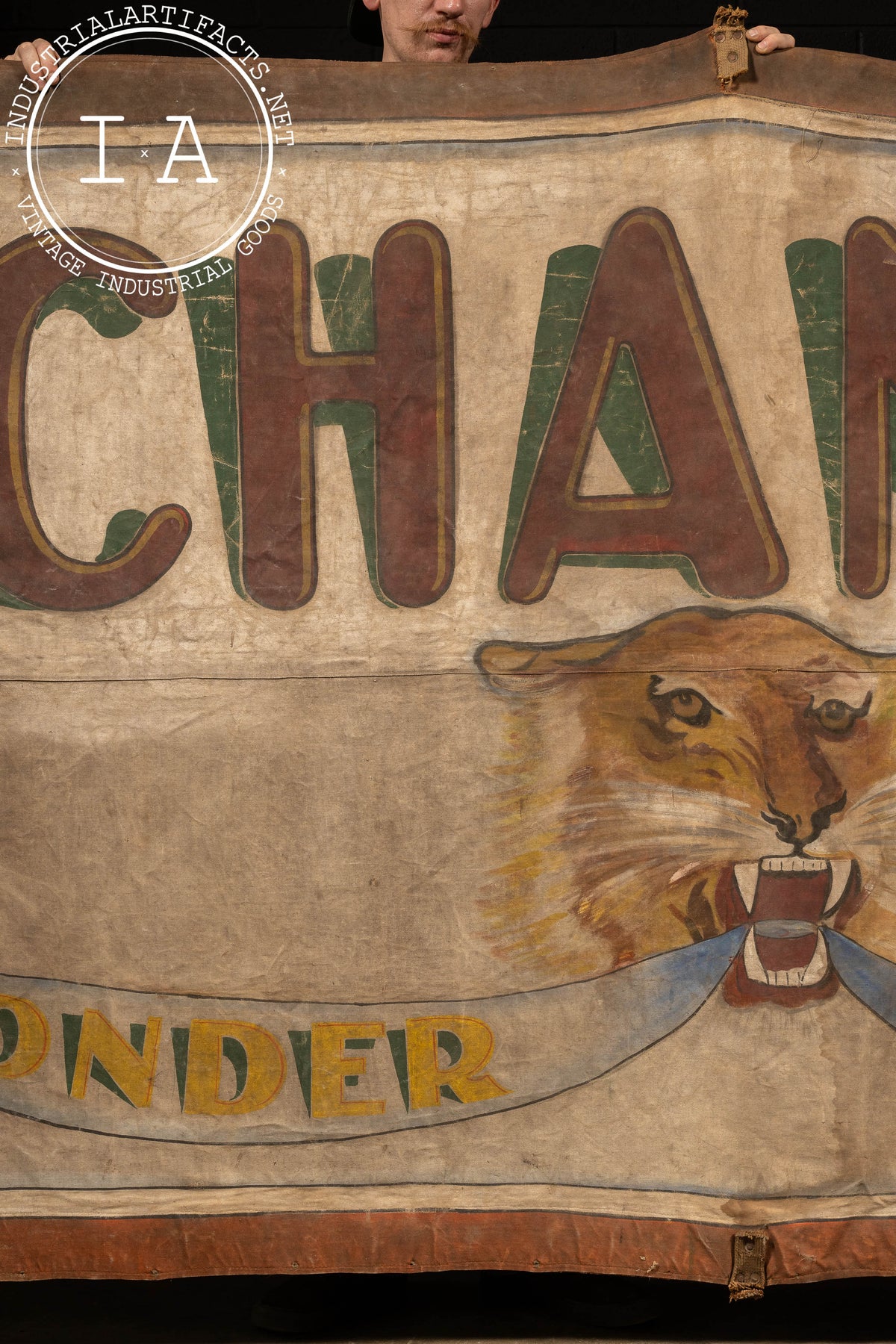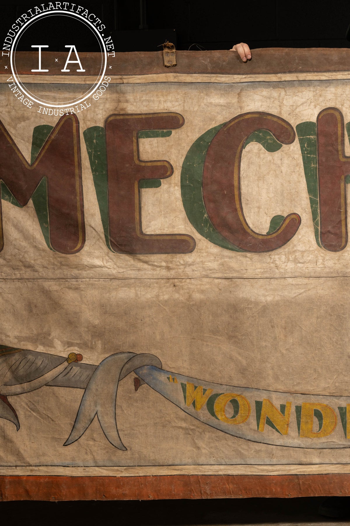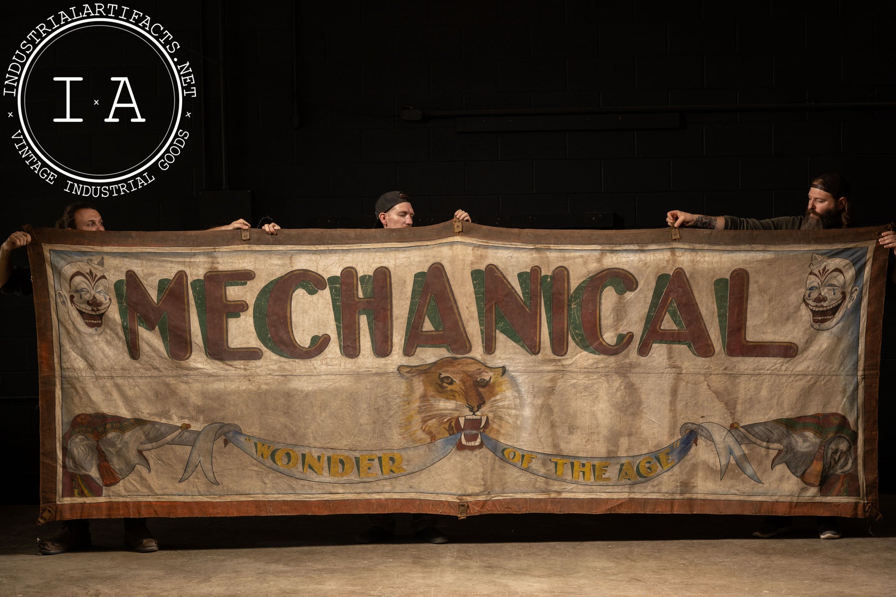 Antique Hand-Painted “Mechanical Wonder of the Age” Circus Banner