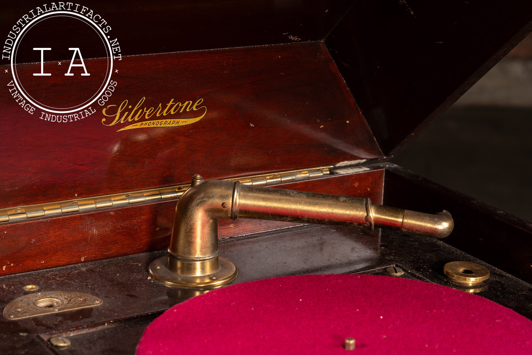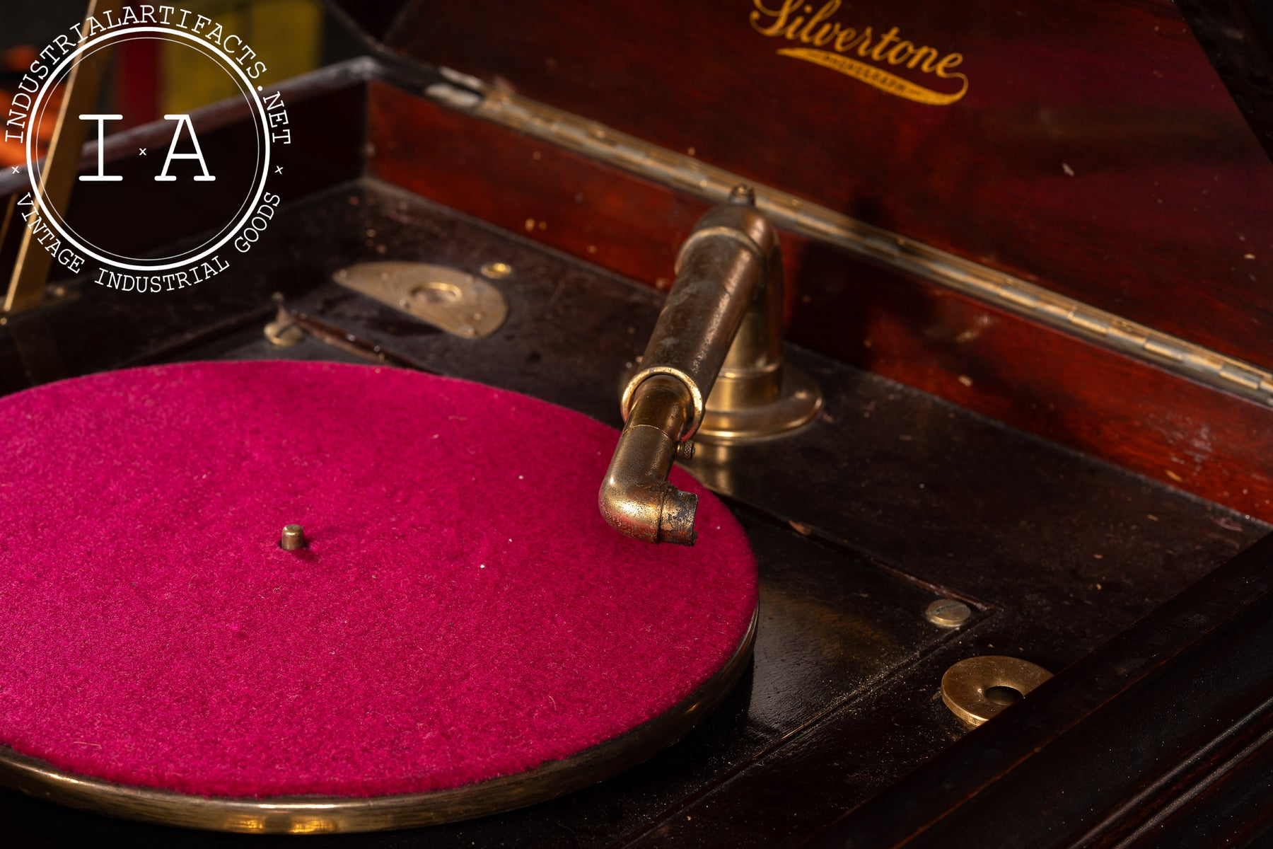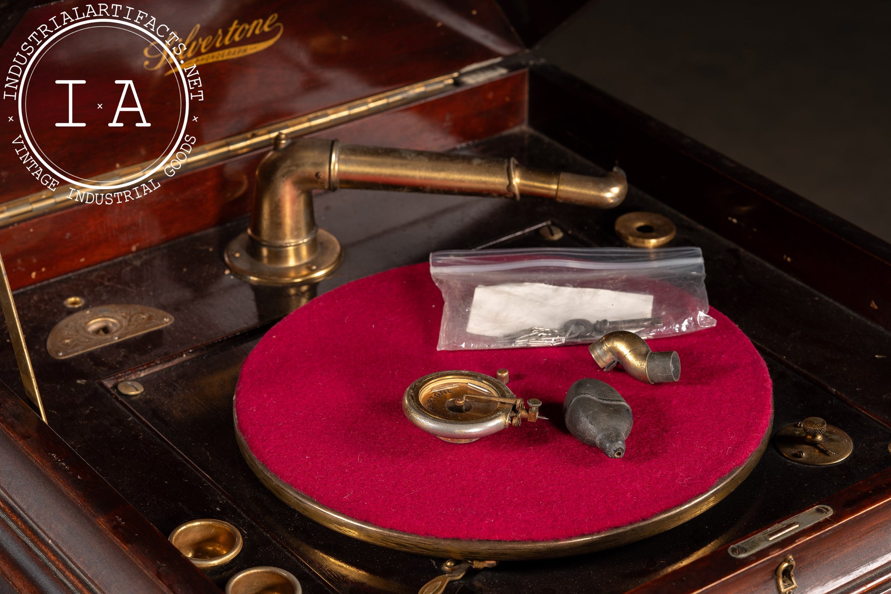 Silvertone was the in-house brand for Sears, Roebuck & Co., offering accessible, high-quality home audio equipment from the early 1900s onward. This model dates from the final years of acoustic phonographs, just before the rise of radio-phonograph combinations in the late 1920s.