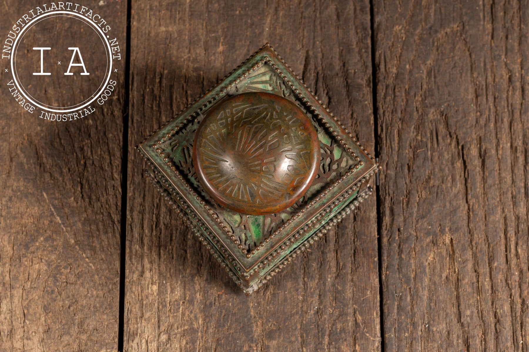Produced by Tiffany Studios, the decorative arts arm of Louis Comfort Tiffany's enterprise, the firm became synonymous with innovative stained glass and finely cast bronze desk objects in the early 20th century.
