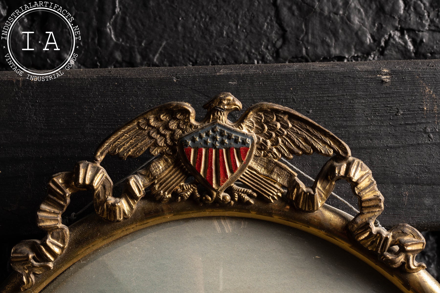 Such portraits were often commissioned during the war and in its immediate aftermath as memorial or honorific keepsakes. The gilt frame and eagle crest distinguish this example as a more formal presentation piece compared to simpler wood or gesso frames of the period. This item is over 100 years old. Please refer to photos for condition and details.