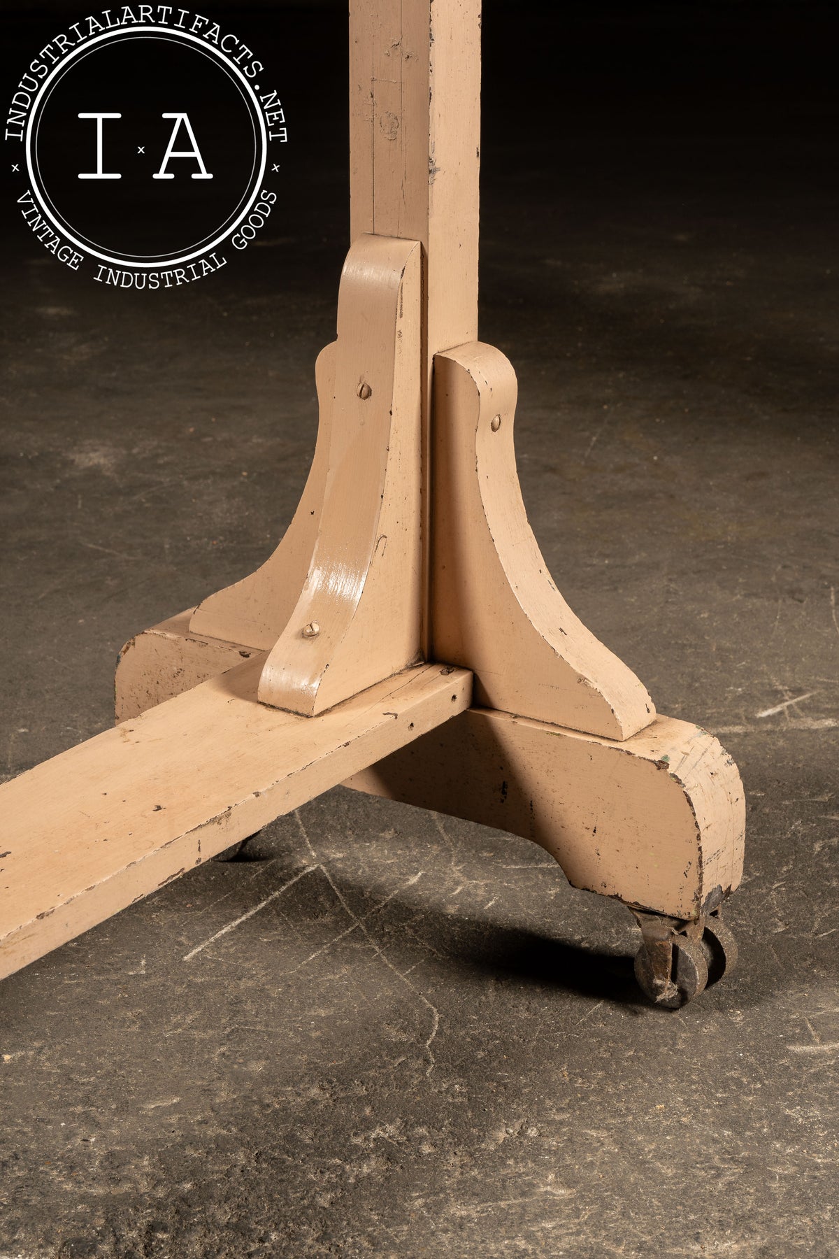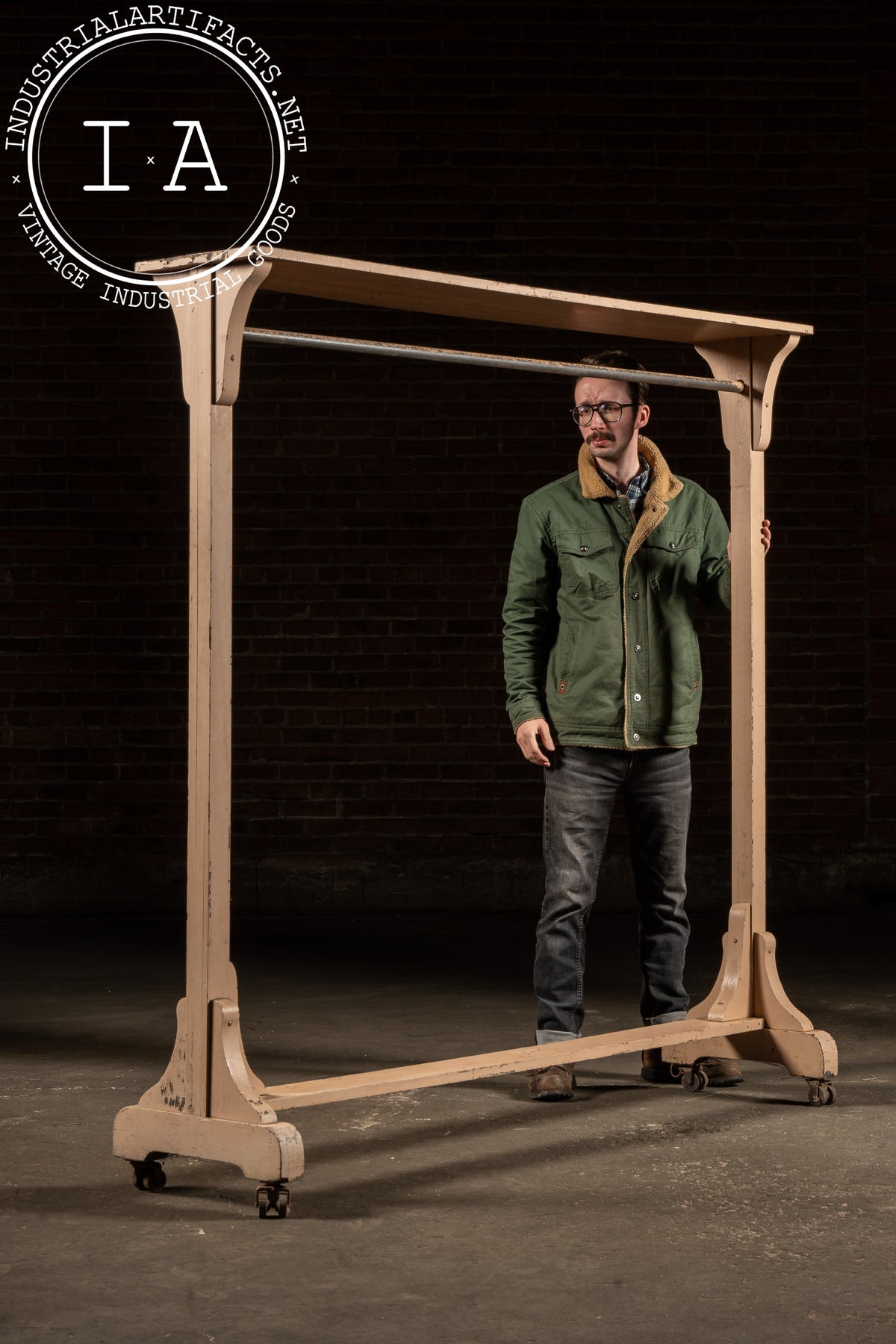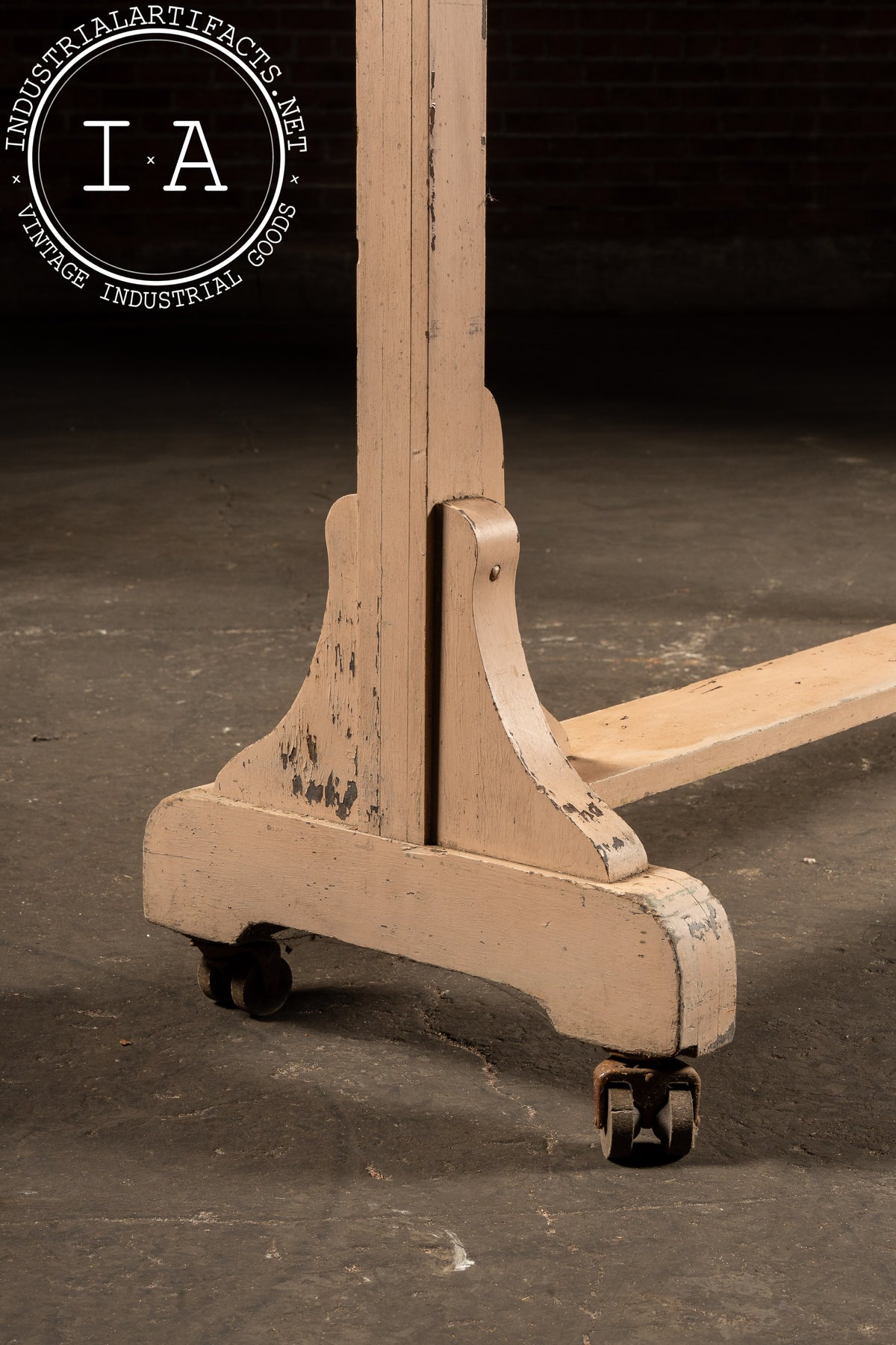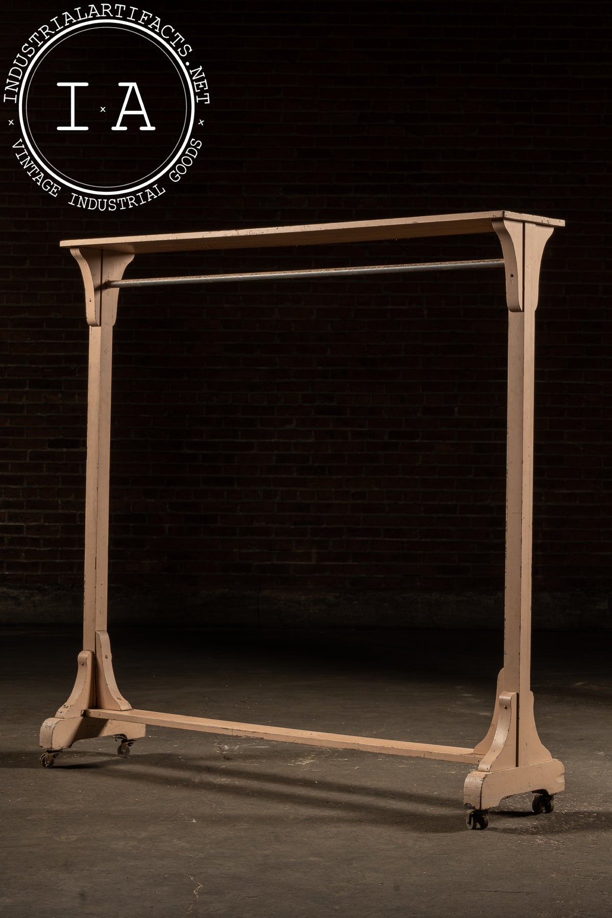 Early Industrial Rolling Wooden Garment Rack in Beige