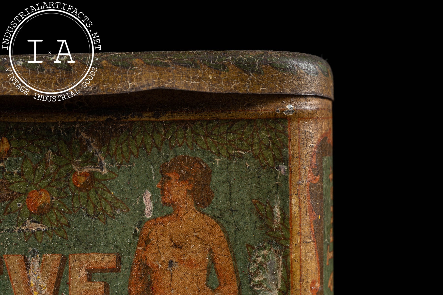It's not difficult to see why this was a popular item in the early part of the 20th century. This Eve Cube Cut tobacco tin has seen it's share of manhandling, but still maintains much of its color and graphics. The Globe Tobacco Company operated in Detroit for nearly 40 years, from approximately 1871 to 1925, when it went out of business.
