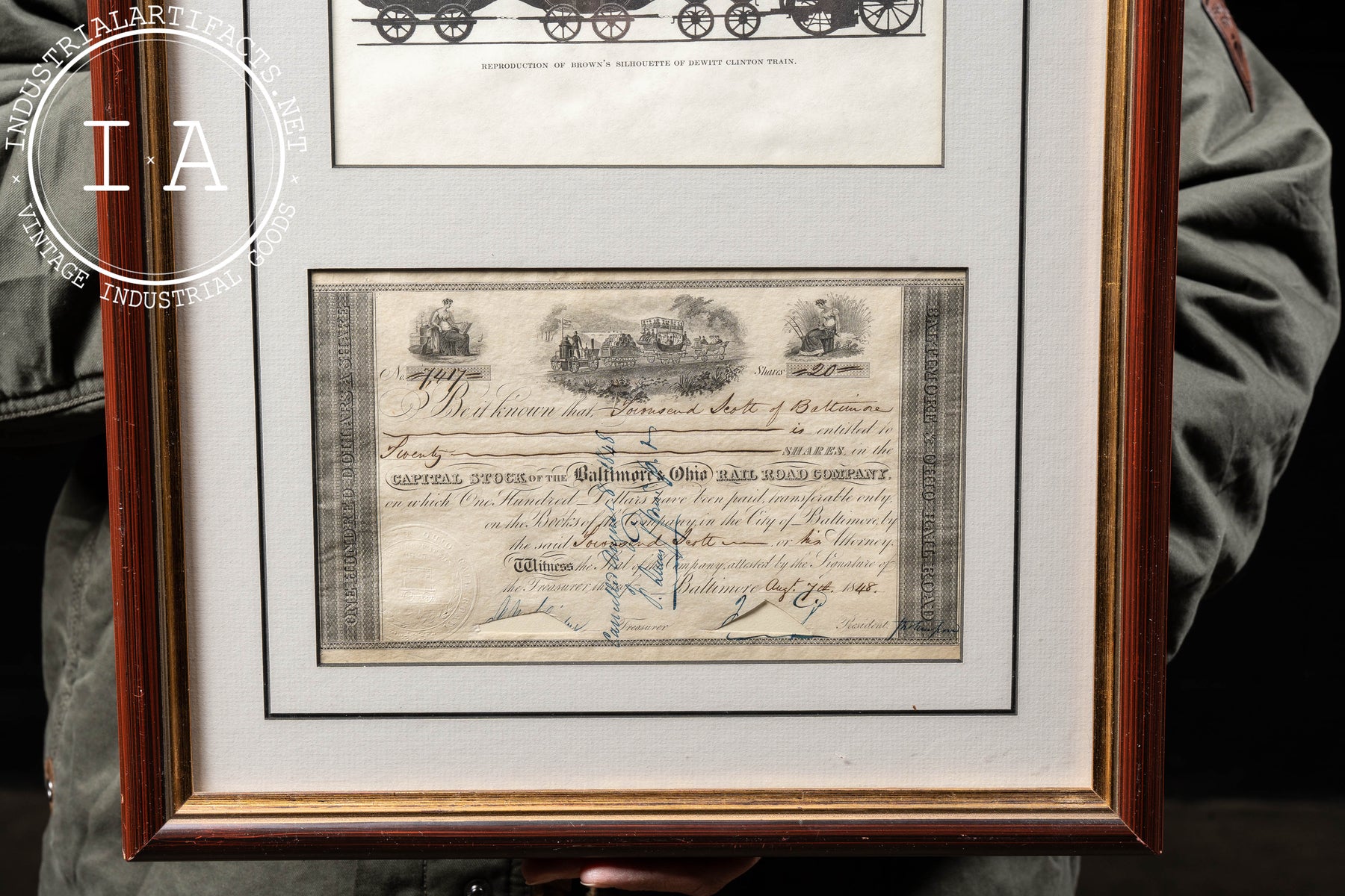 Framed Capital Stock of the Baltimore Ohio Railroad Company