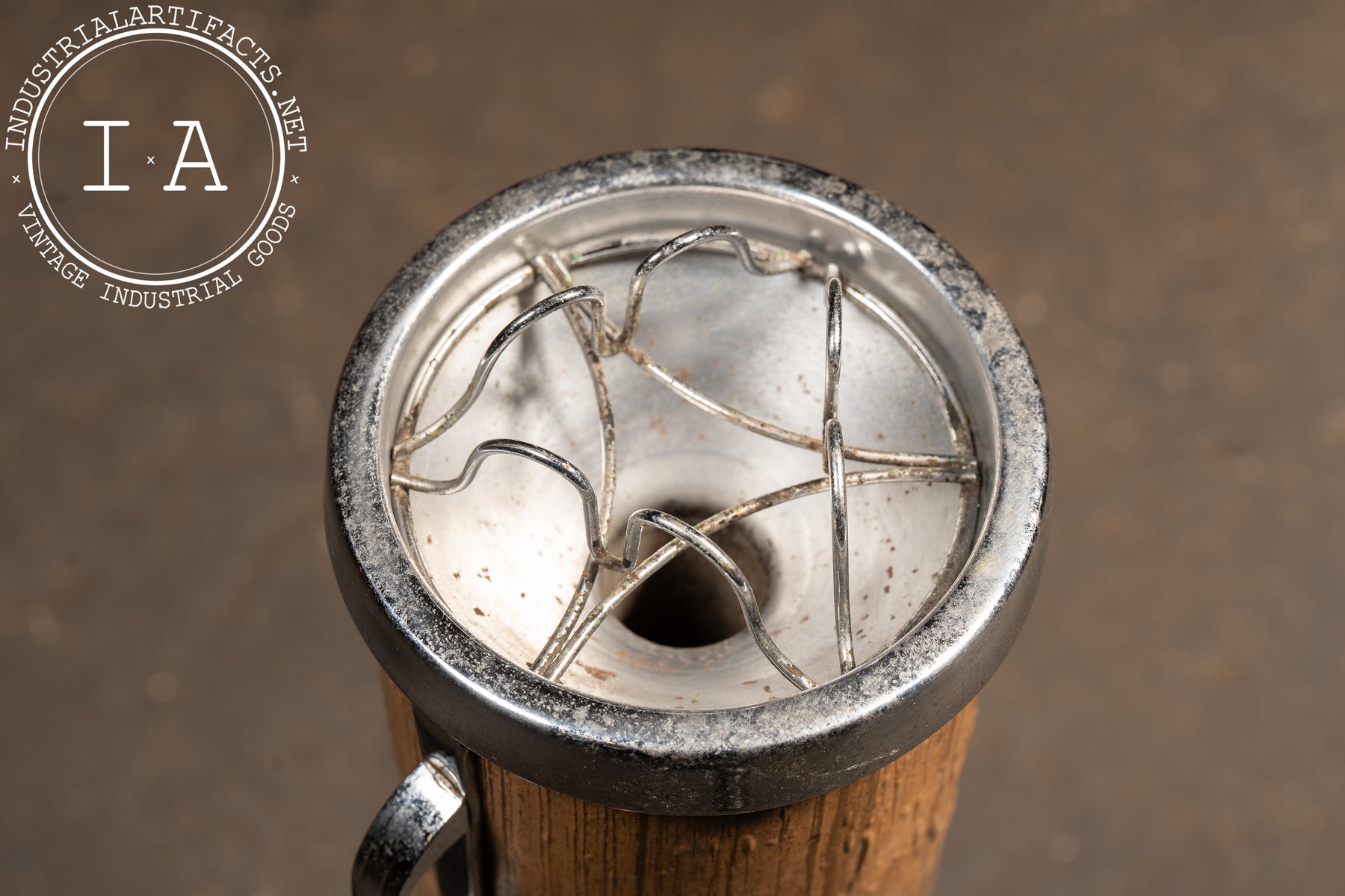 Mid-Century Chrome & Woodgrain Floor Ashtray