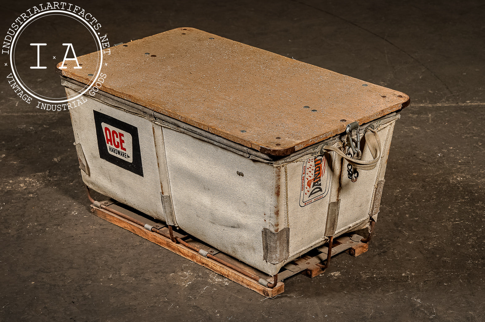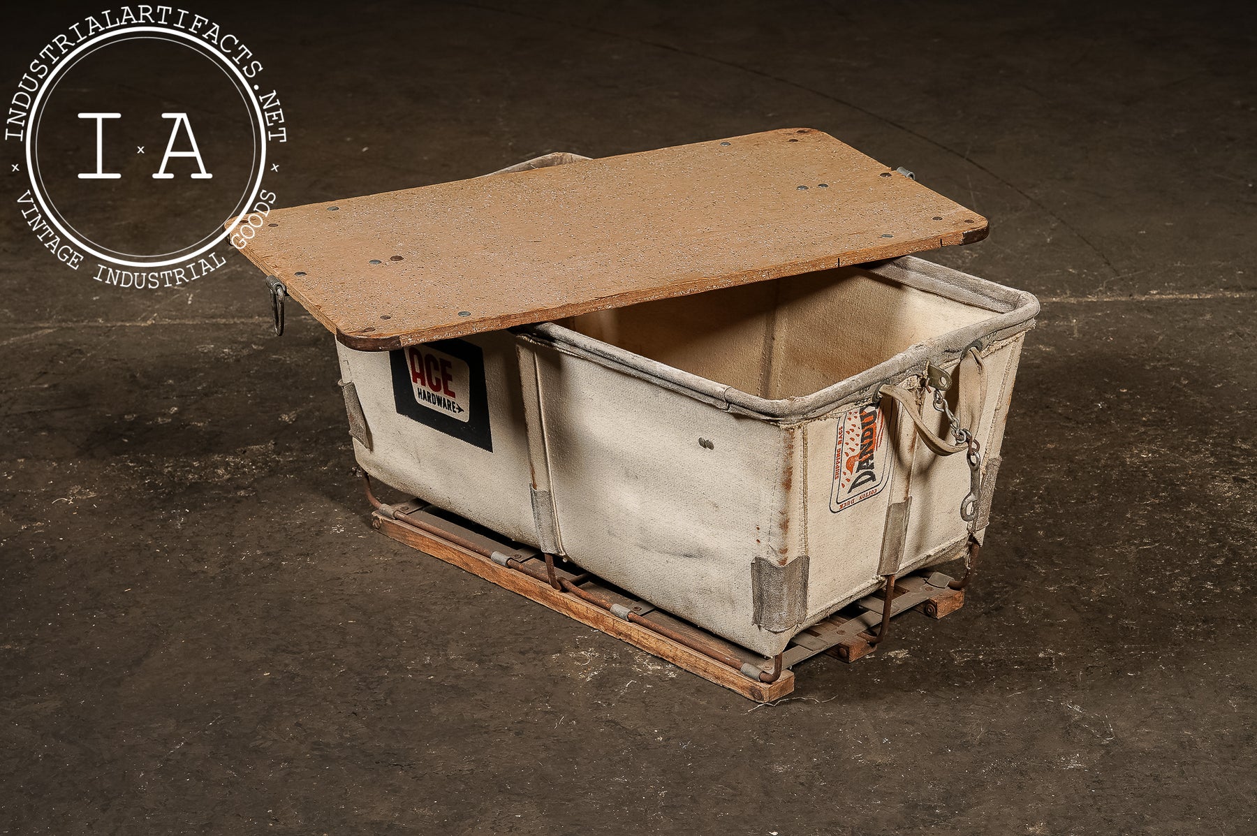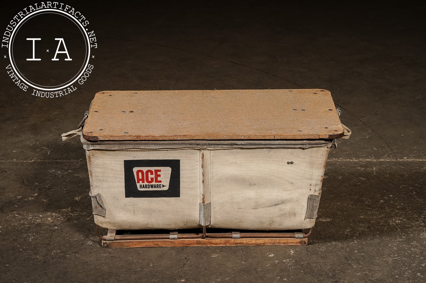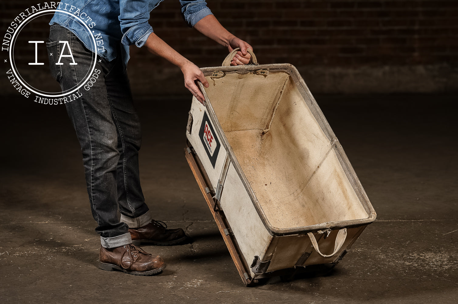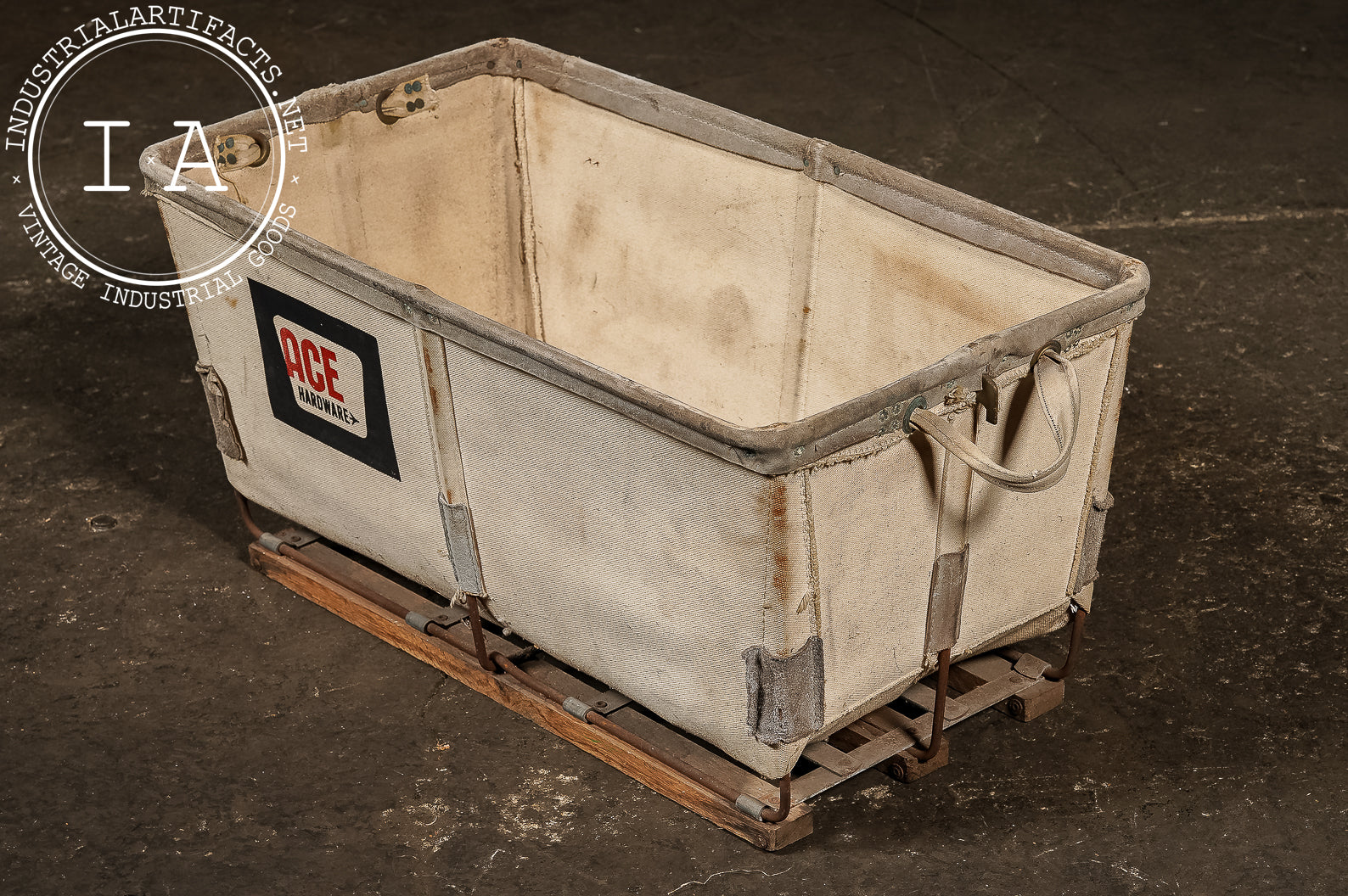 Heavy-duty canvas utility bin produced by Dandux, customized for ACE Hardware with a bold applied logo panel. Dandux-one of the long-standing divisions of American Laundry Machinery Co.-was known for manufacturing rugged canvas trucks, hampers, and industrial baskets for factories, warehouses, and service industries throughout the mid-century period.