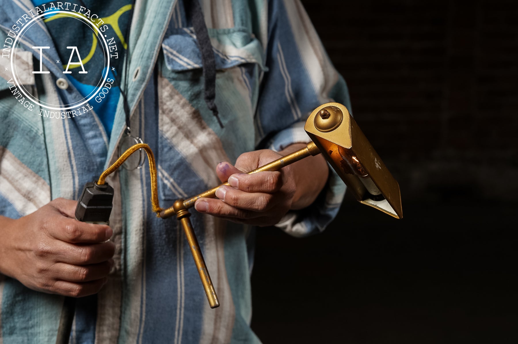 Shows surface wear consistent with age, including scattered finish wear and patination to the brass; tested and in working condition.