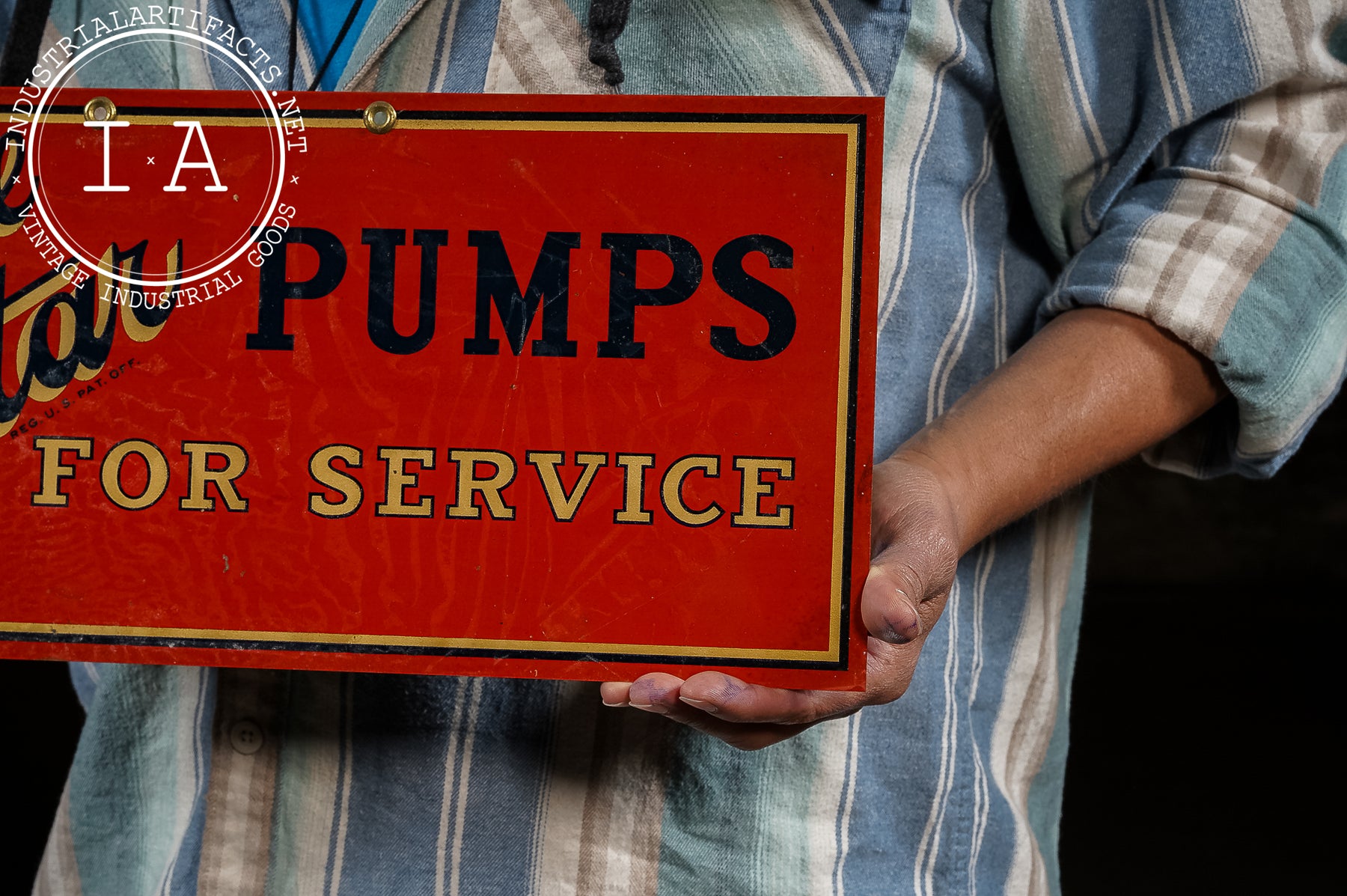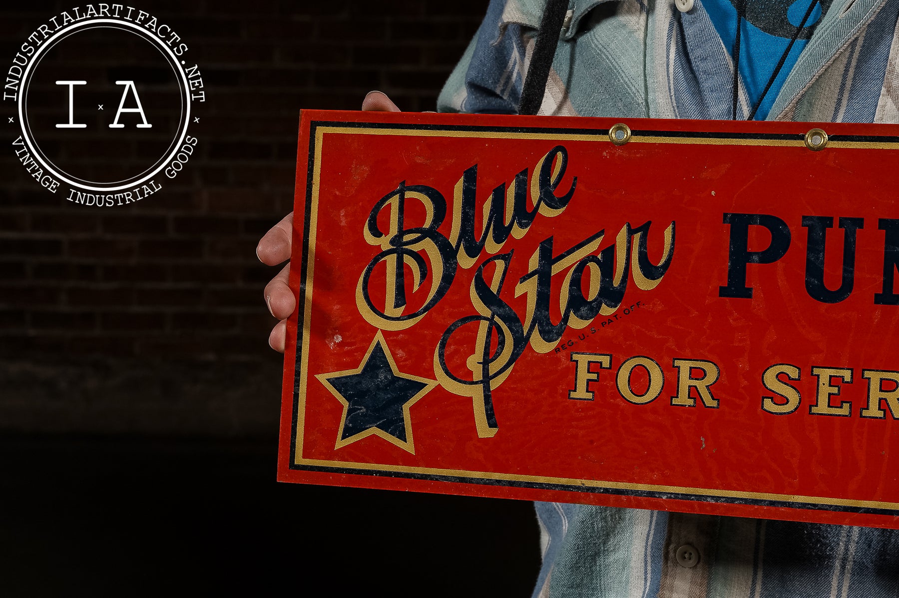 Vintage NOS Blue Star Pumps Painted Tin Advertising Sign