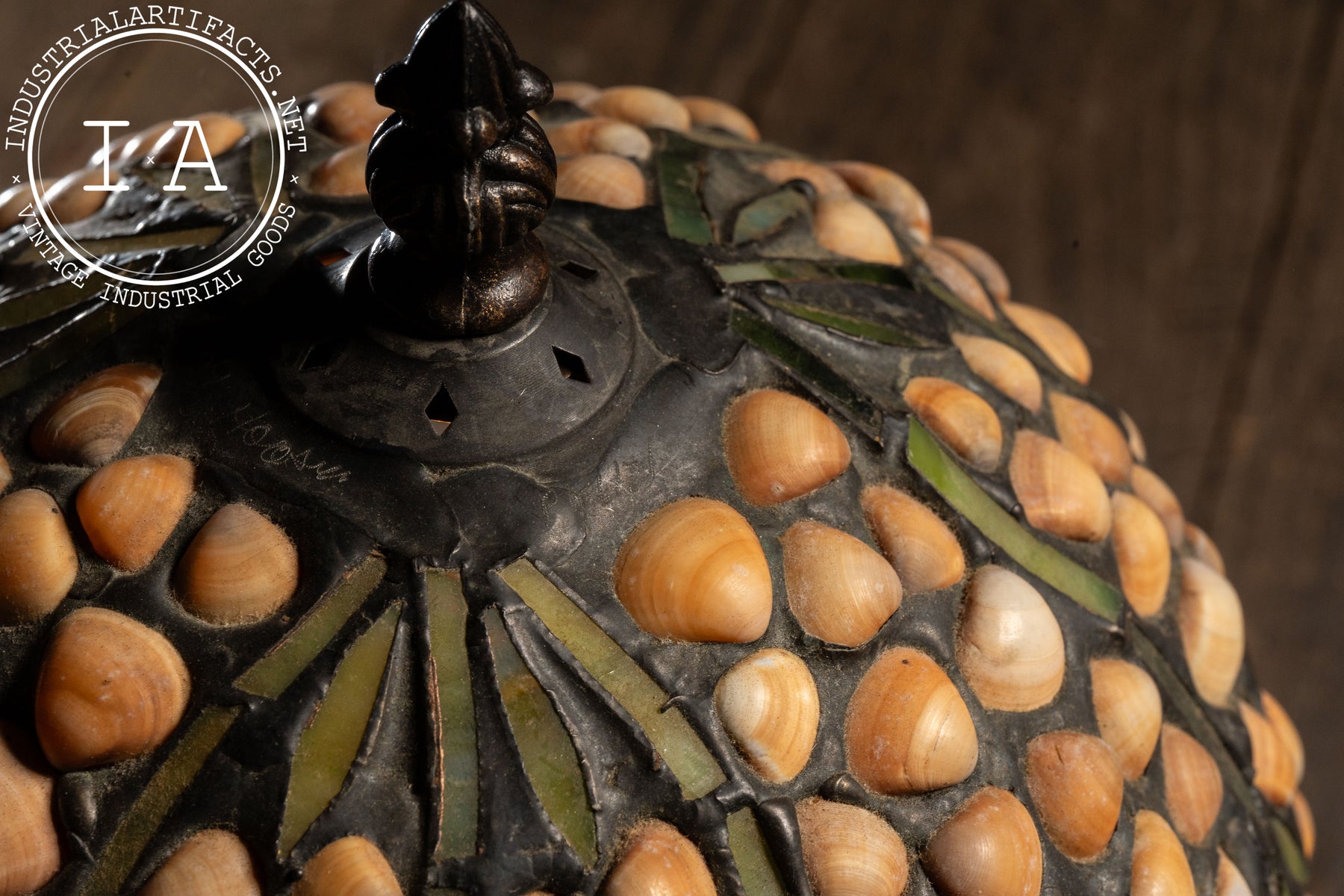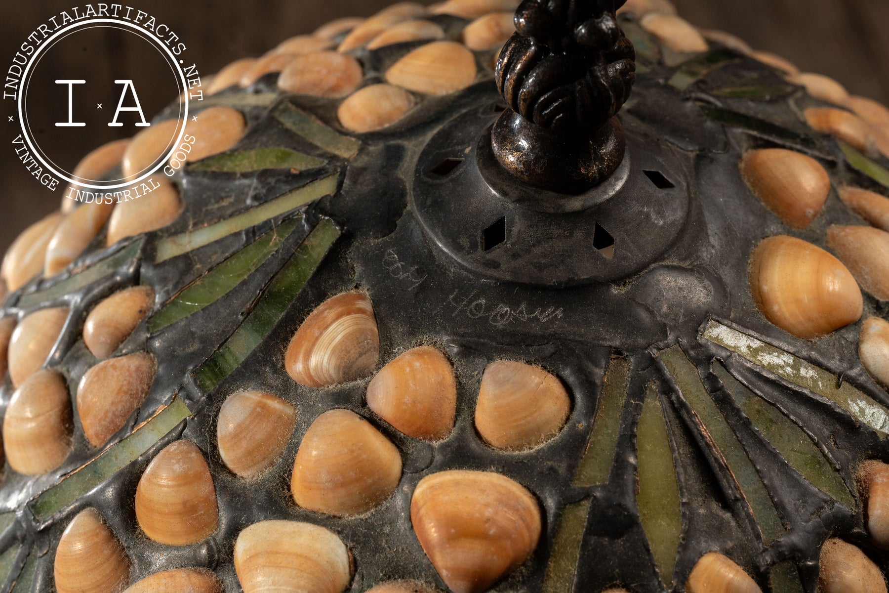 This lamp measures 9"Diam x 13"H. Hoosin's signature can be found on the top of the shade.