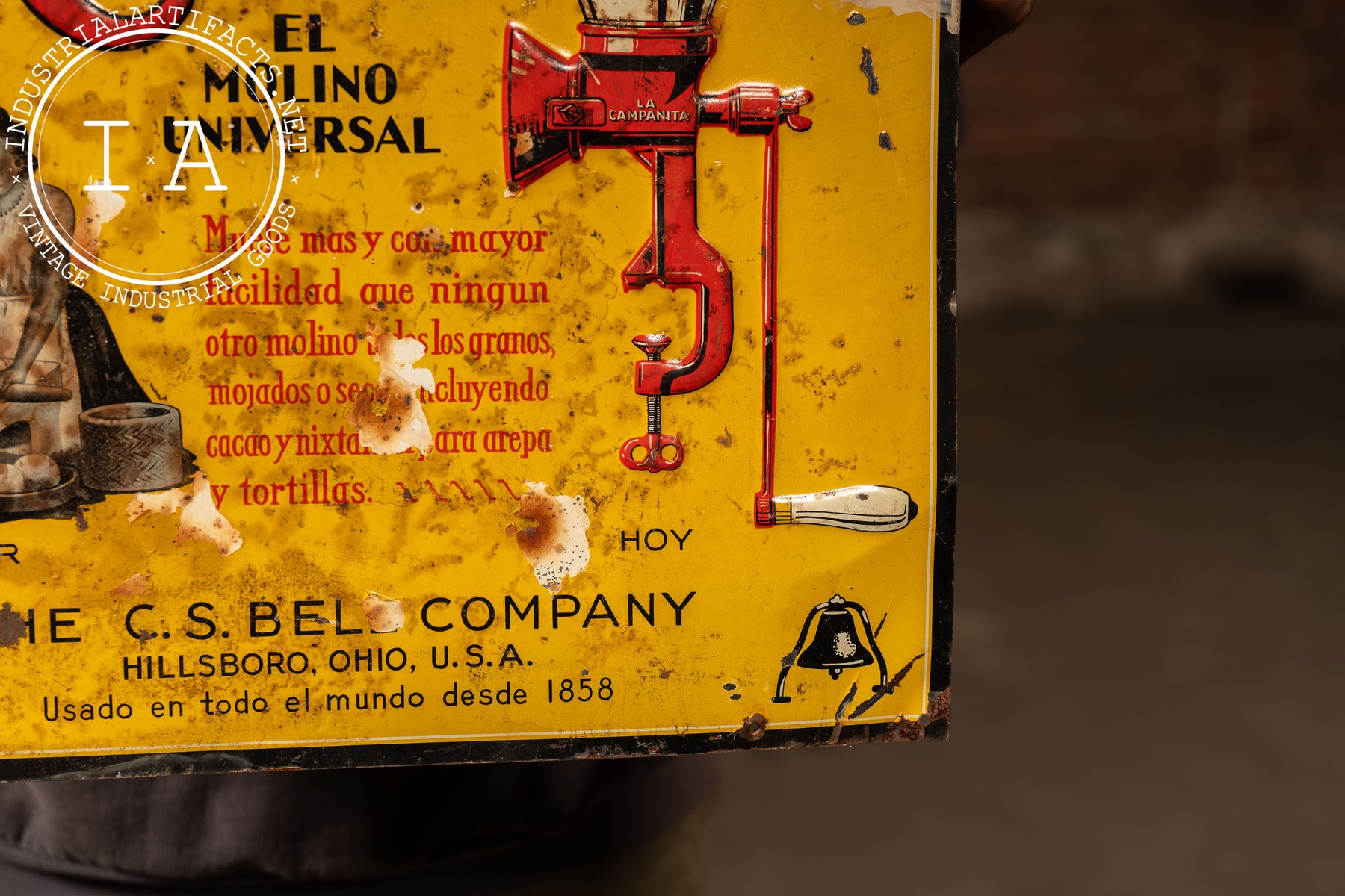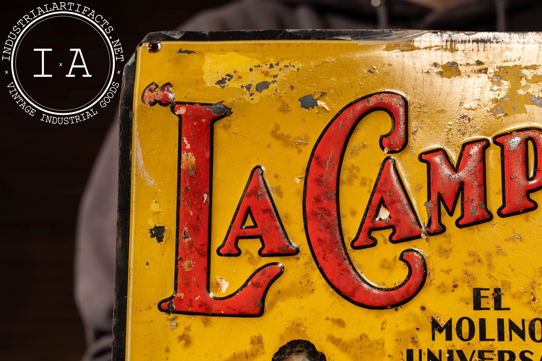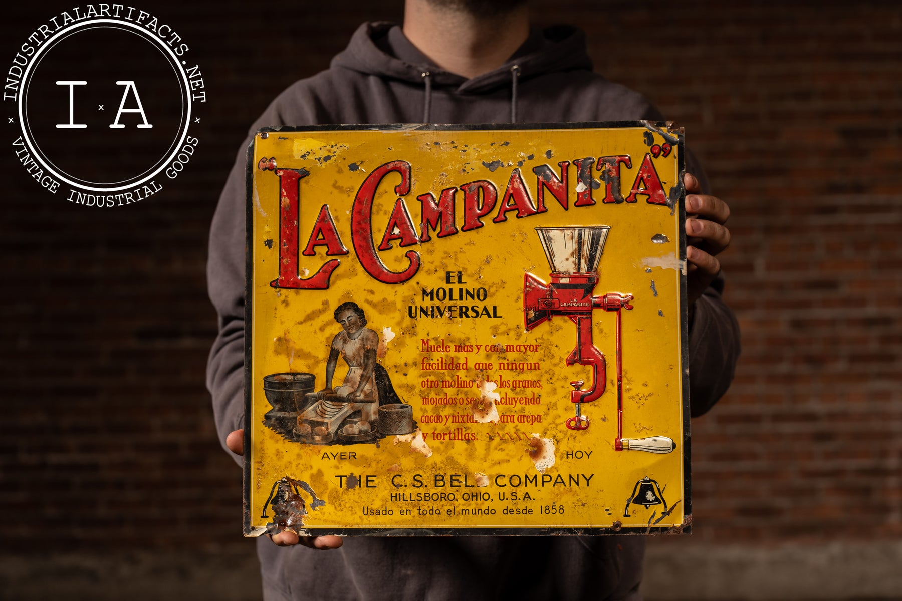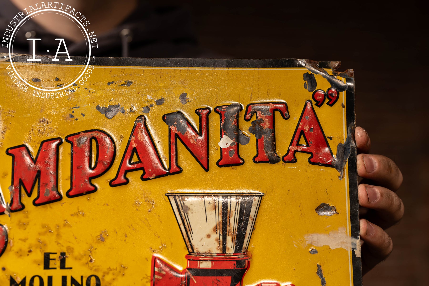 Vintage Spanish "La Campanita" Grain Mill Embossed Tin Advertising Sign