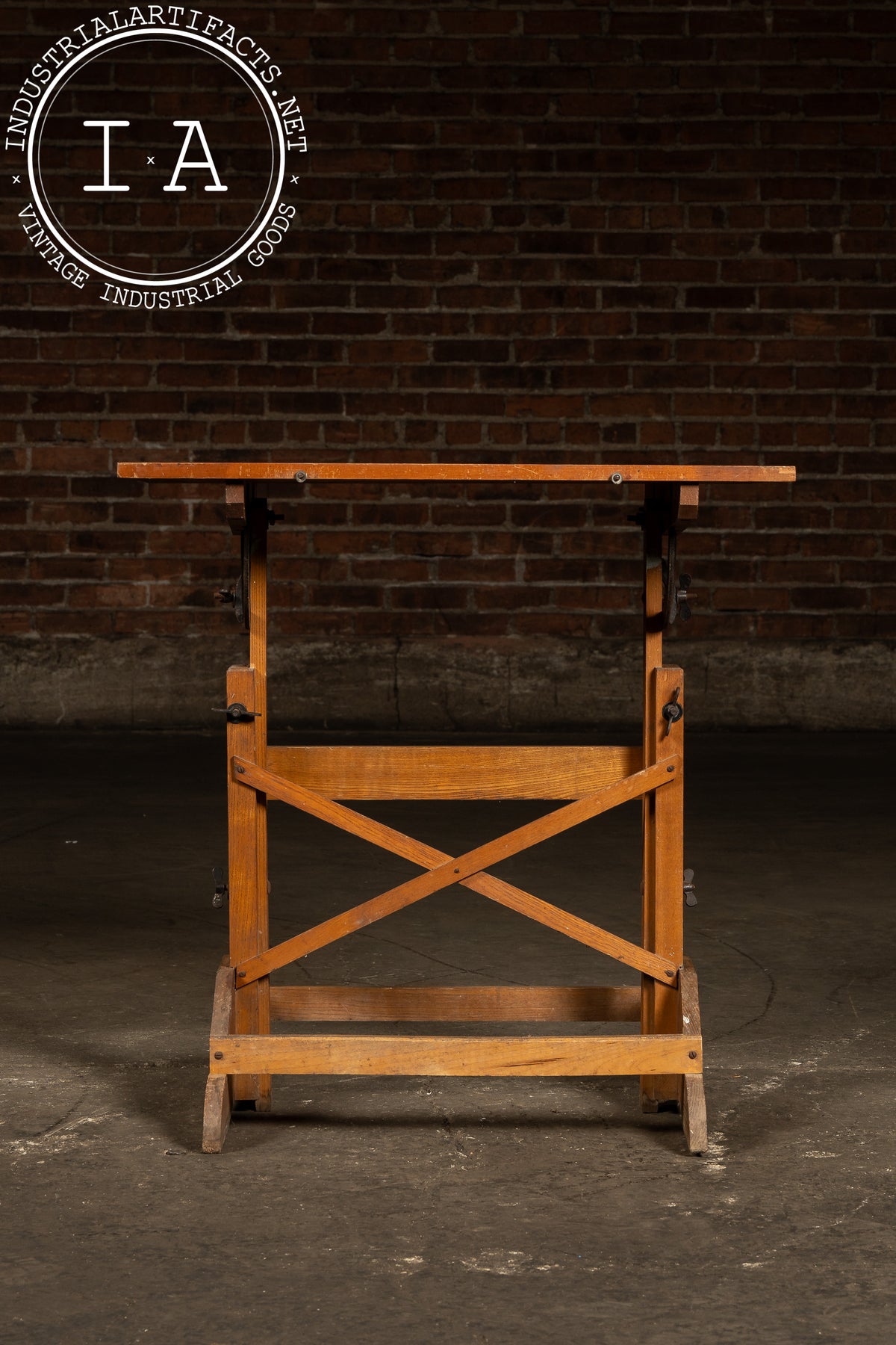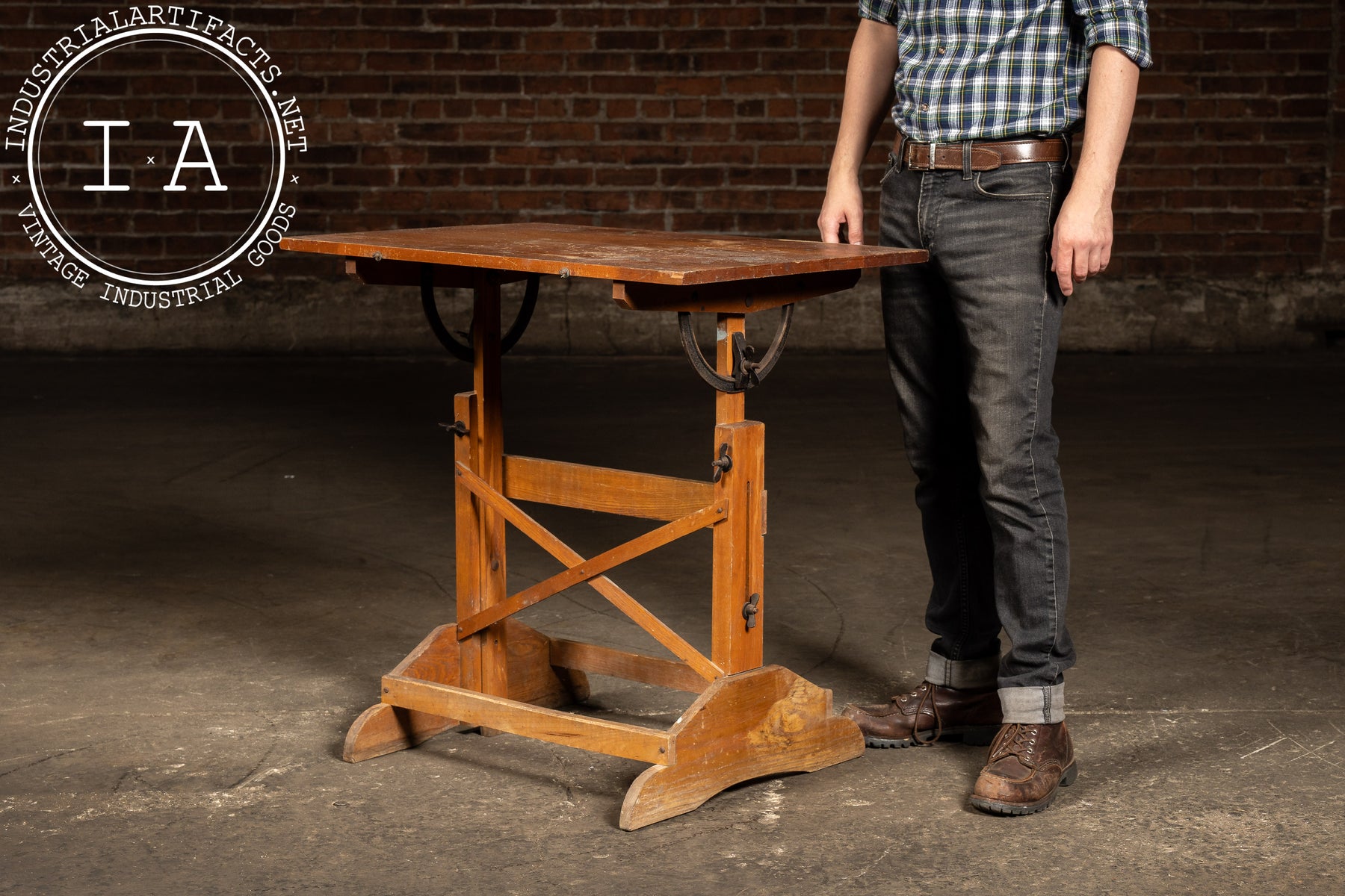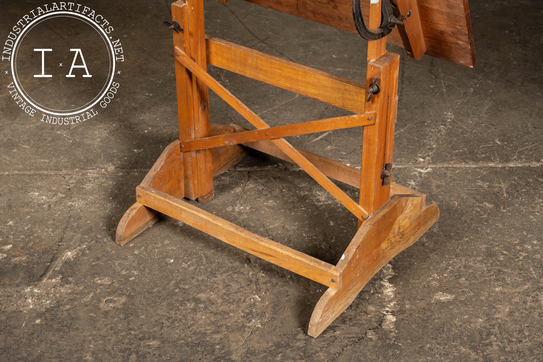 Compact drafting table with a tilting work surface, adjustable height, and cross-braced base construction. The iron gear hardware allows smooth positioning, while the lightweight frame makes it suitable for studio, classroom, or portable use. Originally produced by Anco Bilt-an American manufacturer well-regarded for sturdy and affordable drafting equipment-this piece represents an era when architectural tools were built for both longevity and mobility.