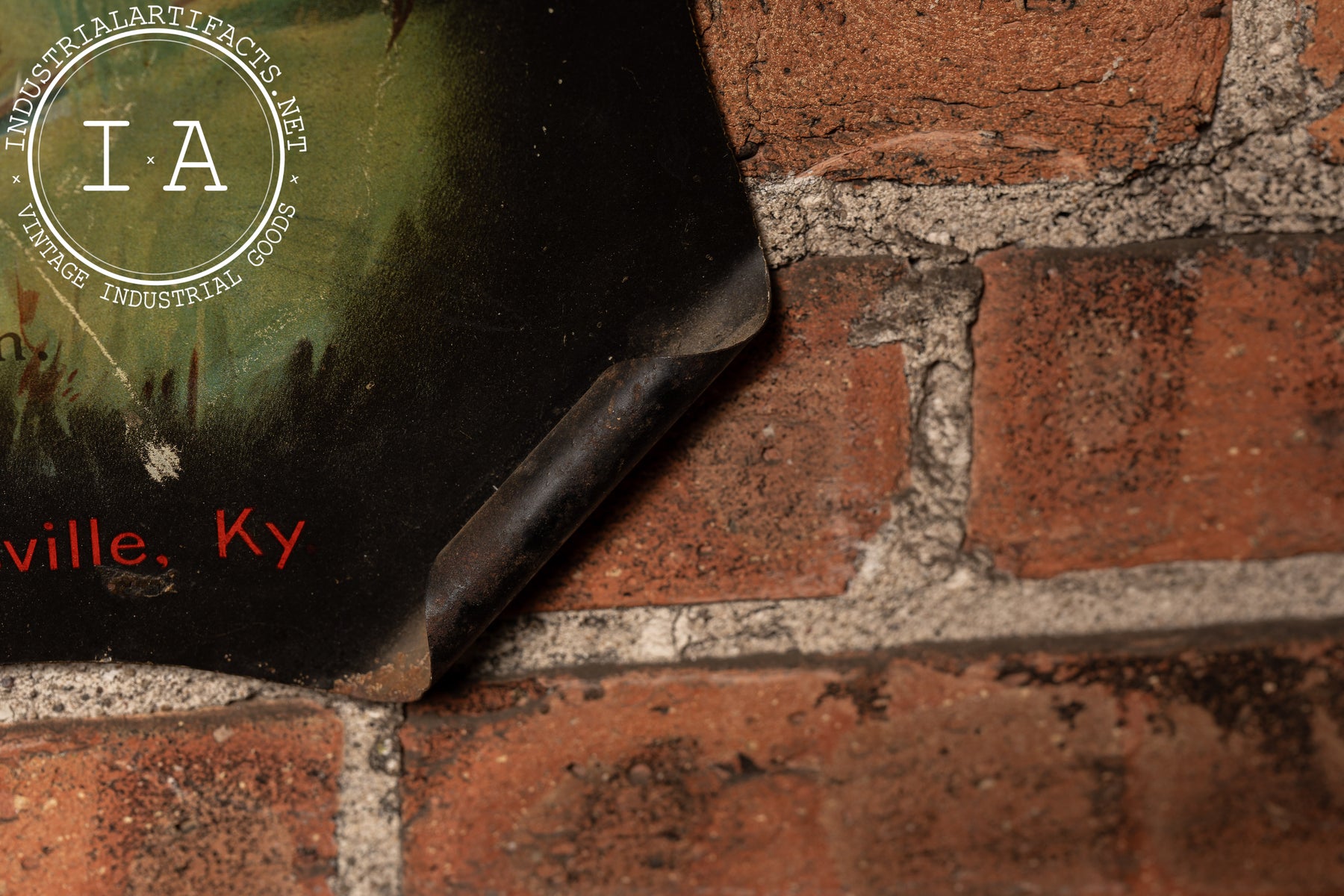 Produced by The Meek Company of Coshocton, Ohio-one of the earliest and most renowned lithographers of tin advertising signs in America, celebrated for their richly detailed imagery and distinctive contoured metal formats.