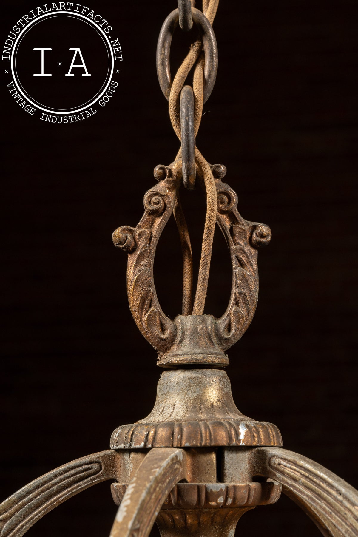 Antique Gothic Revival Five-Socket Cast Iron Ceiling Fixture