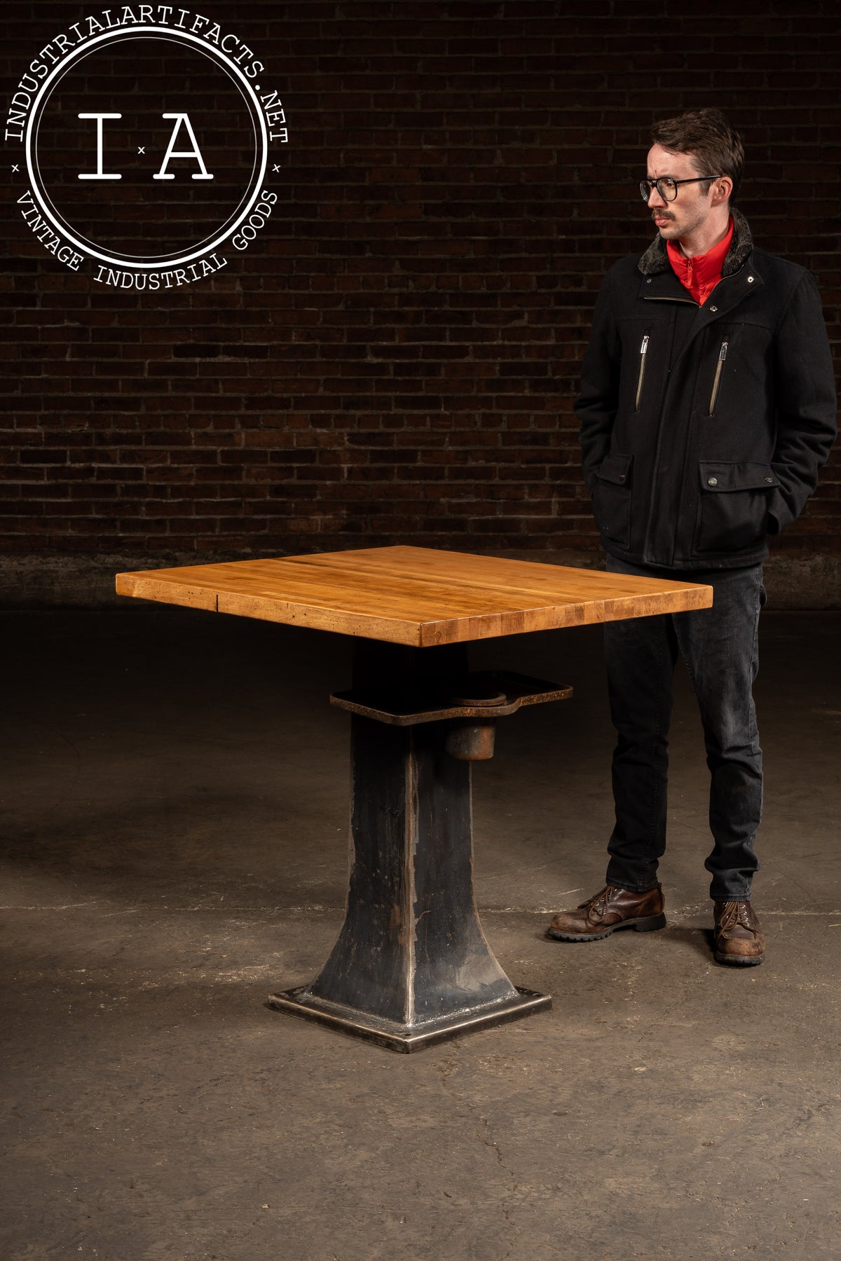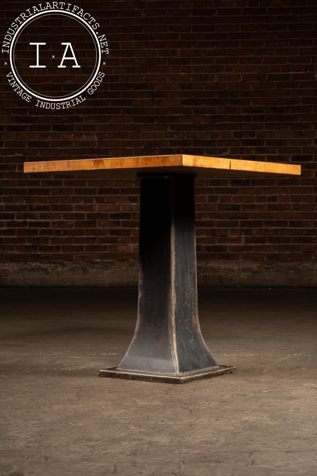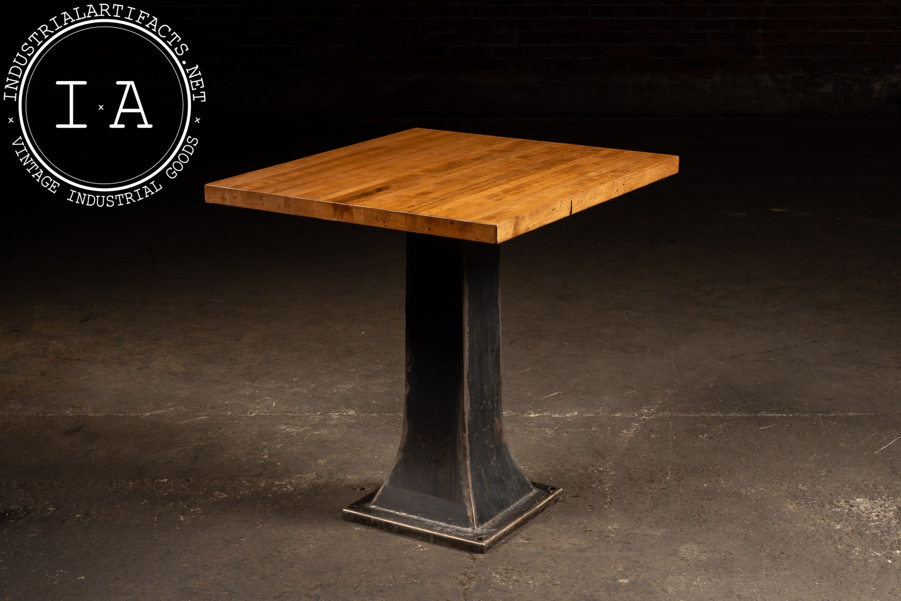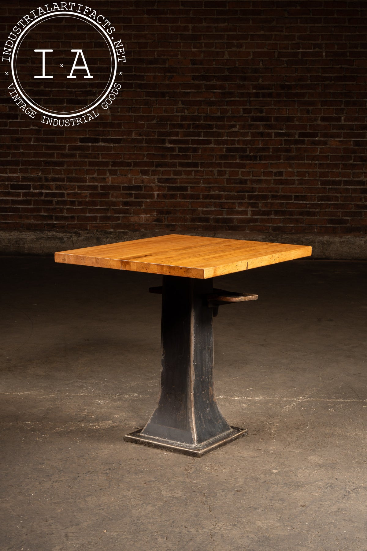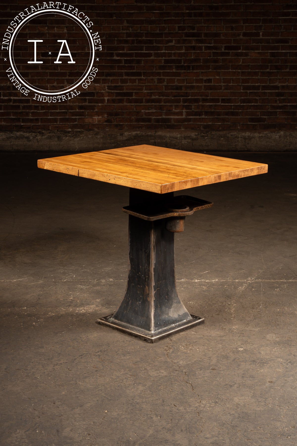 Industrial Maple-Top Pub Table on Cast-Iron Pedestal