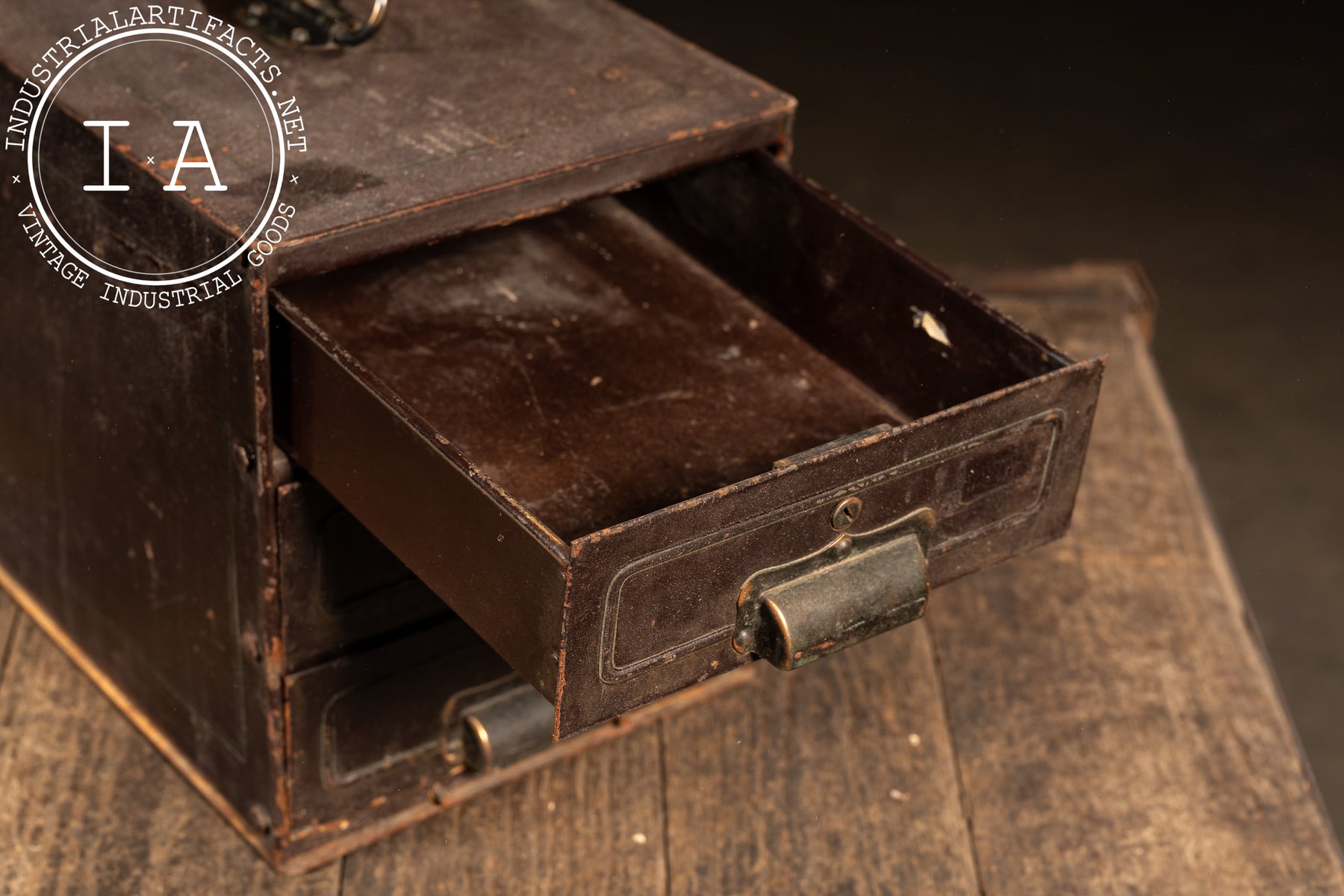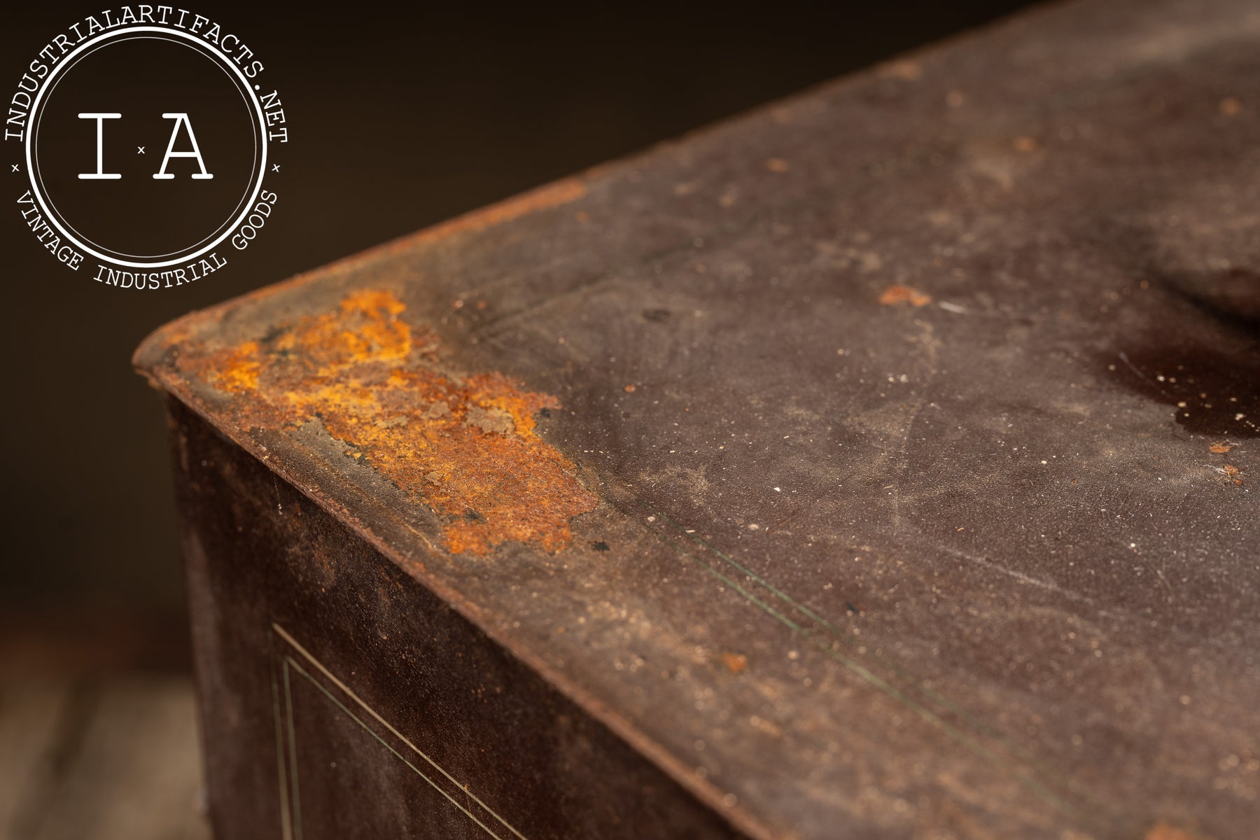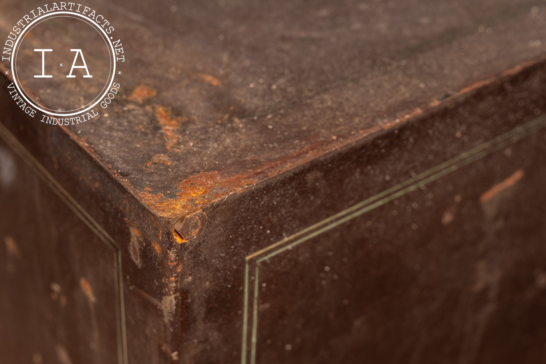 Antique 3-Drawer Heavy Riveted Steel Strongbox with Japanned Handles