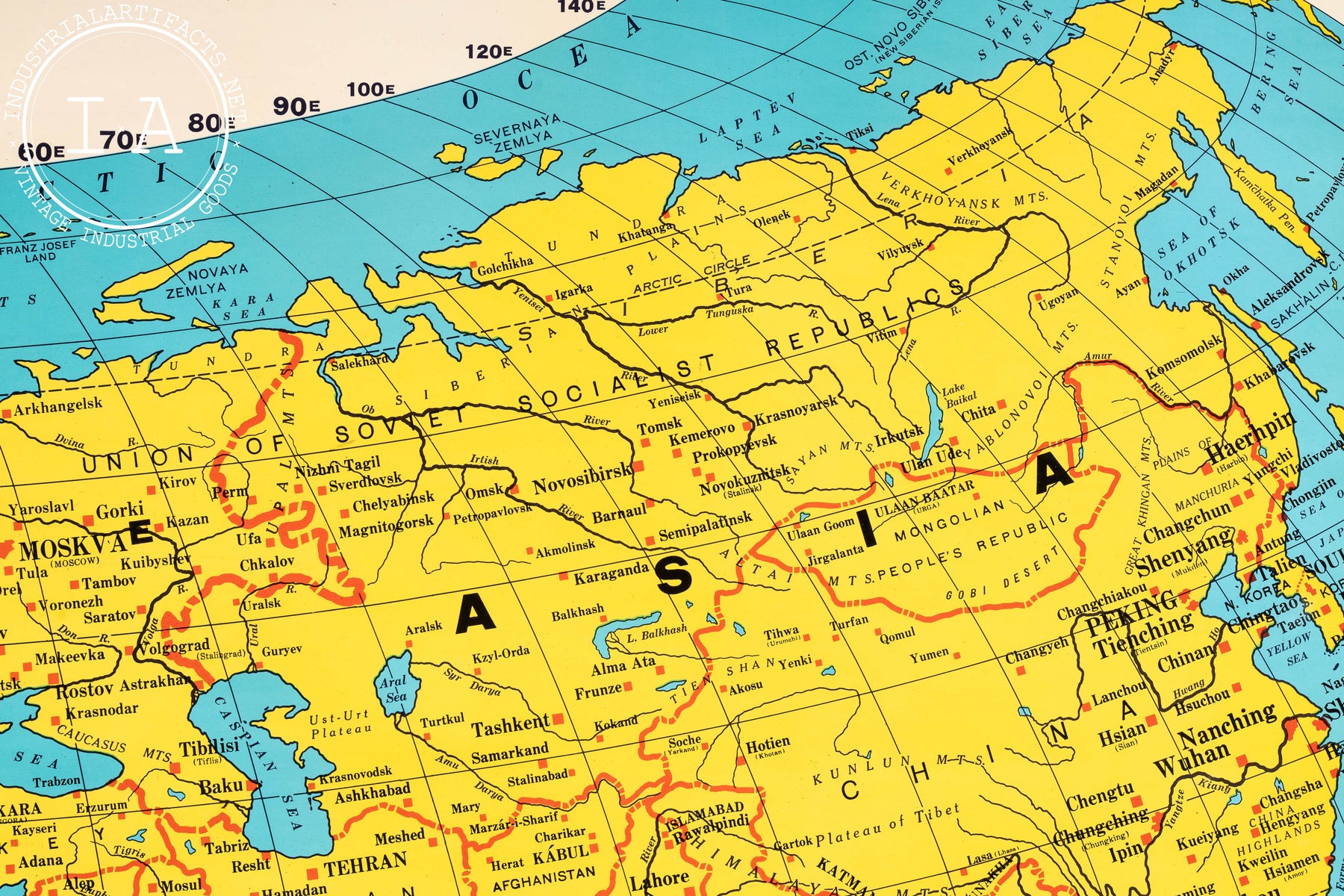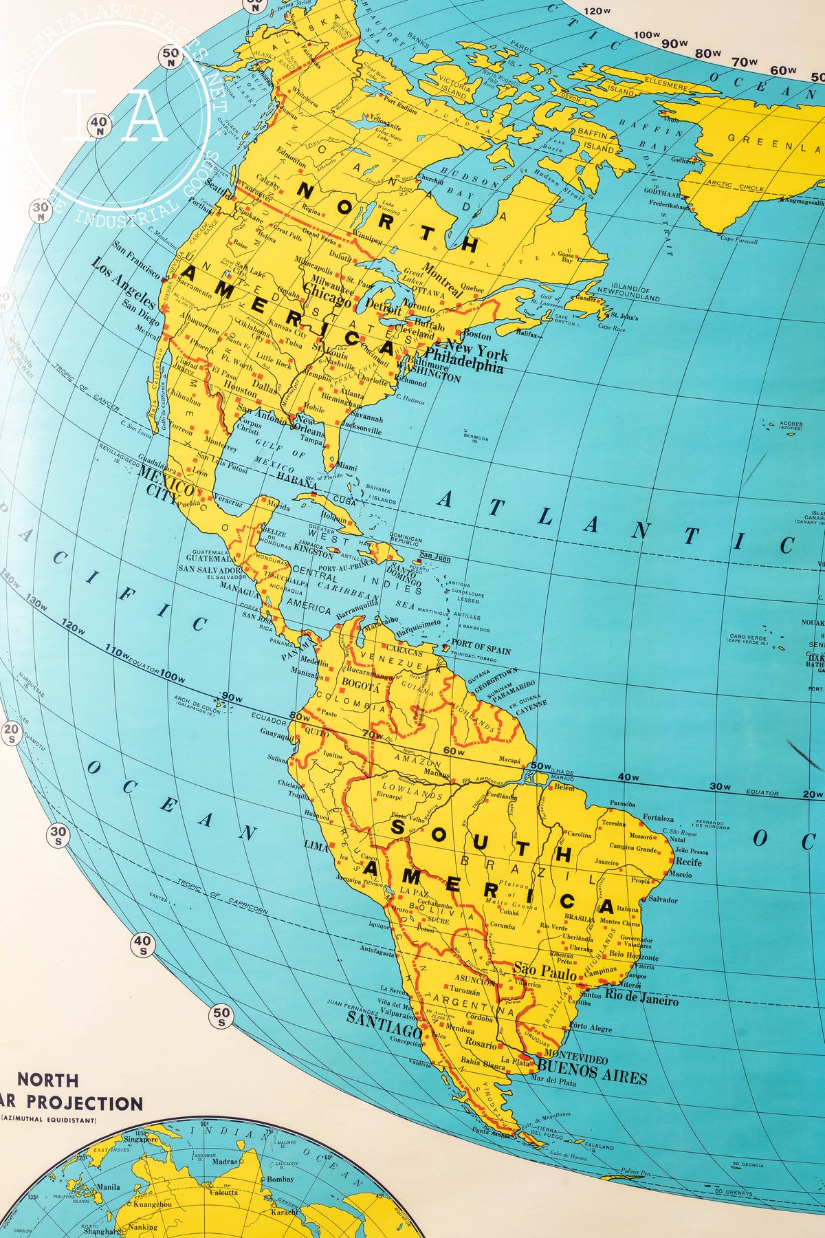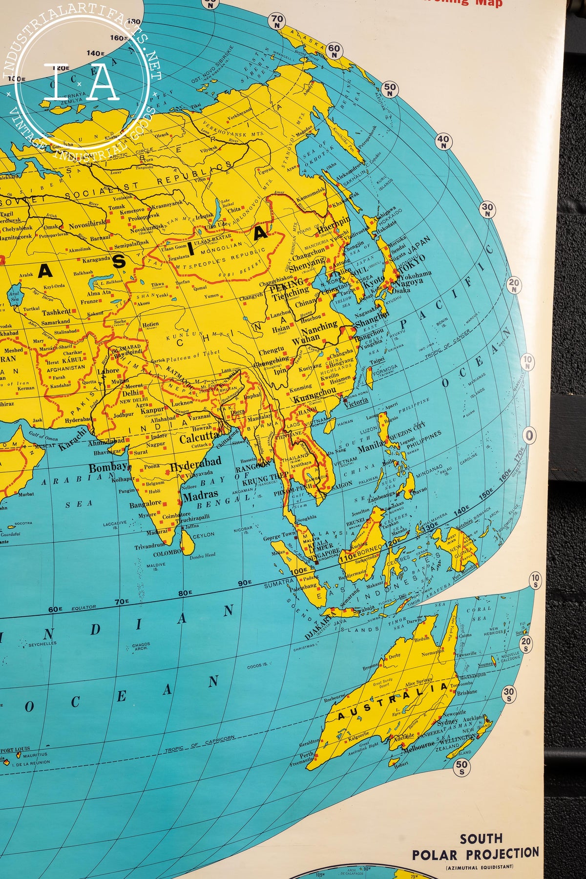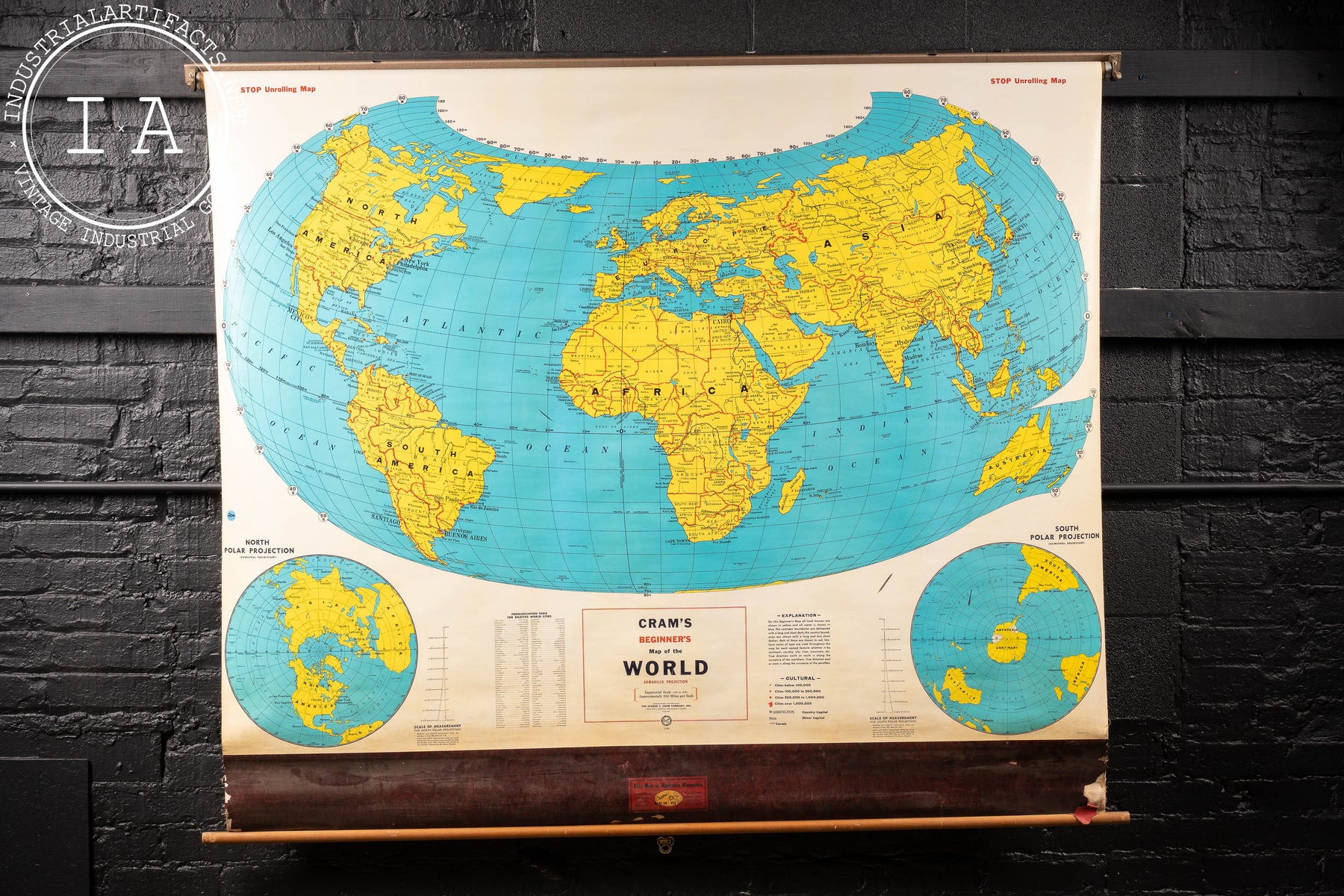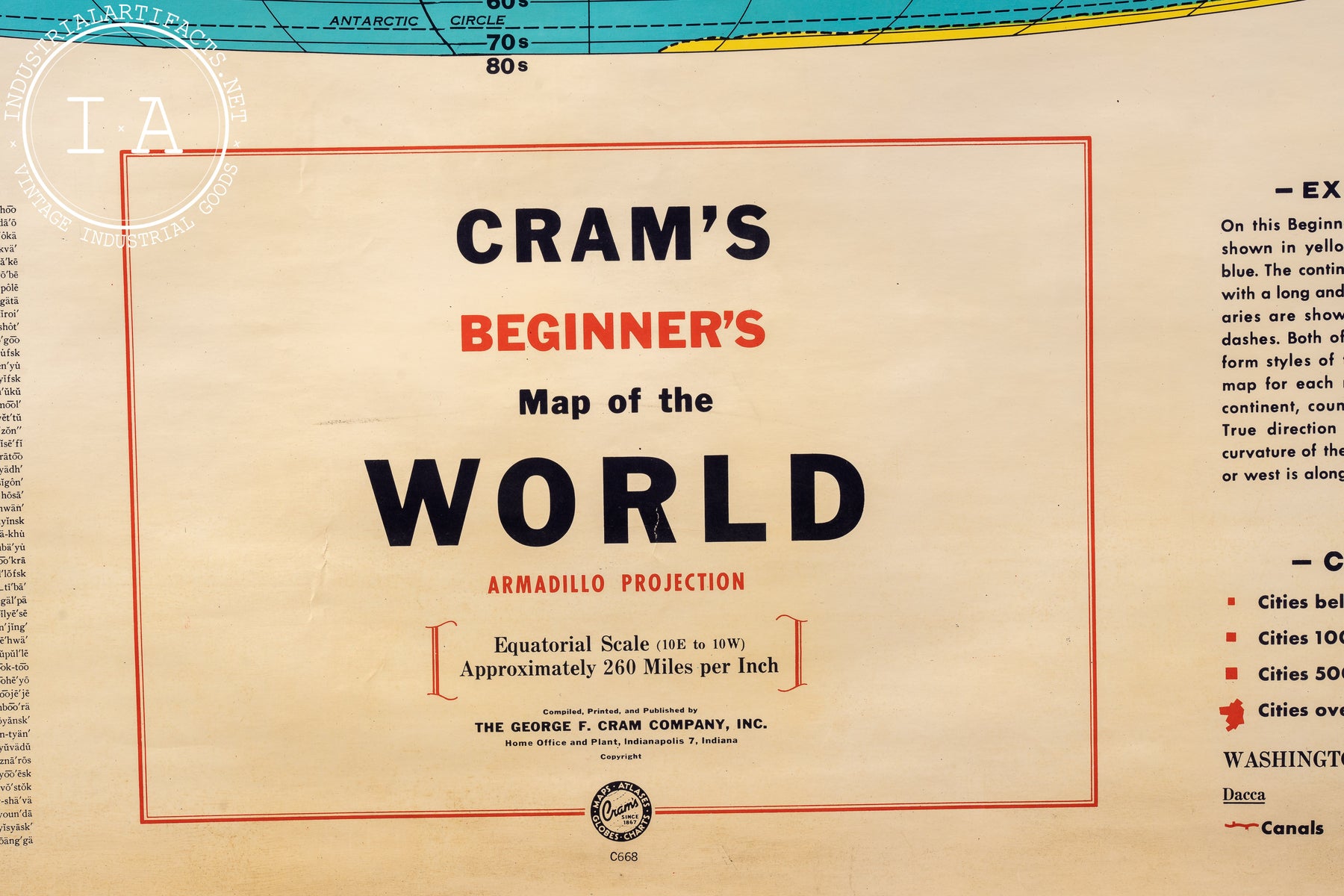 This vintage Markable-Kleenable Cram's Beginner's Map of the World features the "Armadillo Projection," or orthoapsidal view, of the world map which is a projection that appears to wrap the globe onto the outer half of a torus (a donut shape). It was developed by Erwin Raisz in 1943 and is known for its unique, curved appearance, resembling an armadillo's shell, which we see here. That places the production of this map sometime in the mid-to-late 1940s or 1950s.